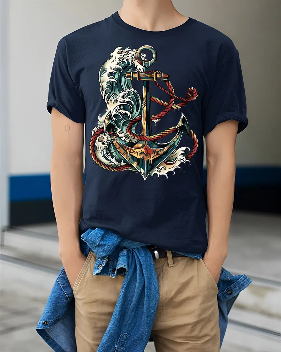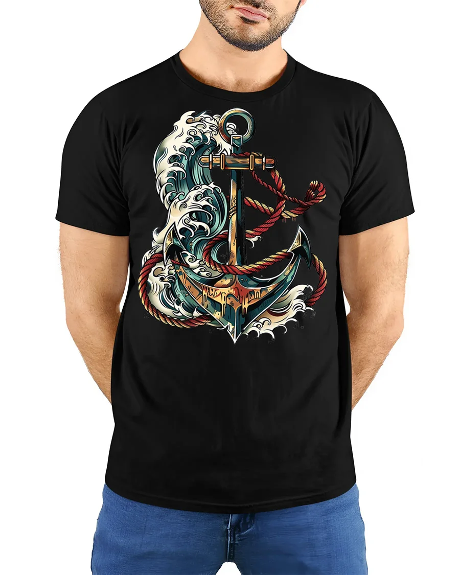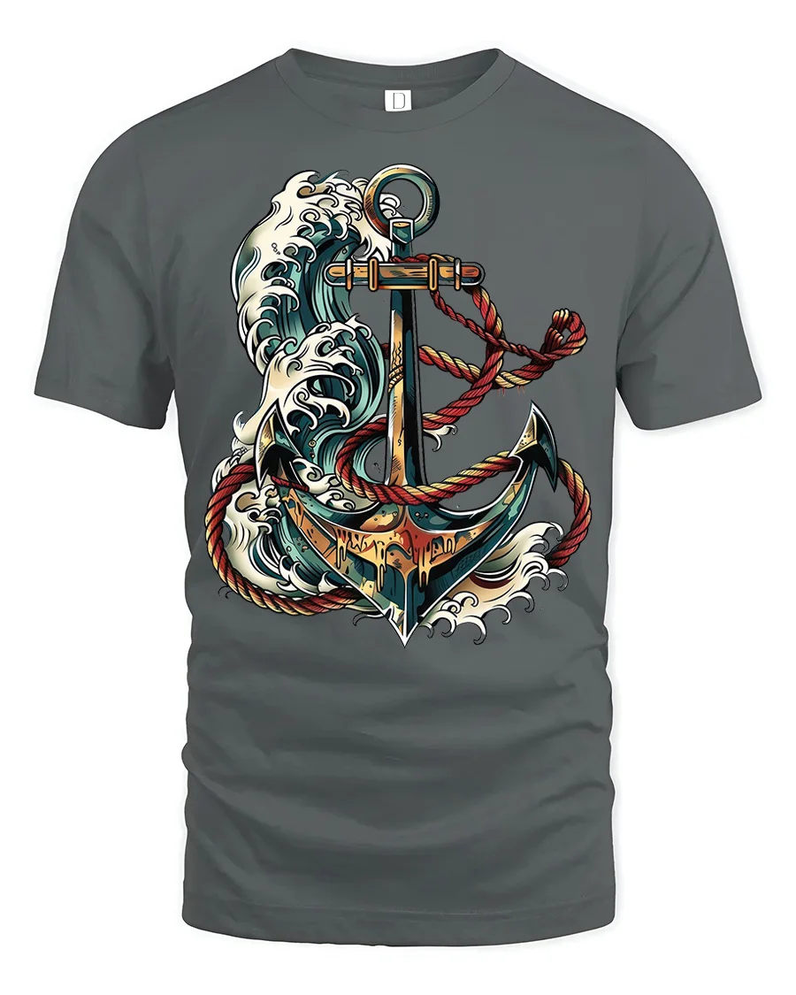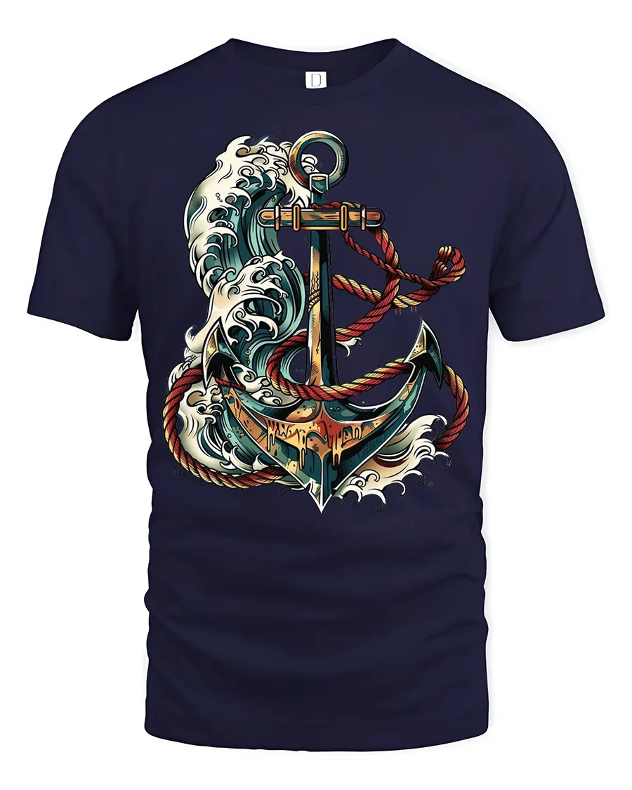 Bring timeless coastal energy to your wardrobe with the Nautical Anchor Ocean Wave Graphic T Shirt Vintage Sailor Style.