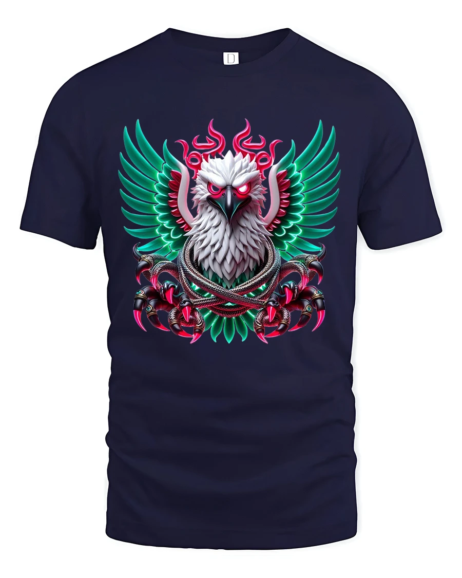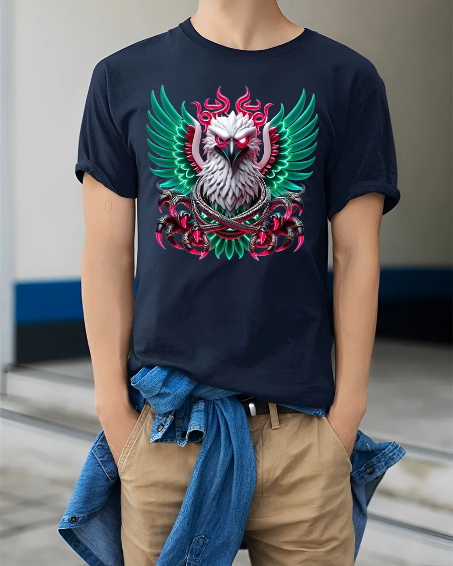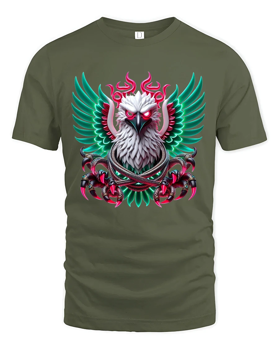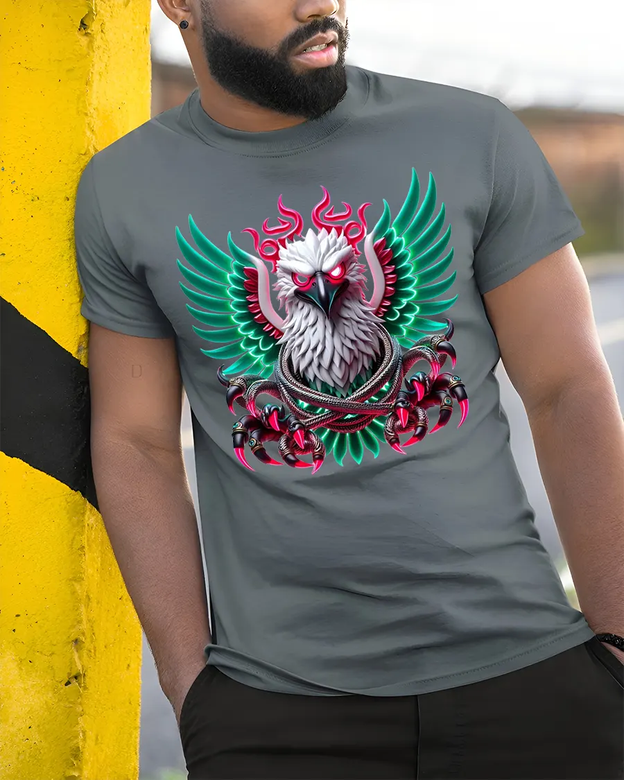 Neon Fire Eagle Dark Fantasy Power Art Graphic Tshirt is made from soft comfortable fabric designed for daily wear.