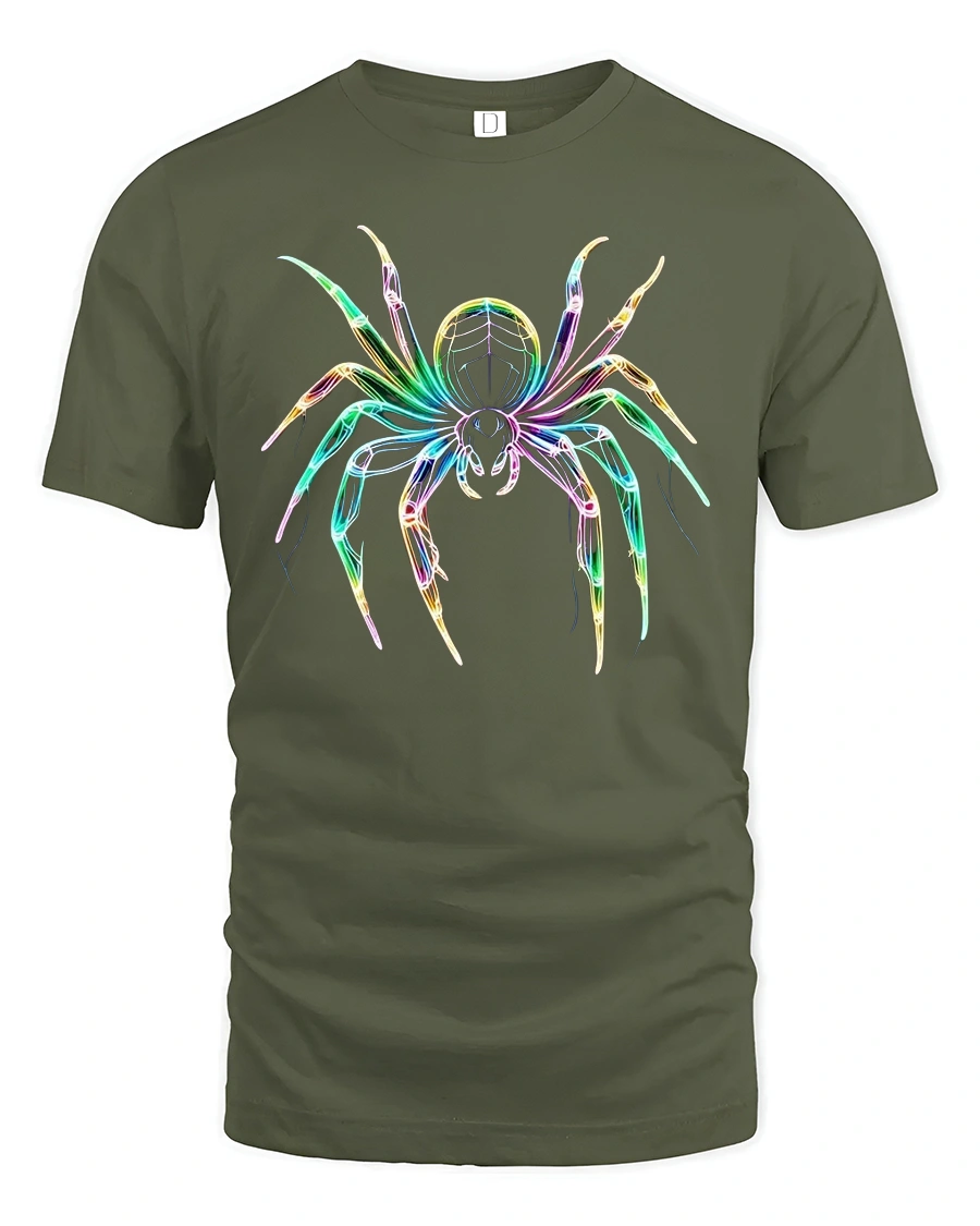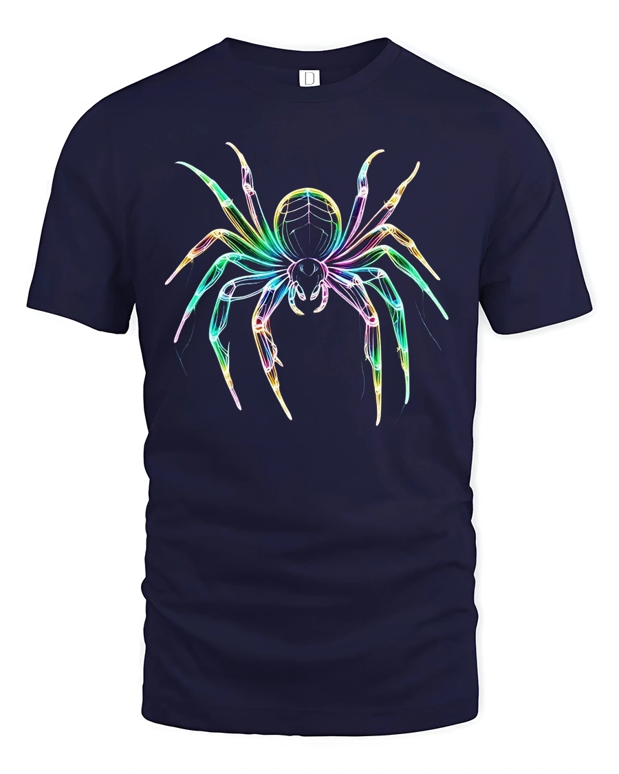 Neon Glow Spider Art Cool Graphic T-Shirt for Men is the perfect mix of creepy, colorful, and cool.