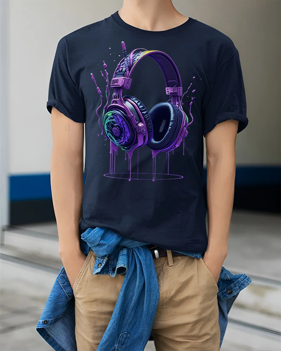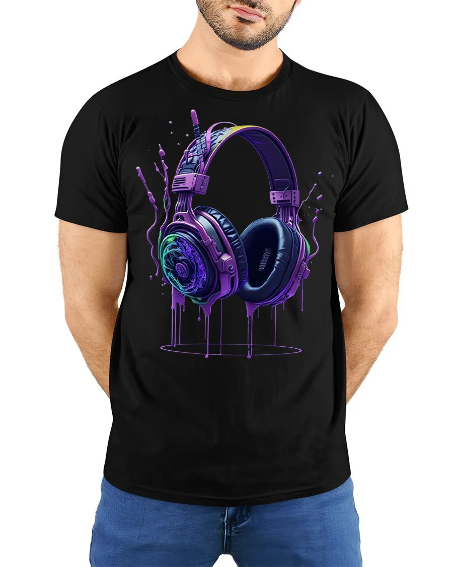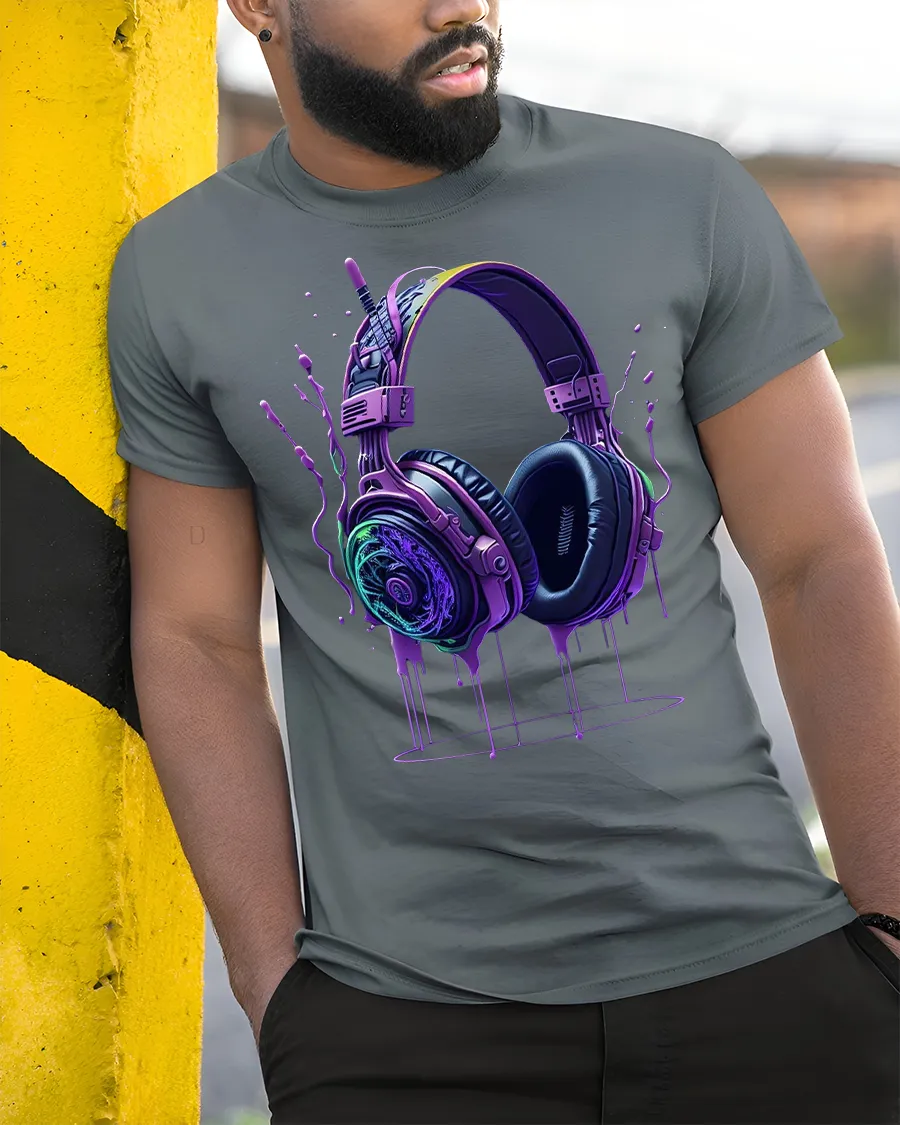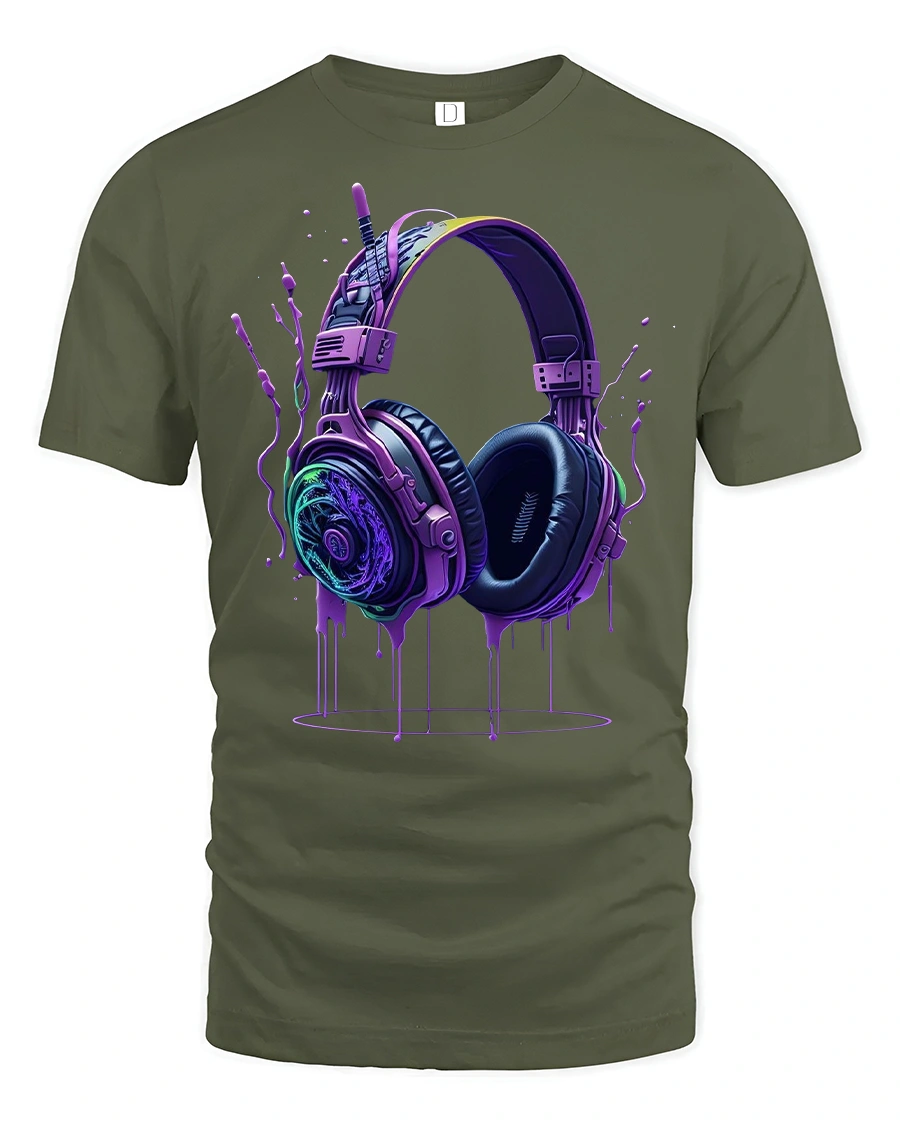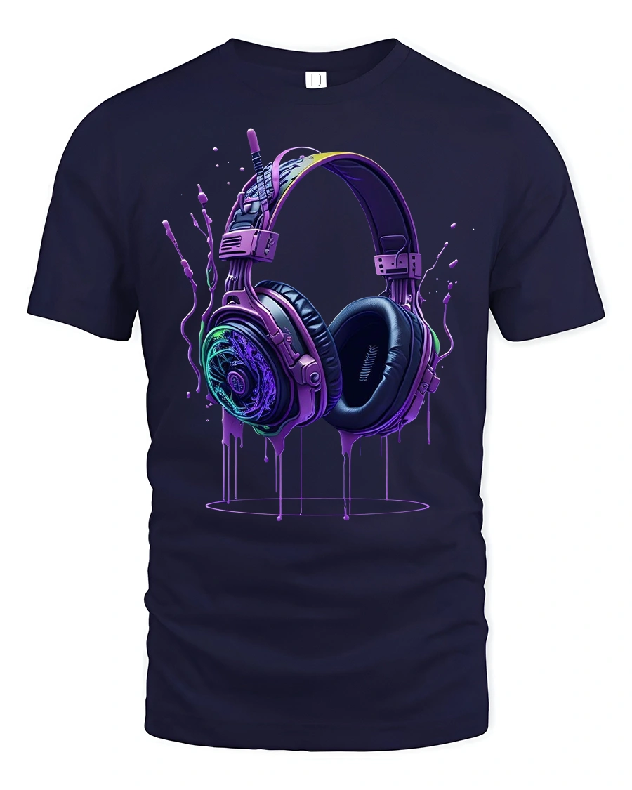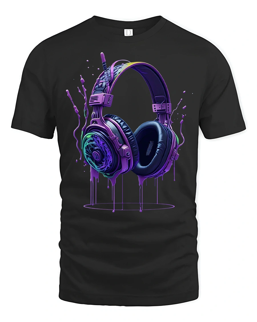 Neon Headphones Drip Art Music Lover Graphic Tee for DJs delivers an electrifying mix of bold color, music energy, and artistic expression. Featuring a pair of vividly designed neon headphones with a dripping paint effect, this tee instantly stands out as a must-have for DJs, audio lovers, and anyone who lives for great music. The glowing purple, blue, and green tones create a dynamic, futuristic aesthetic that suits concerts, festivals, and casual streetwear.
