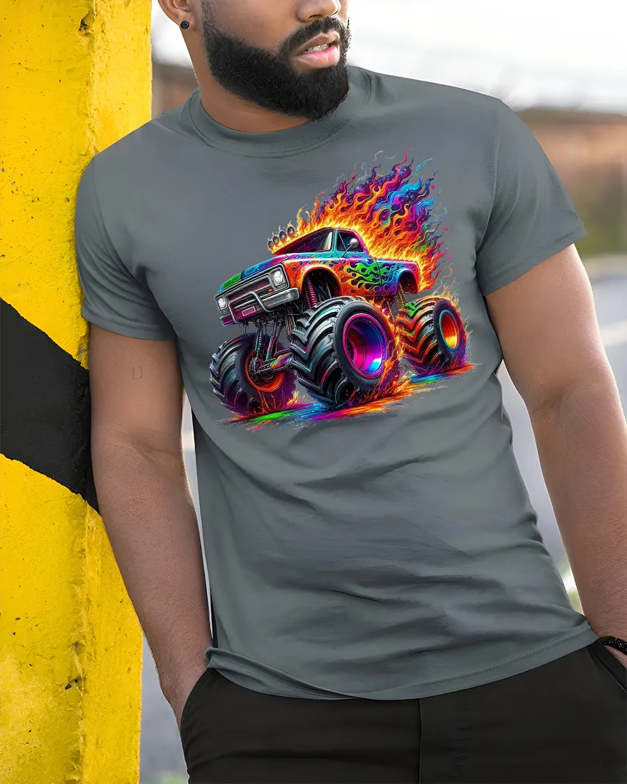 Neon Monster Truck Fire Power Graphic T-Shirt brings pure adrenaline to your wardrobe.