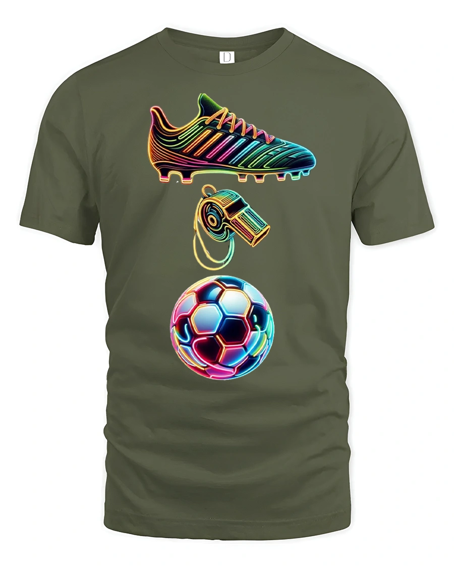 Neon Soccer Cleat Whistle Ball Colorful Sports Tshirt brings high-energy style to the field and beyond. Featuring a bold neon soccer cleat, a vibrant whistle, and a glowing soccer ball, this design captures the excitement, intensity and passion of the game. The bright, electric colors make it an eye-catching choice for players, coaches and fans who love standing out with unique sports apparel.