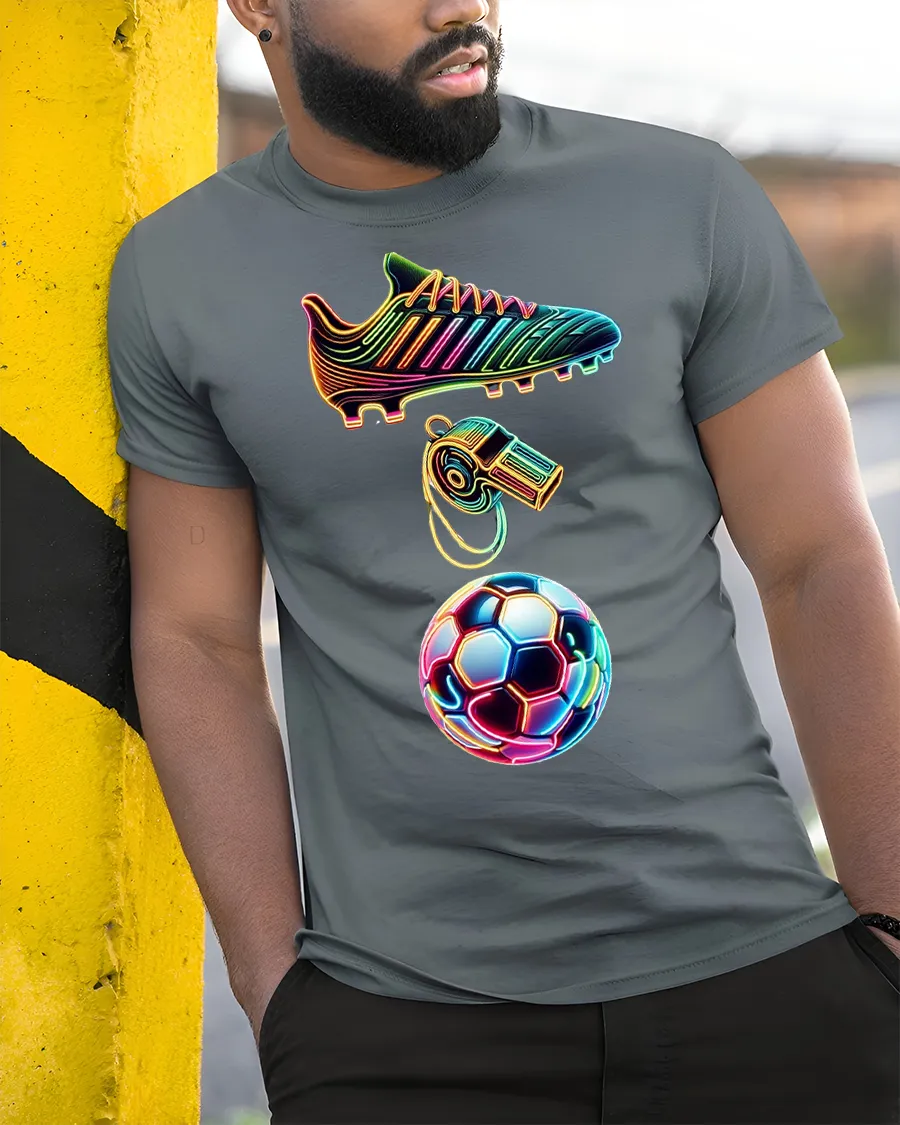 Show your love for the game with the Neon Soccer Cleat Whistle Ball Colorful Sports Tshirt, a dynamic and stylish piece that brings excitement to every match and moment.
