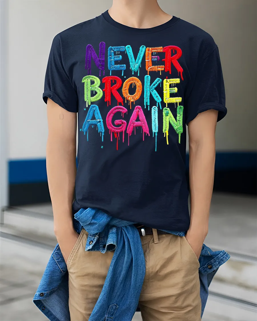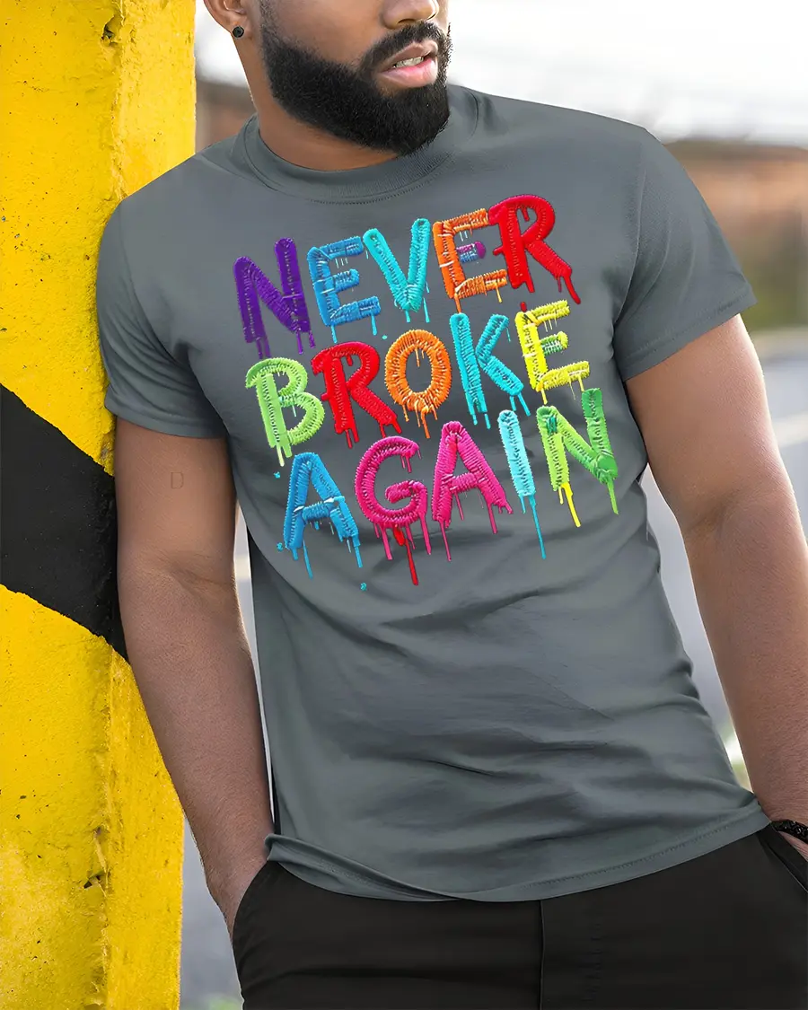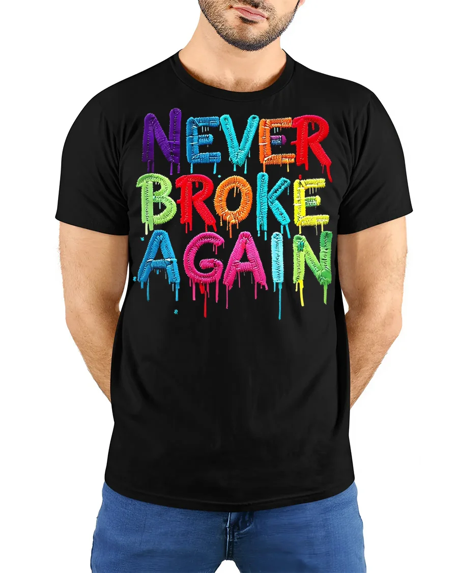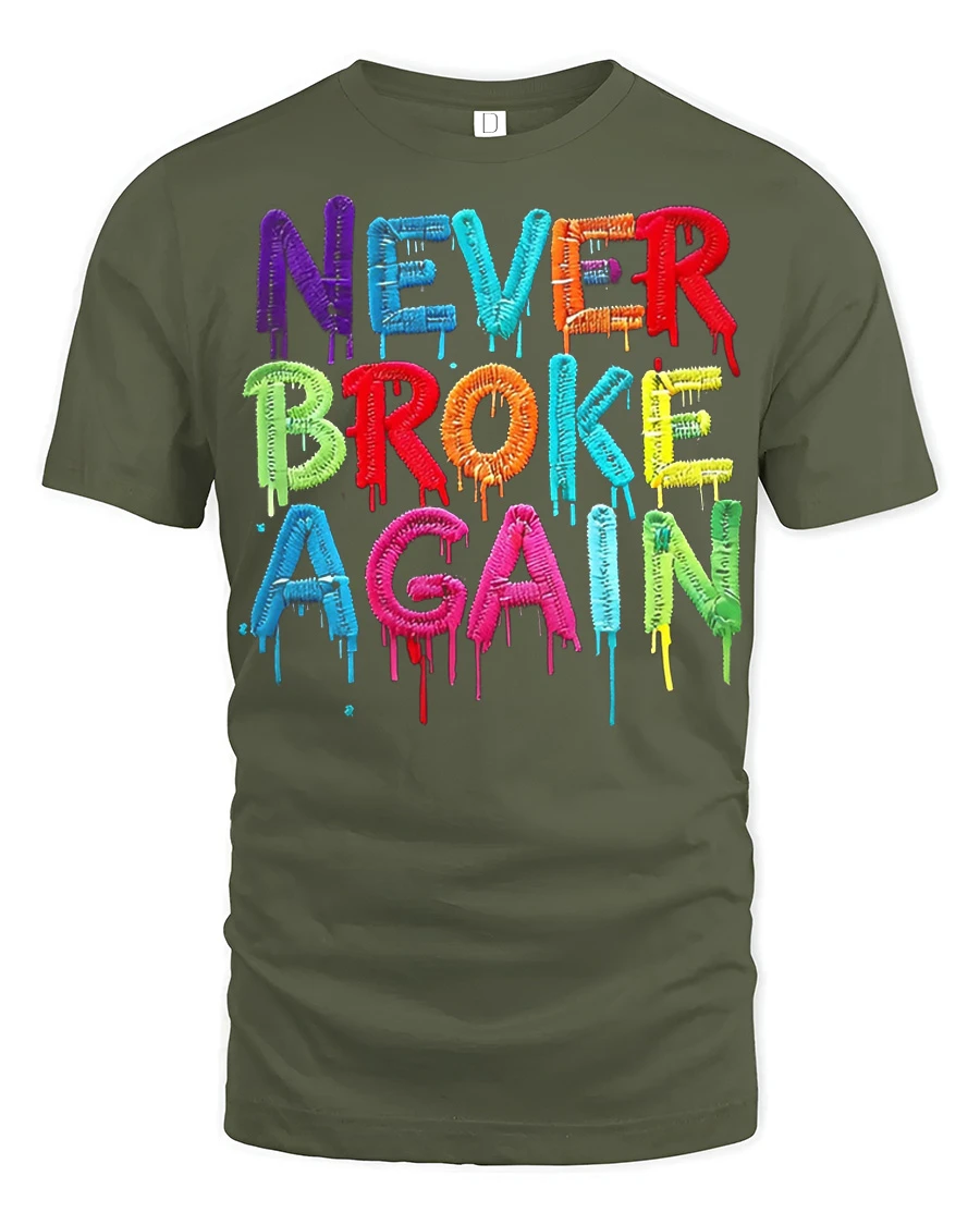 Never Broke Again Funny Money Hustle Graphic T Shirt Style is a bold statement piece made to stand out. Featuring colorful dripping text with a street art vibe, this design blends humor, motivation, and confidence into one eye catching look. It adds strong personality to any casual outfit while showing a fearless mindset.