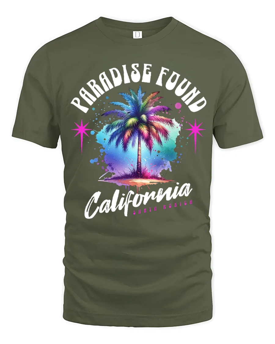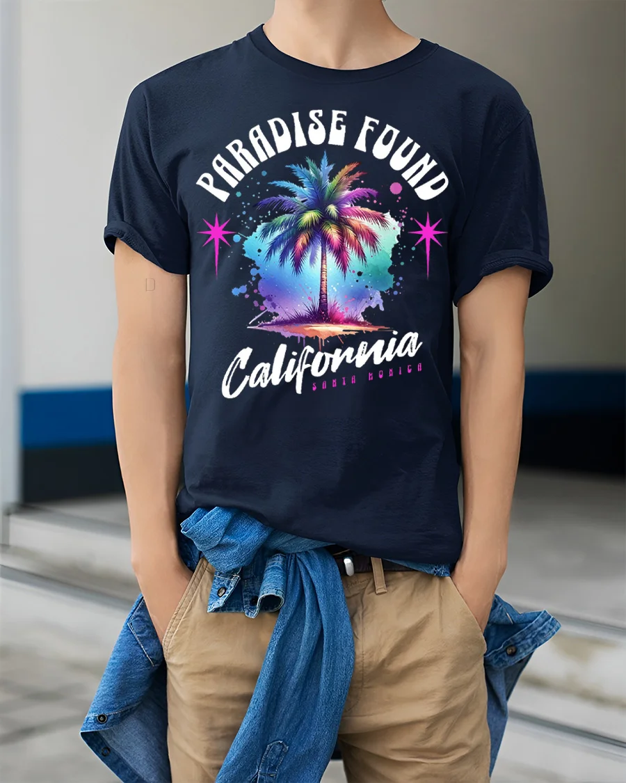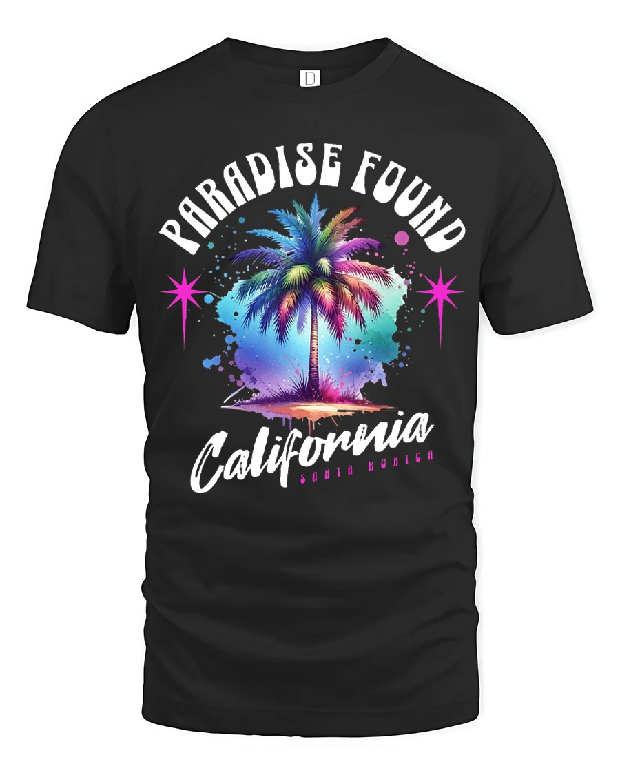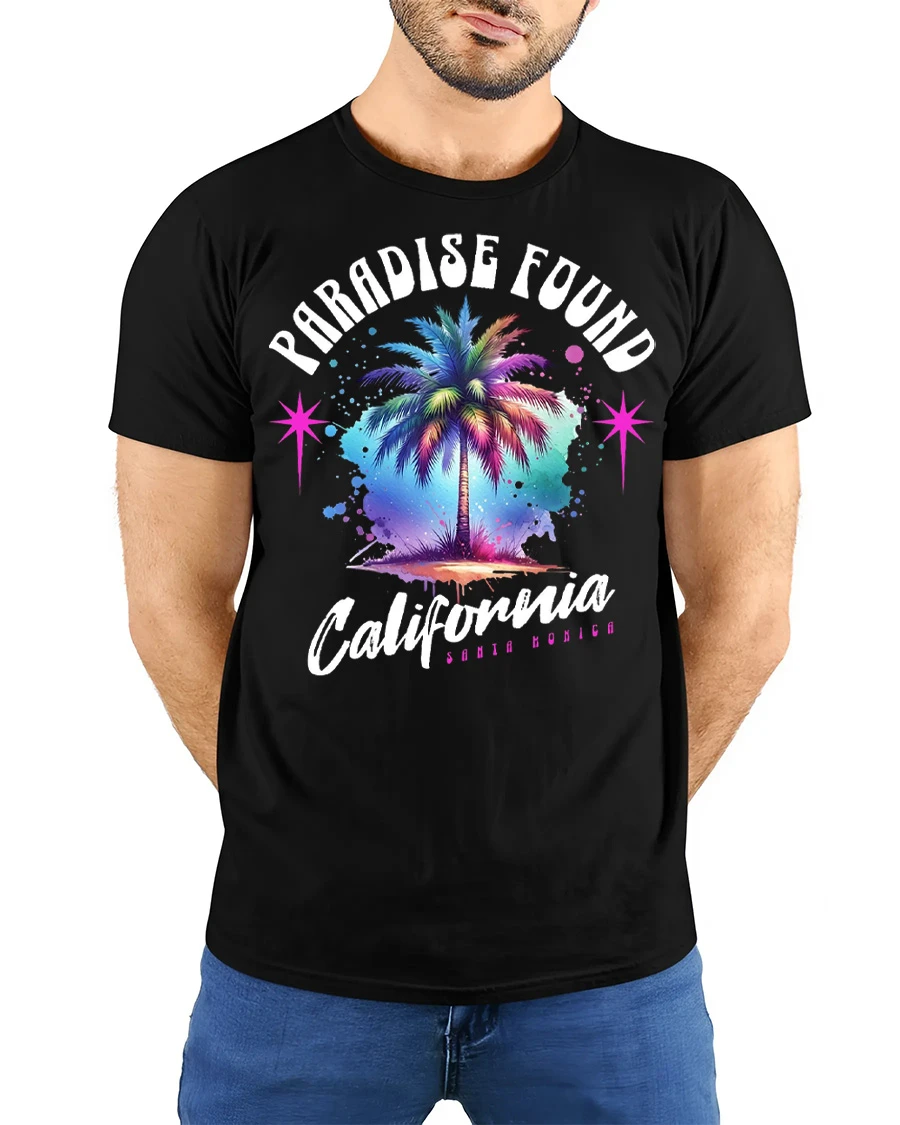 Paradise Found California Palm Tree Retro Graphic T Shirt captures the vibrant spirit of coastal living with a colorful palm tree design inspired by sunny beach days and relaxed vibes.