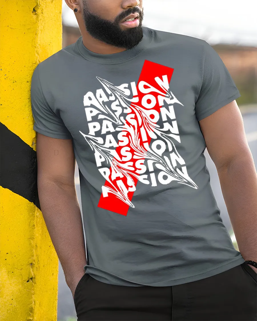 Passion Typography Streetwear Abstract Graphic Fashion T Shirt delivers a bold and expressive look inspired by modern urban design.