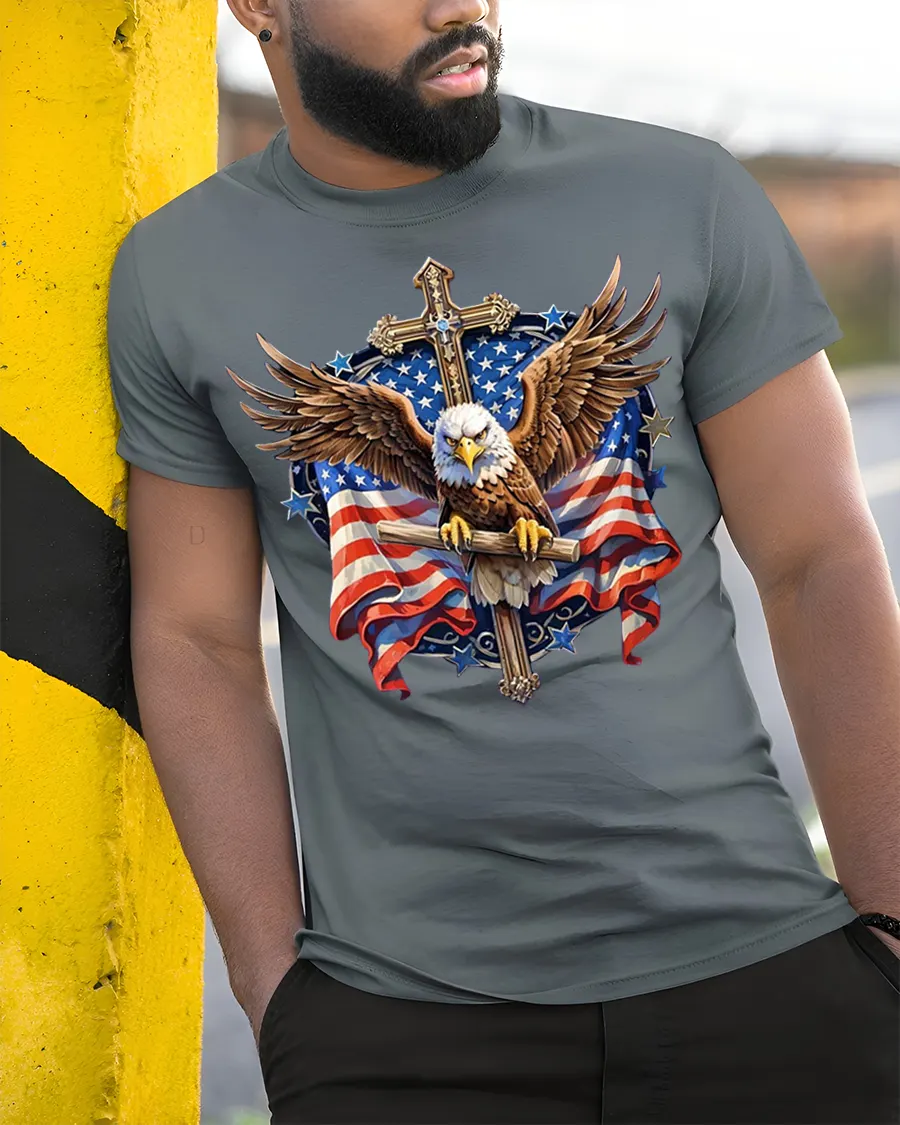 Crafted for comfort and everyday wear, the Patriotic Bald Eagle Cross Freedom Tee with American Flag Art is an excellent choice for Independence Day celebrations, Memorial Day events, church gatherings, patriotic holidays, or casual outings. The artistic illustration blends faith and patriotism in a timeless design loved across the USA.