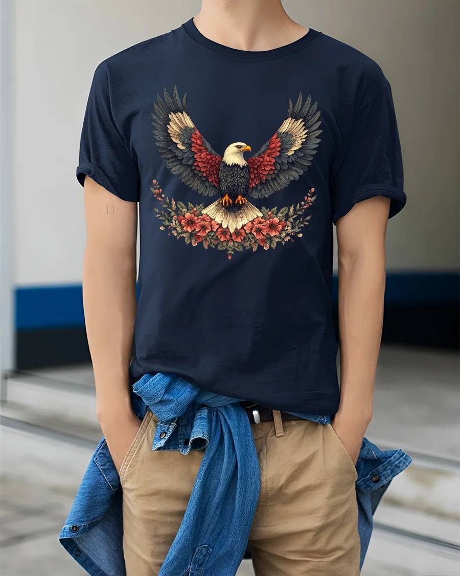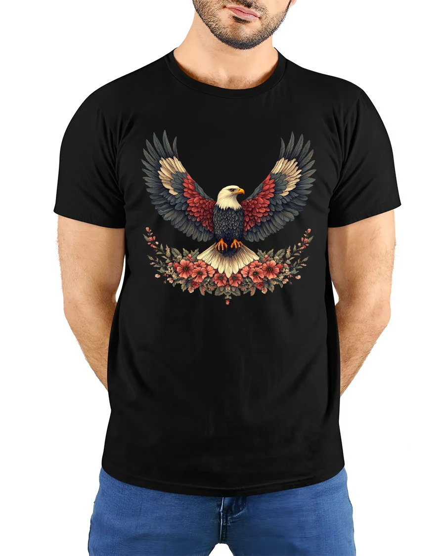 Perfect for everyday wear, celebrations, outdoor events, or patriotic holidays, this eagle floral tee appeals to anyone who appreciates American symbolism paired with artistic detail. The vibrant print stands out beautifully and complements casual outfits, making it a great choice for gifting as well, especially for nature lovers, wildlife fans or proud Americans.