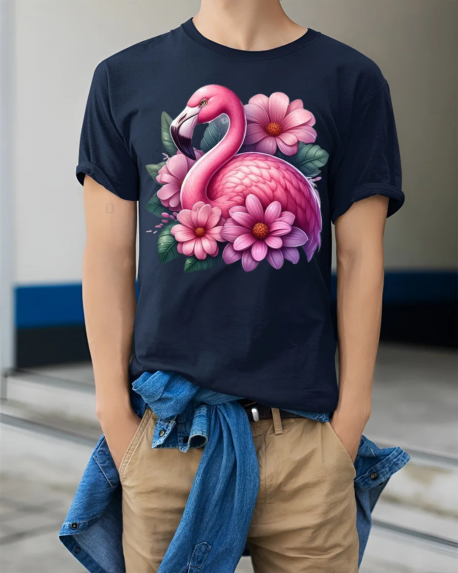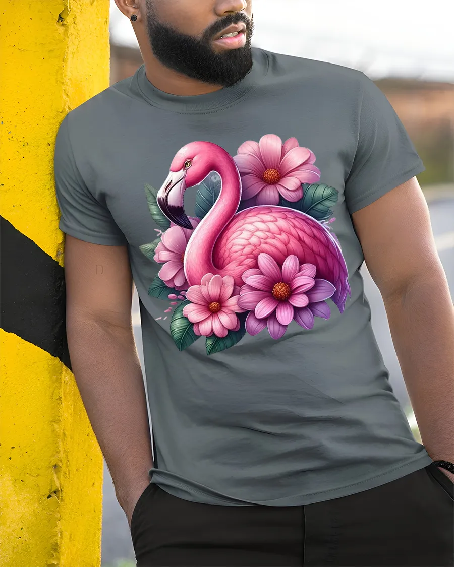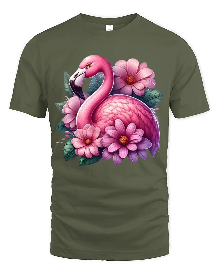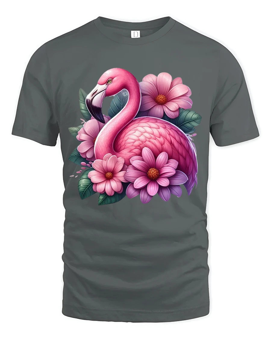 Pink Flamingo Floral Art Elegant Nature Graphic Tshirt Tee brings a soft and stylish blend of tropical beauty and graceful design.