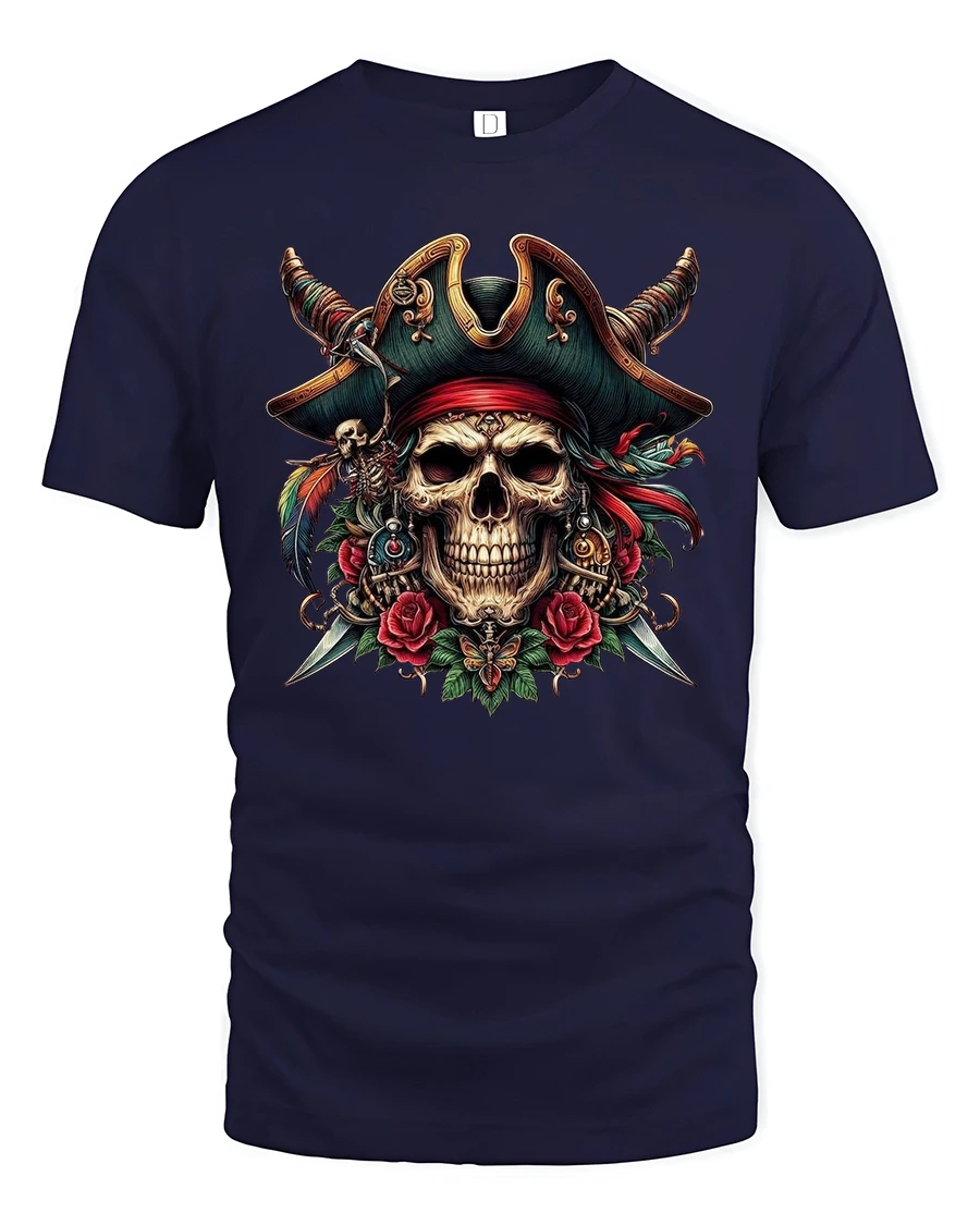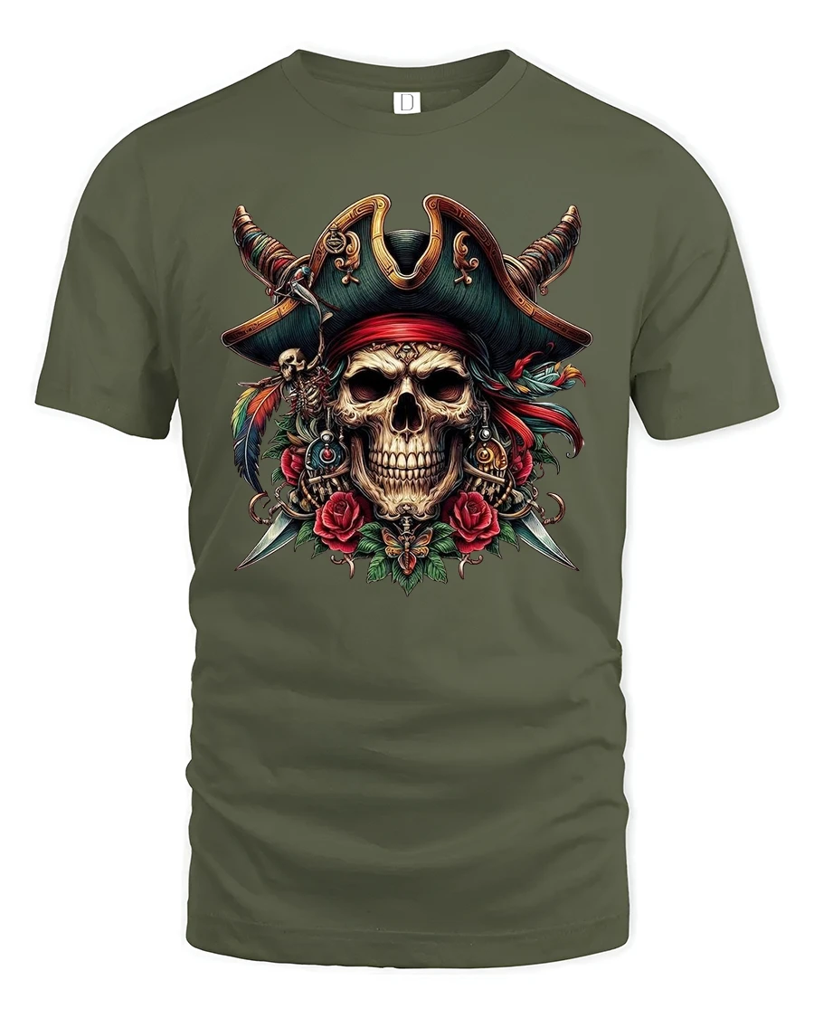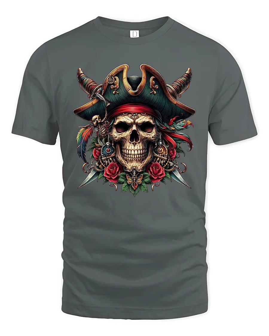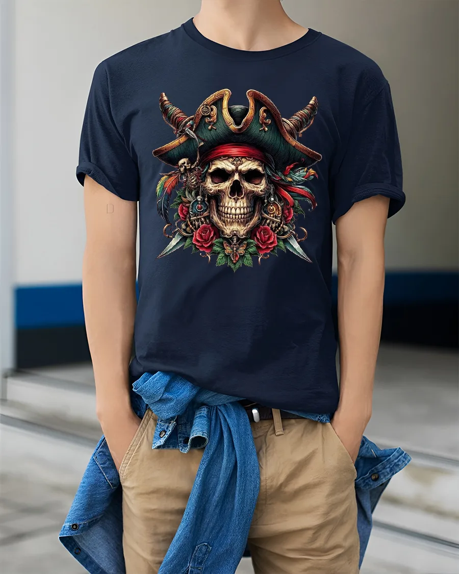 Made from a soft, breathable cotton blend, this pirate skull t-shirt offers comfort with an edgy aesthetic.
