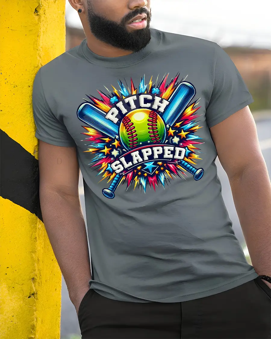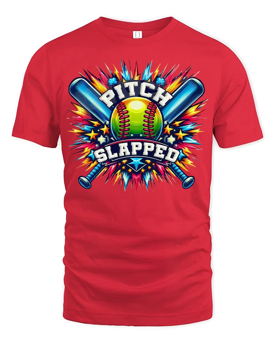 This Pitch Slapped Softball Tee for Funny Players and Game Lovers brings big energy, bold colors, and a hilarious twist to your softball wardrobe. Featuring an explosive comic-style design with crossed bats, a vibrant softball, and the humorous “Pitch Slapped” phrase, this tee is perfect for players who bring personality and confidence to the field. The artwork stands out with bright, dynamic colors that make the design pop from every angle.