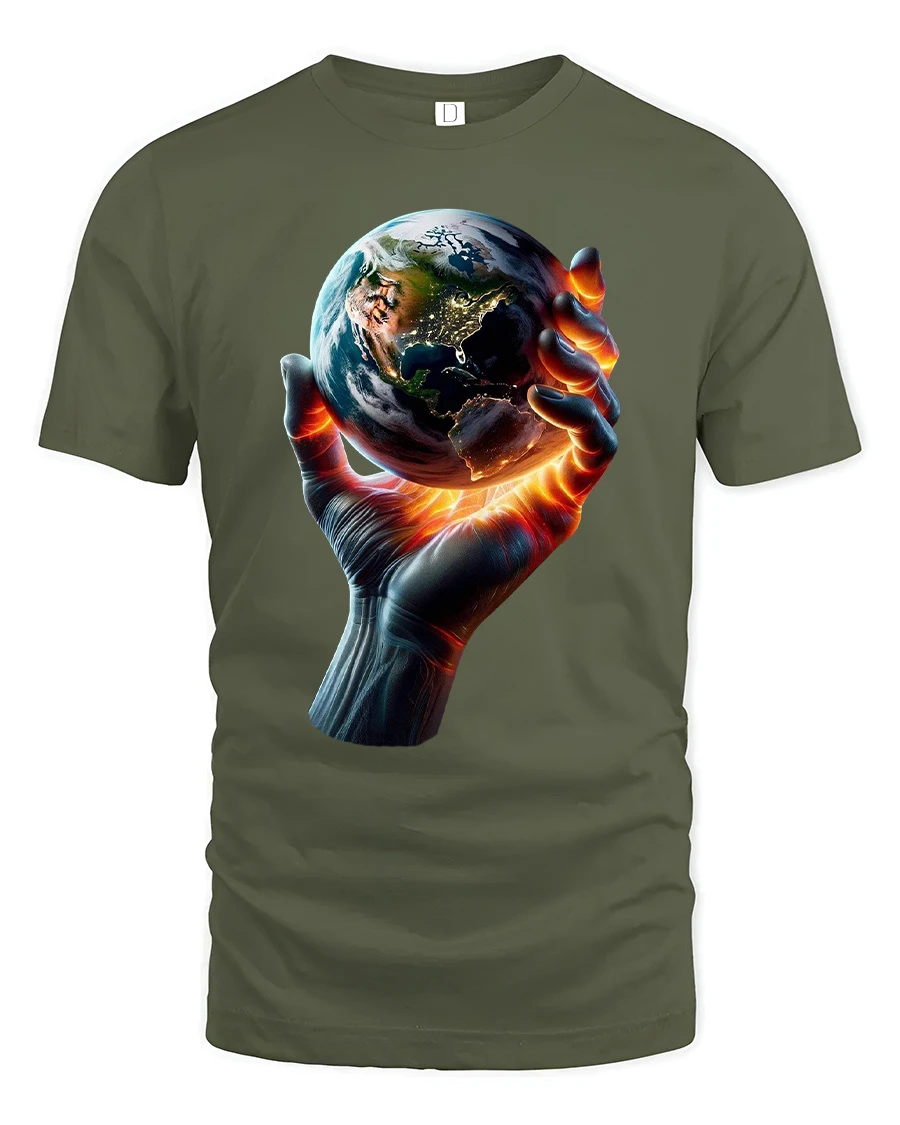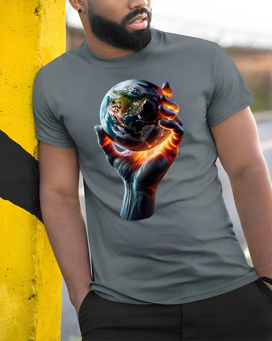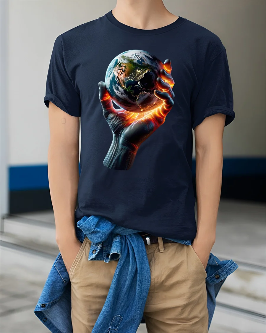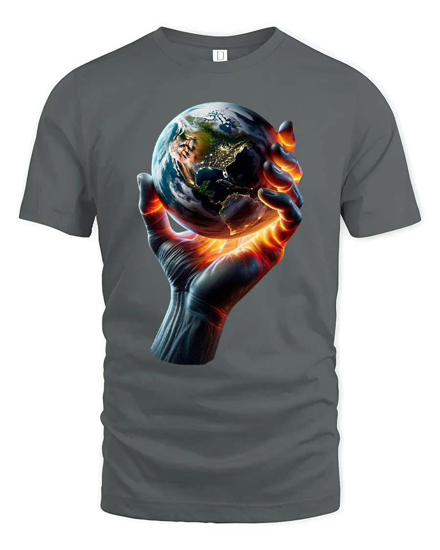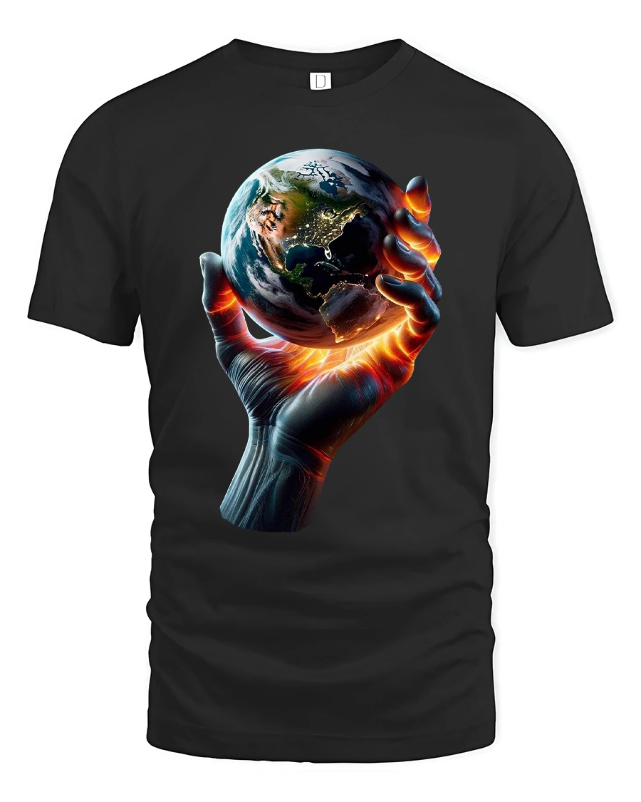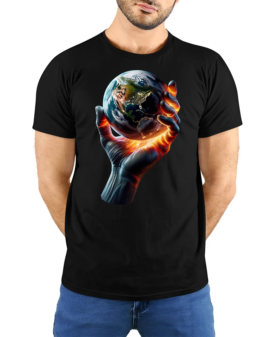 Power In Your Hands Earth Globe Graphic Tshirt Cosmic Energy Style brings a striking visual that captures attention instantly.