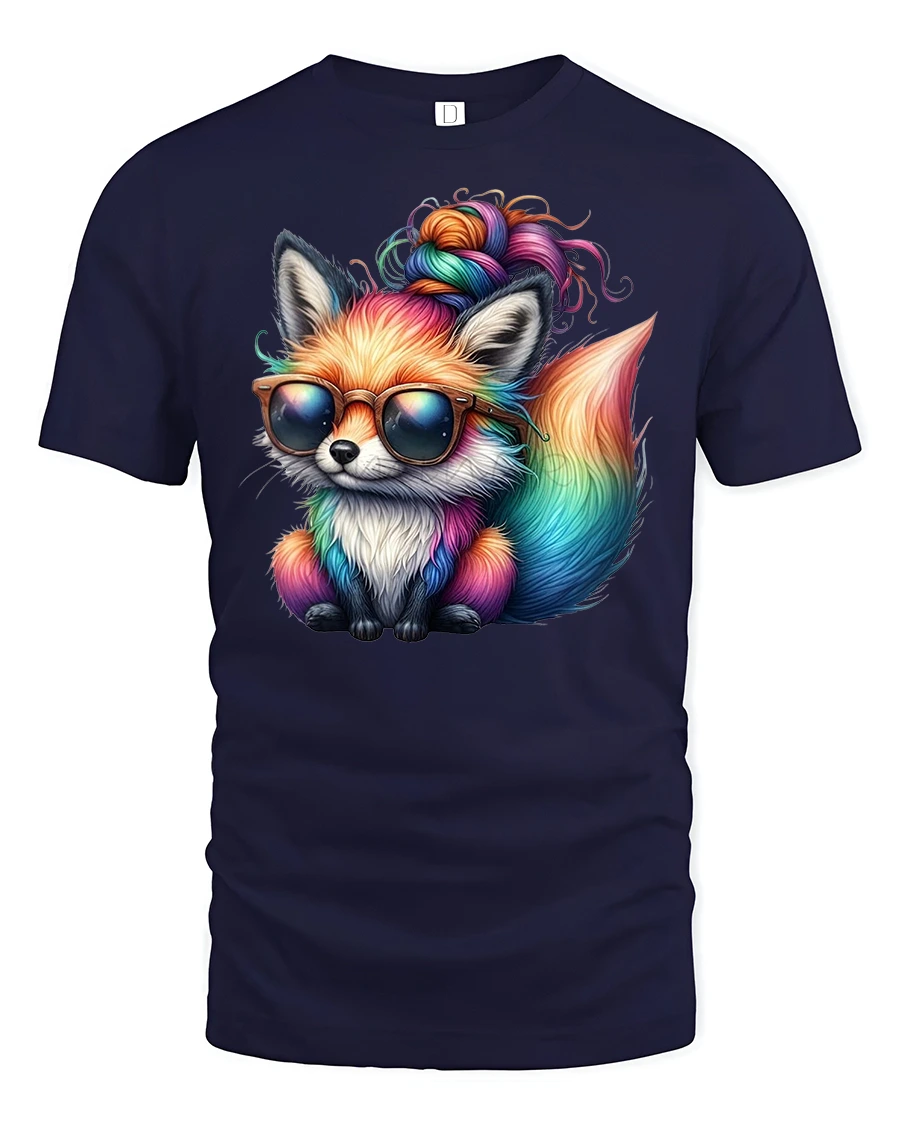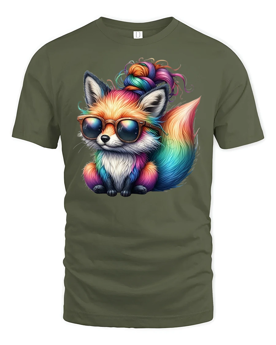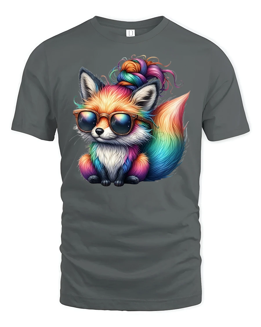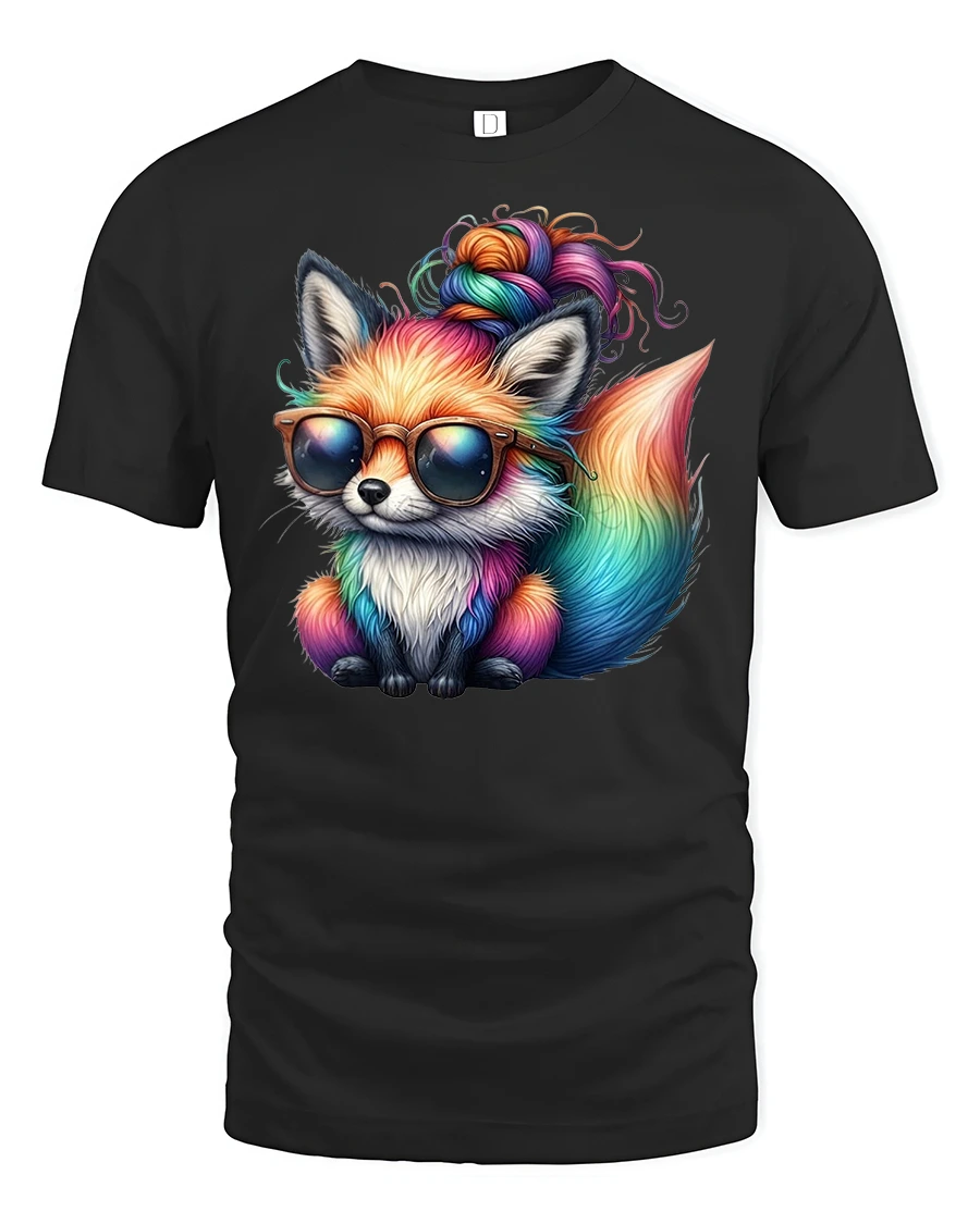 Featuring a cool fox with rainbow fur and stylish sunglasses, this tee captures a fun mix of confidence and cuteness.