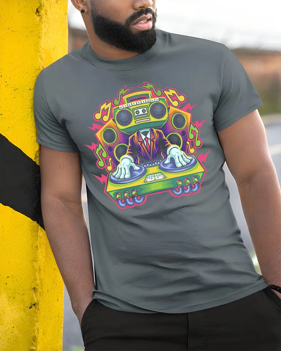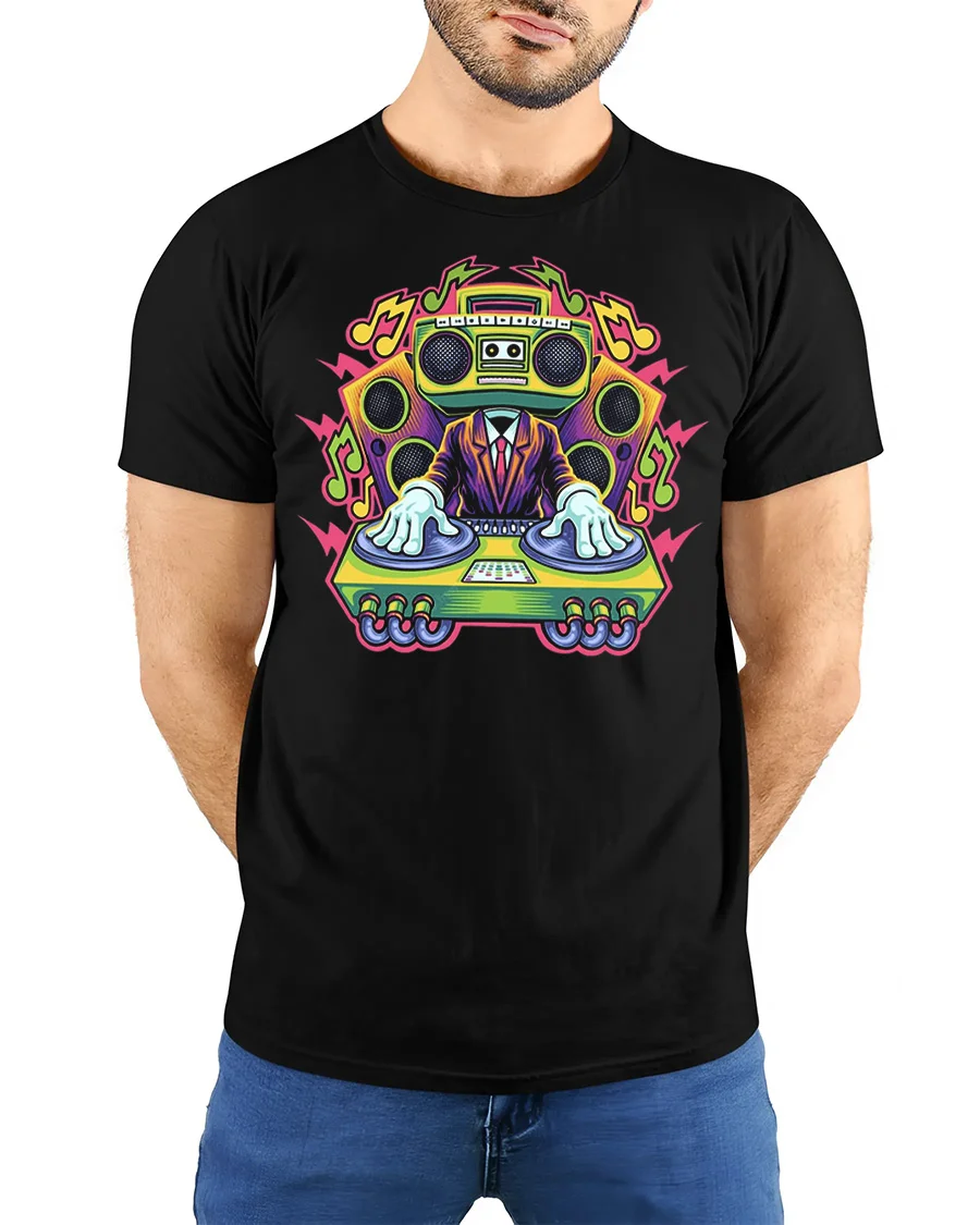 Retro Boombox DJ Graphic T Shirt Music Party Street Style Tee is a vibrant and energetic design that captures the spirit of music, DJ culture, and retro street art style. The unique illustration featuring a boombox DJ mixing music creates a bold and playful look that stands out in any casual outfit. This tshirt is perfect for people who love music, parties, and creative graphic designs that express personality and rhythm.