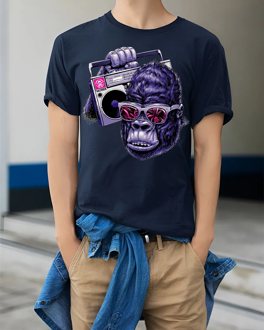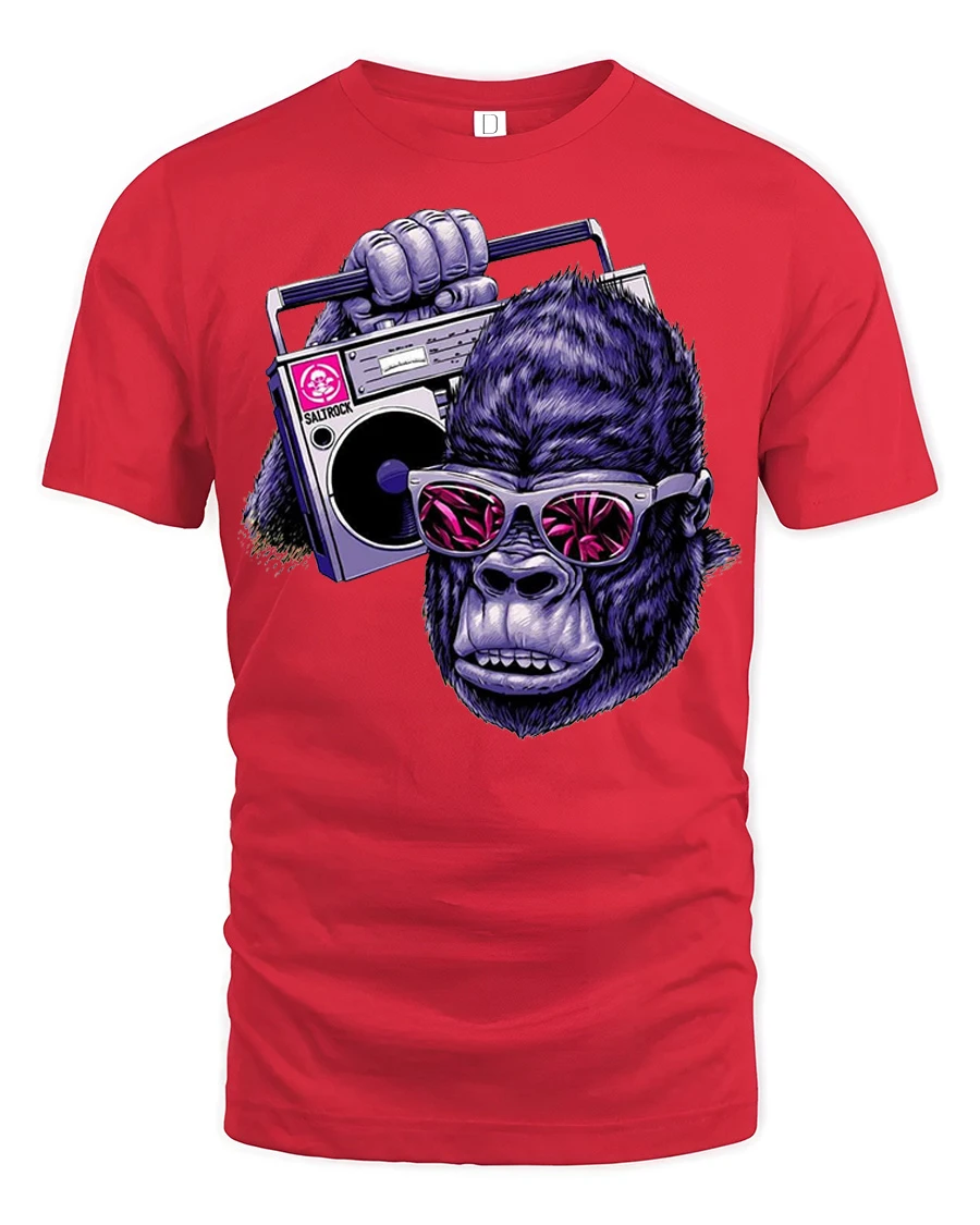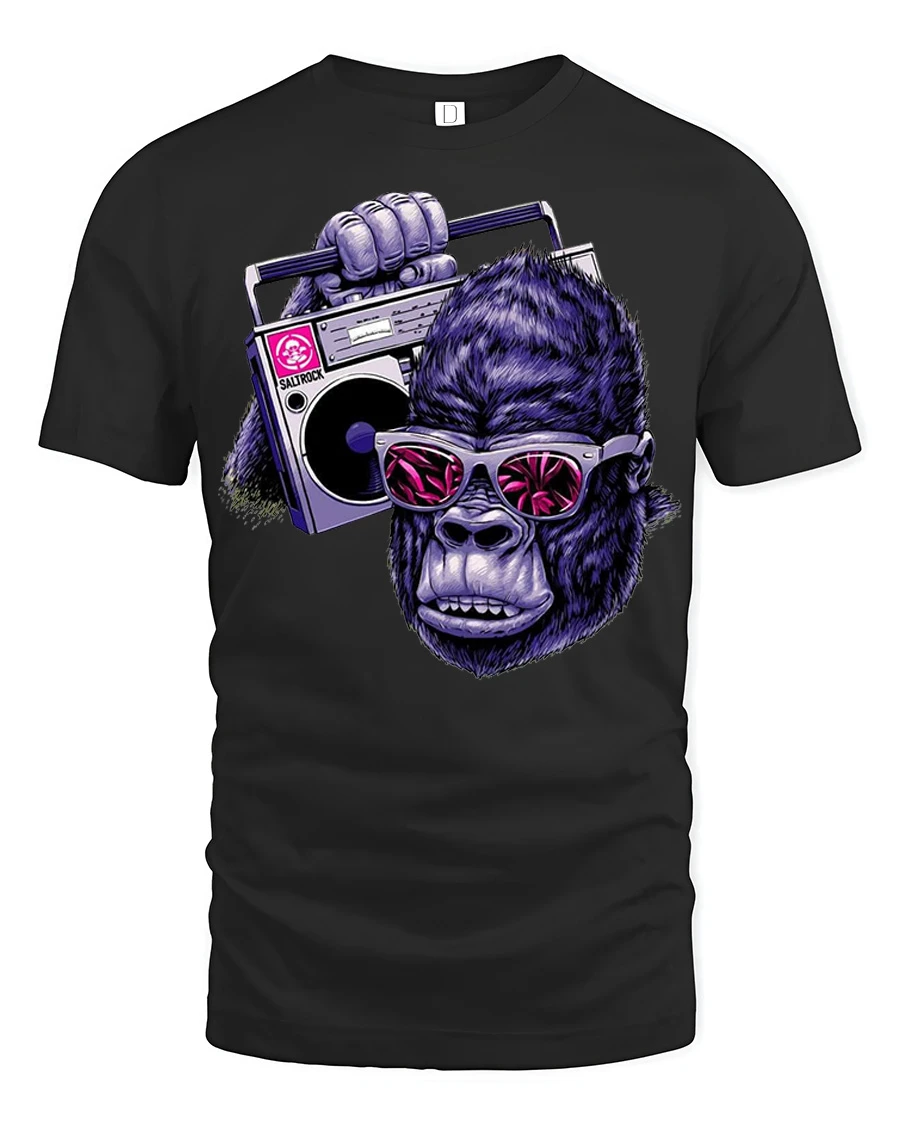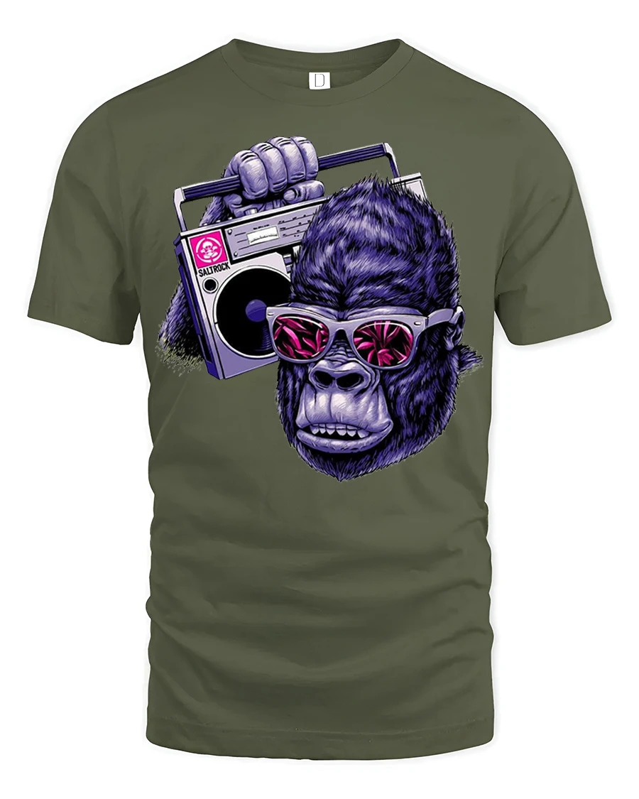 Retro Gorilla Boombox Graphic Tee Cool Music Ape T Shirt