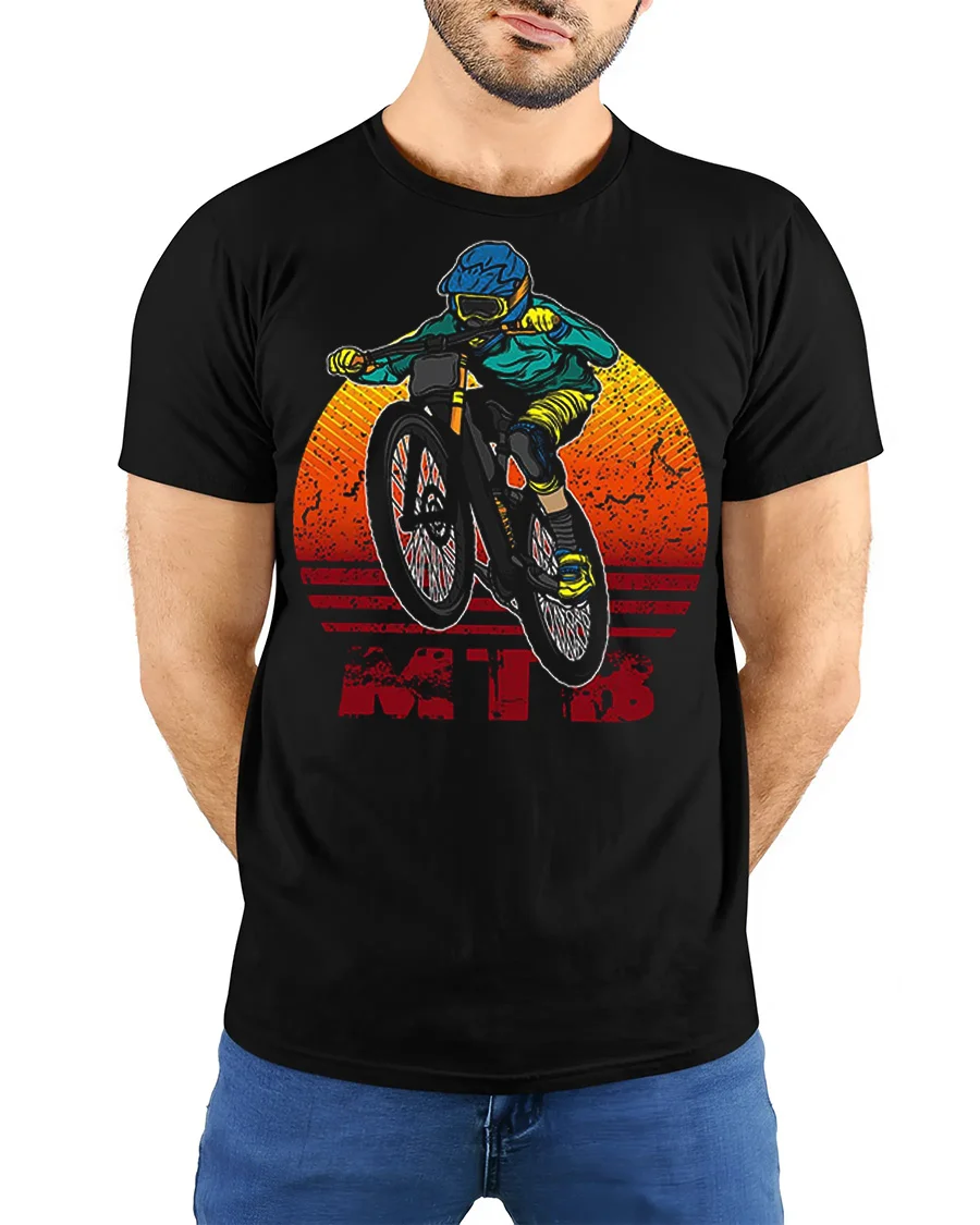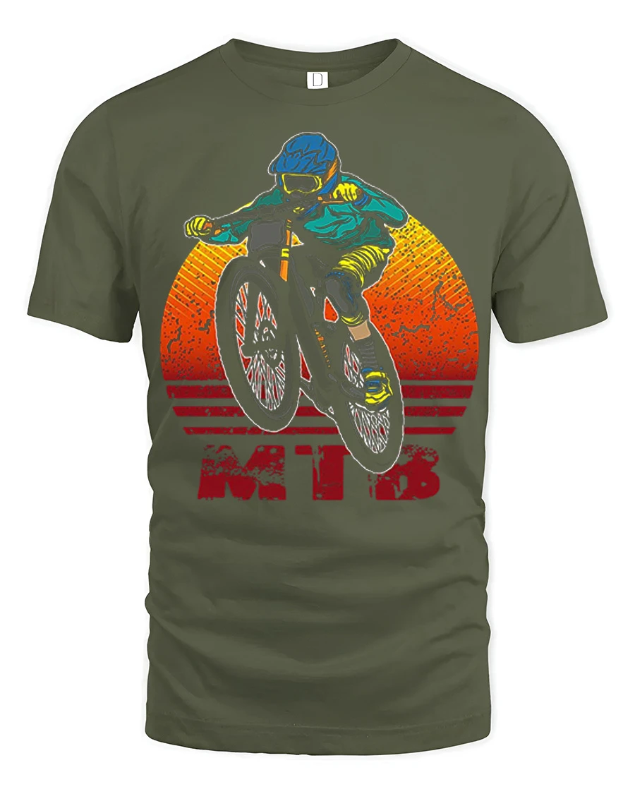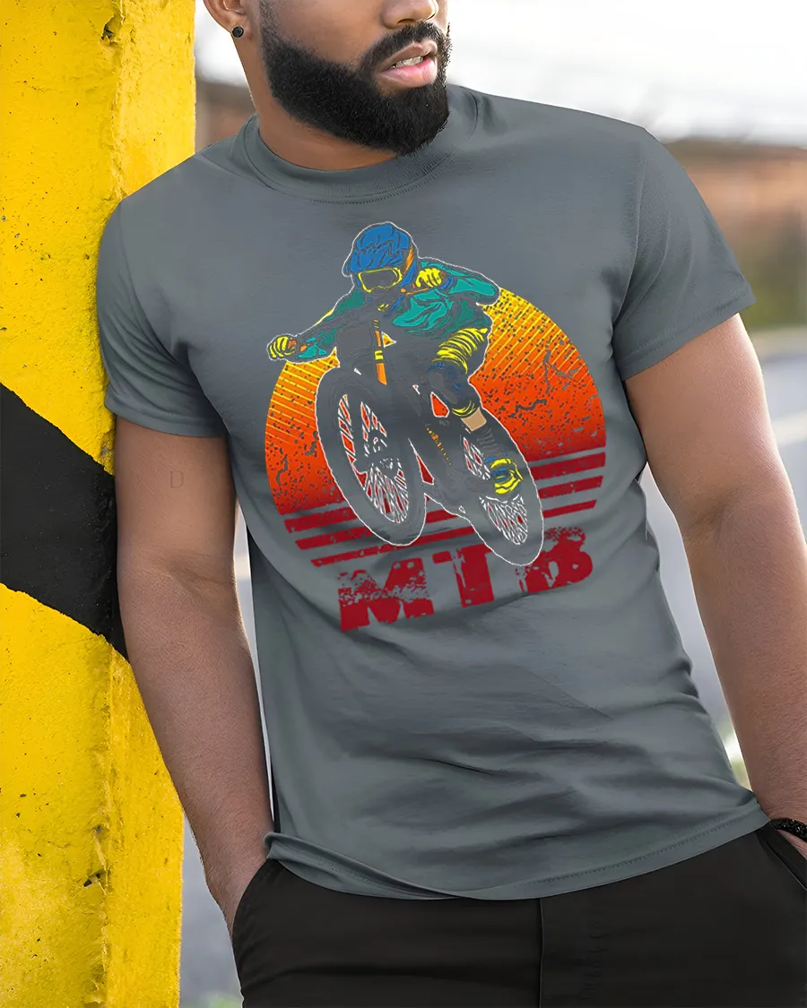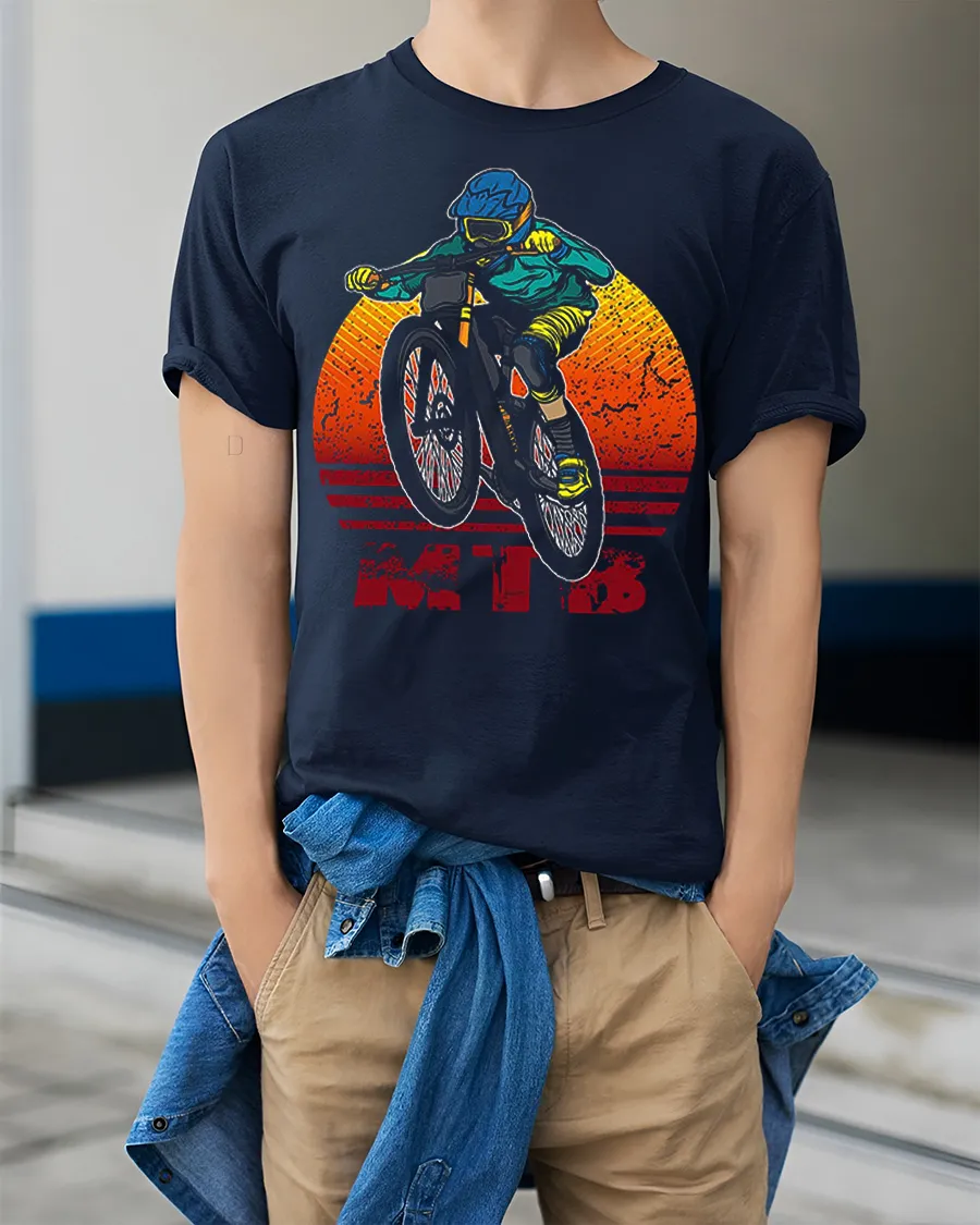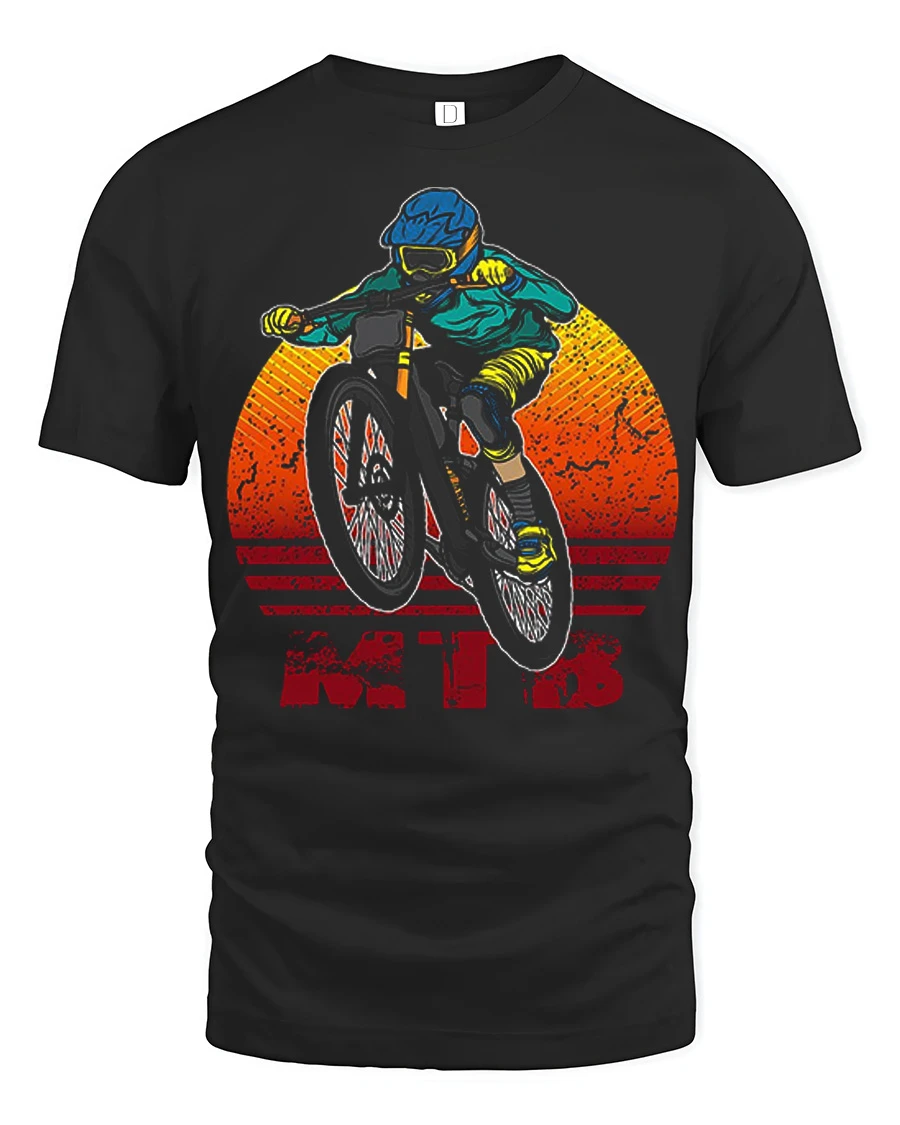 Retro MTB Rider Mountain Bike Adventure Graphic T Shirt Style captures the thrill of the trail in a bold and energetic design. Featuring a mountain biker in motion with a vintage sunset background, this shirt brings action, speed, and outdoor adventure into one standout graphic. It is the perfect choice for riders who love style as much as the ride.