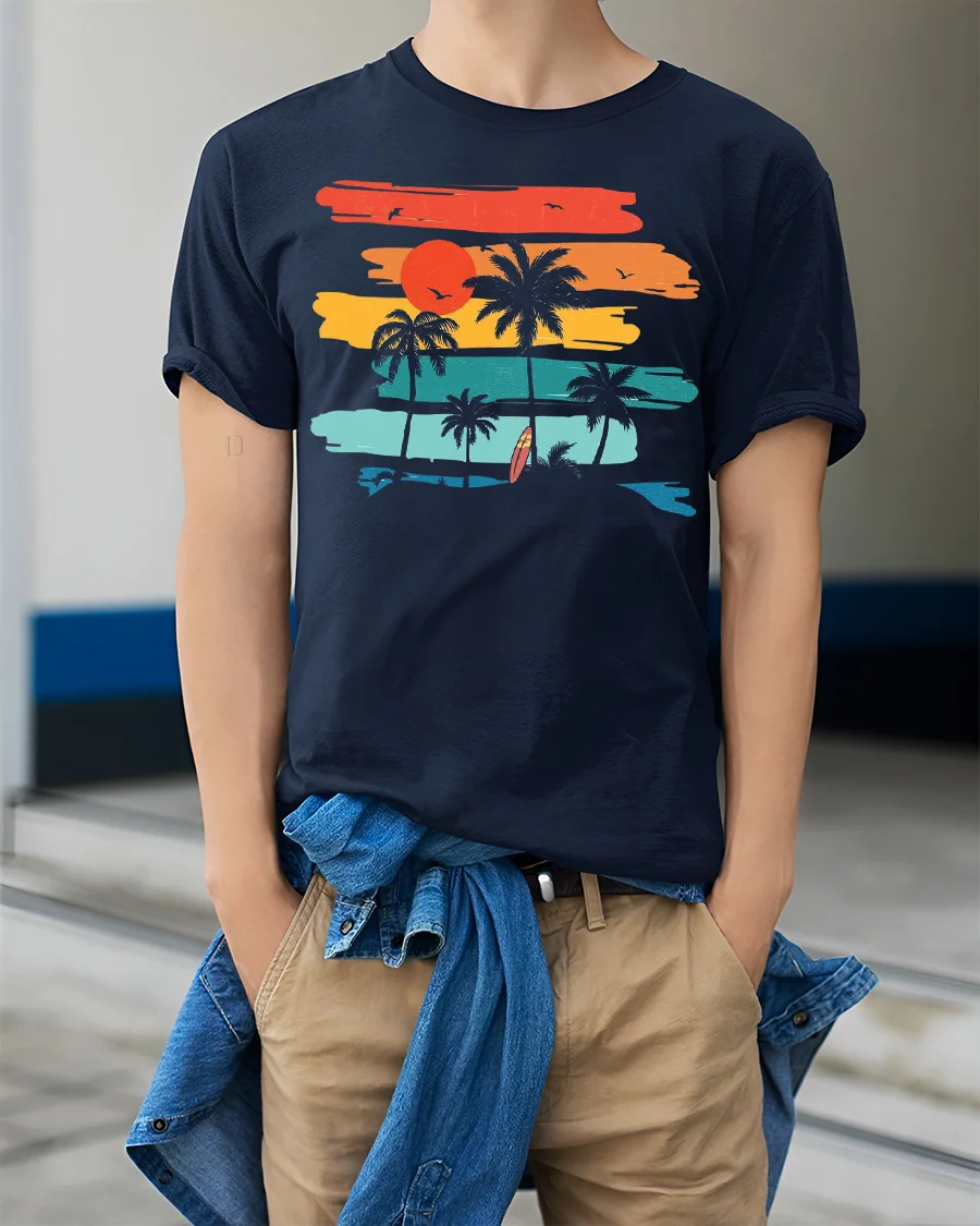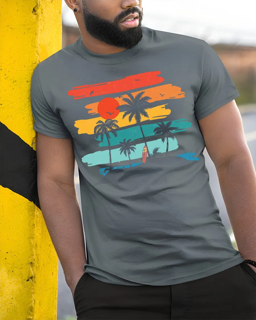 If you love tropical escapes and retro style, this palm tree graphic tee is the perfect addition to your collection.