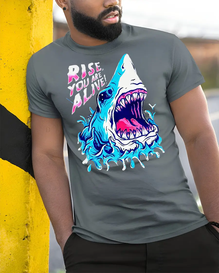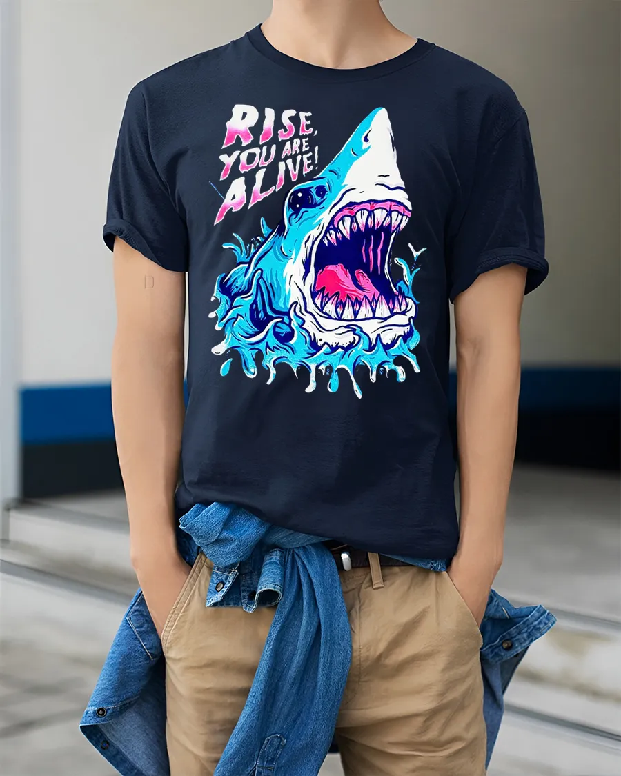 Be the first to review “Rise You Are Alive Shark Splash Graphic T Shirt Streetwear”