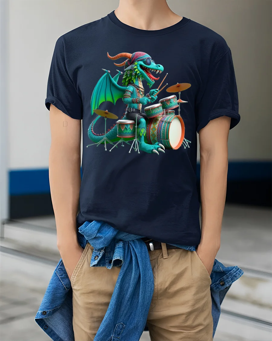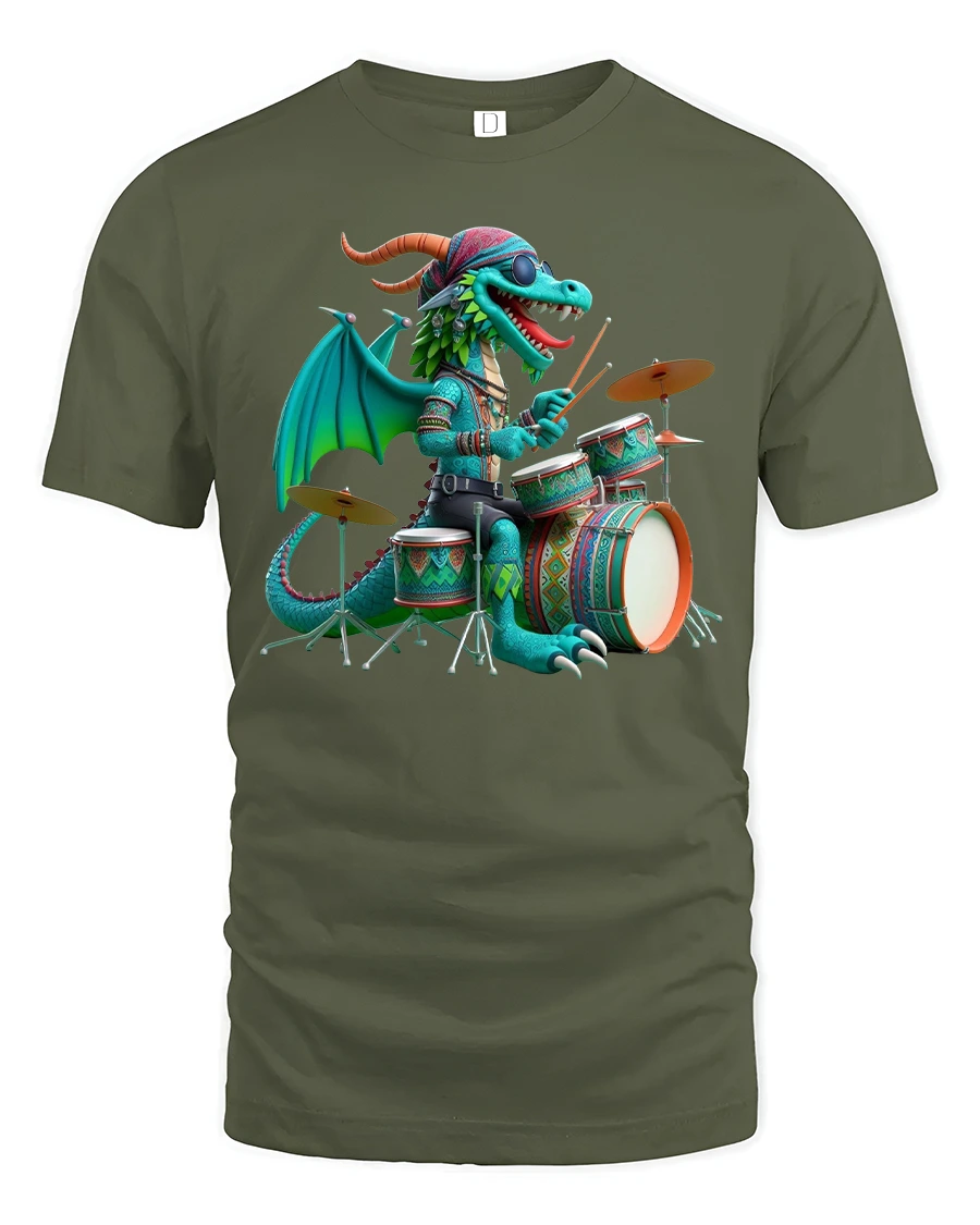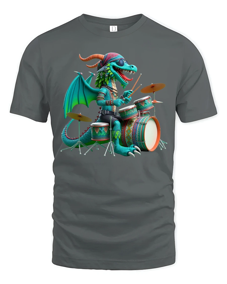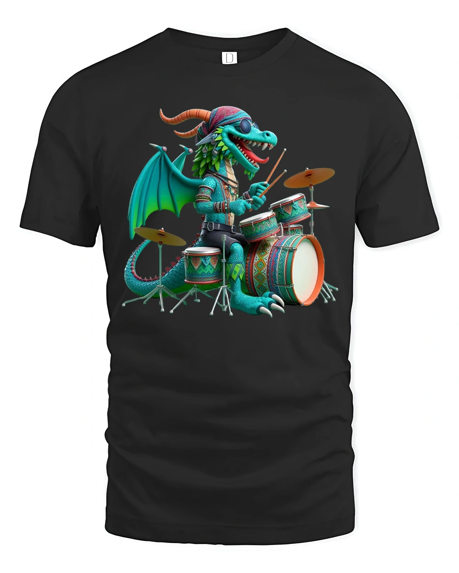 Made from premium soft cotton, this dragon drummer t-shirt offers comfort and breathability for all-day wear. The vivid design pops with color and detail, making it perfect for concerts, jam sessions, or casual weekends. The durable print ensures that your favorite dragon rocker stays bold after every wash.