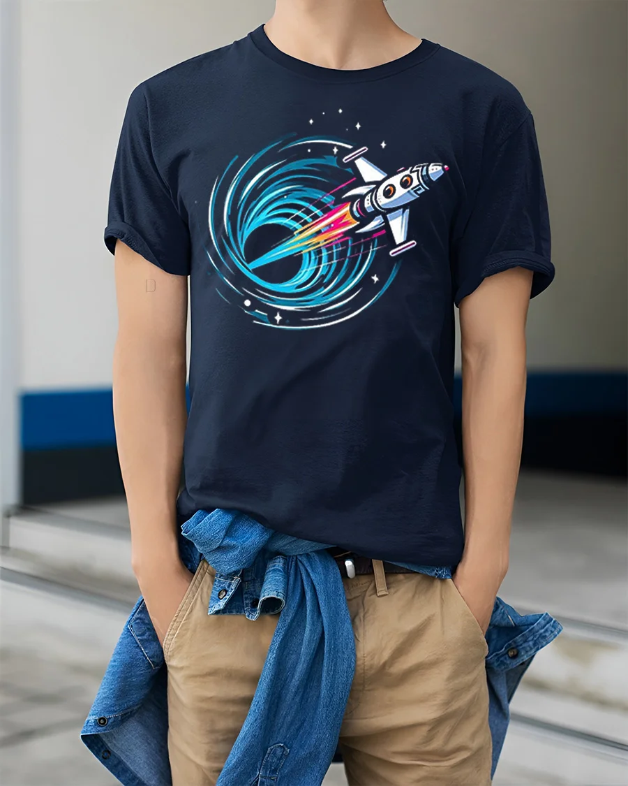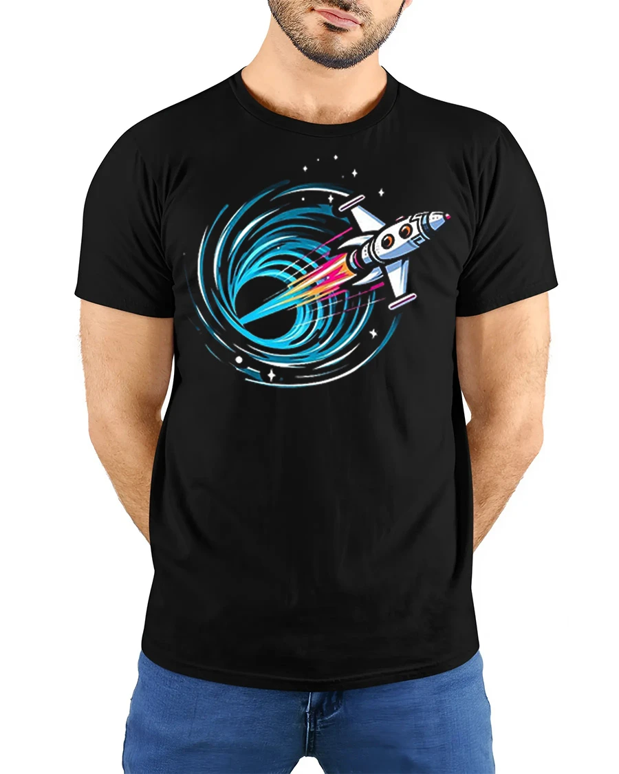 Rocket Into Black Hole Graphic T Shirt Space Adventure Tee brings thrilling cosmic energy and futuristic style to your everyday wardrobe.