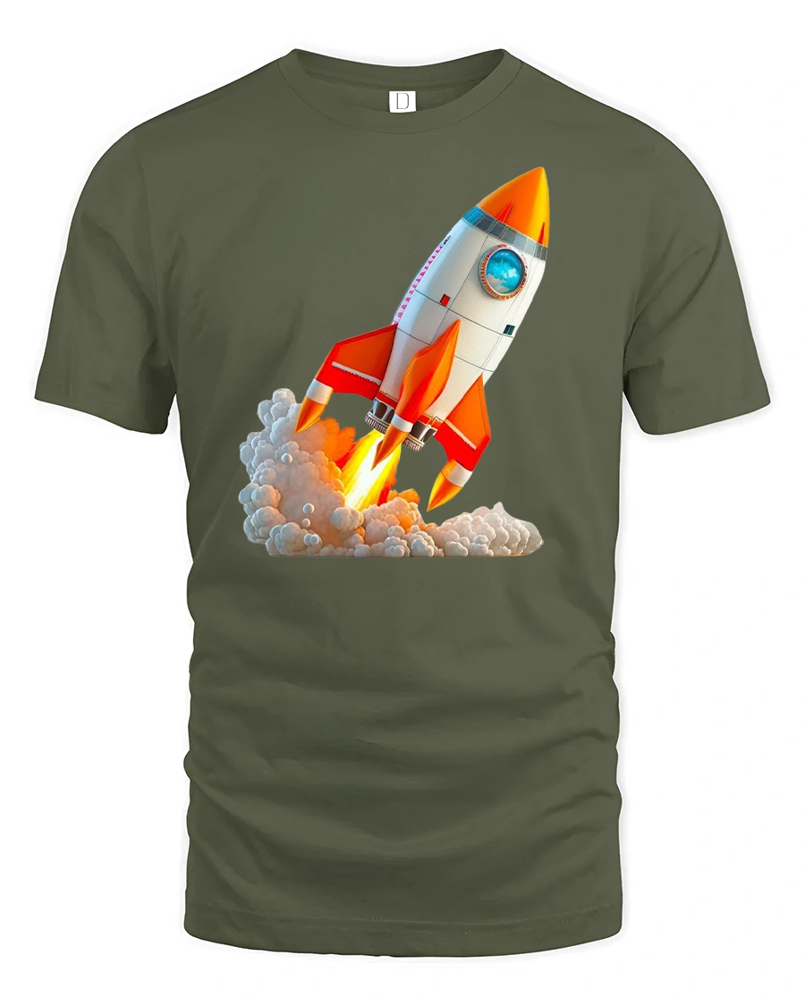 Take your style to new heights with the Rocket Launch Adventure Tee with Space Travel Art—perfect for dreamers, explorers, and anyone with a passion for the cosmos. This bold design captures the thrilling moment of liftoff, with vibrant orange flames and billowing smoke as the rocket soars into space.
