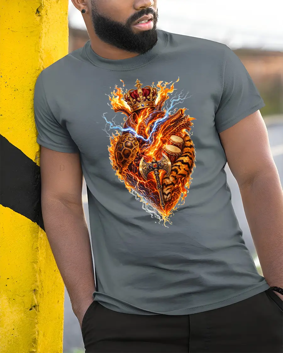 Unleash unstoppable energy with this Royal Flaming Warrior Heart Graphic T Shirt Power Style that blends fire, lightning, and royal strength into one bold design. The blazing heart crowned with power and surrounded by fierce elements creates a striking visual that instantly stands out in any crowd. This graphic captures passion, dominance, and fearless attitude in a way that feels powerful and artistic at the same time.