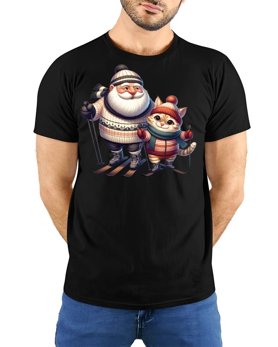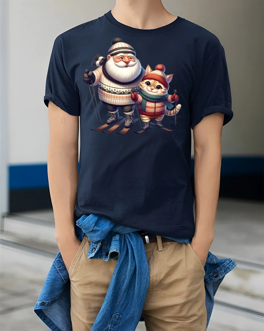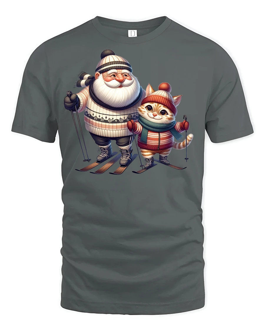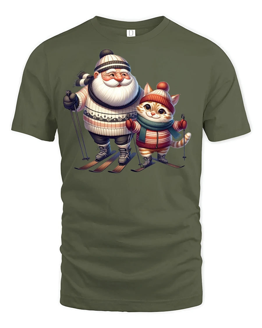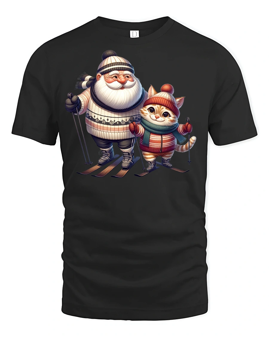 This shirt makes a thoughtful and humorous gift for cat lovers, Christmas enthusiasts, and anyone who enjoys quirky holiday fashion. Pair it with jeans, cozy sweaters, or festive accessories to complete your seasonal look. Spread laughter and holiday vibes with Santa and his furry ski buddy by your side.
