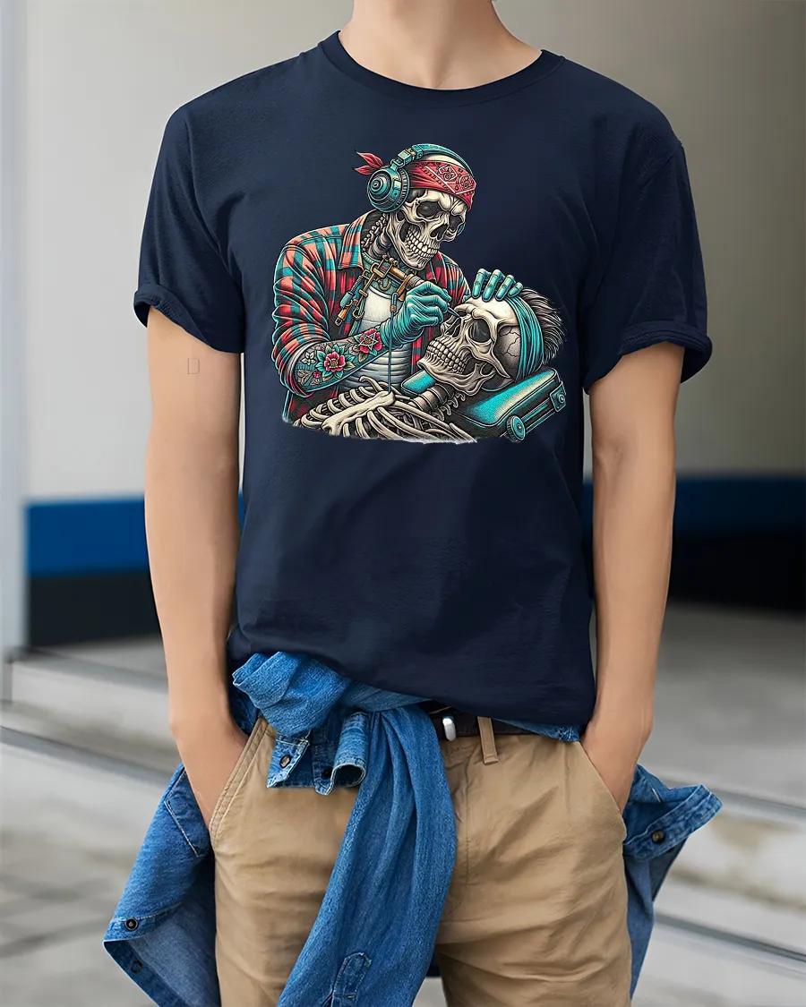 Skull Barber Cutting Hair Funny Skeleton Art T-shirt is the perfect mix of dark humor and artistic style.