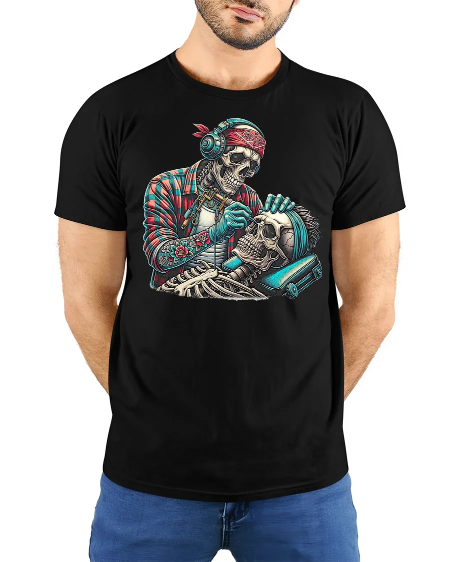 Made from premium soft cotton, this skeleton barber t-shirt is as comfortable as it is bold.