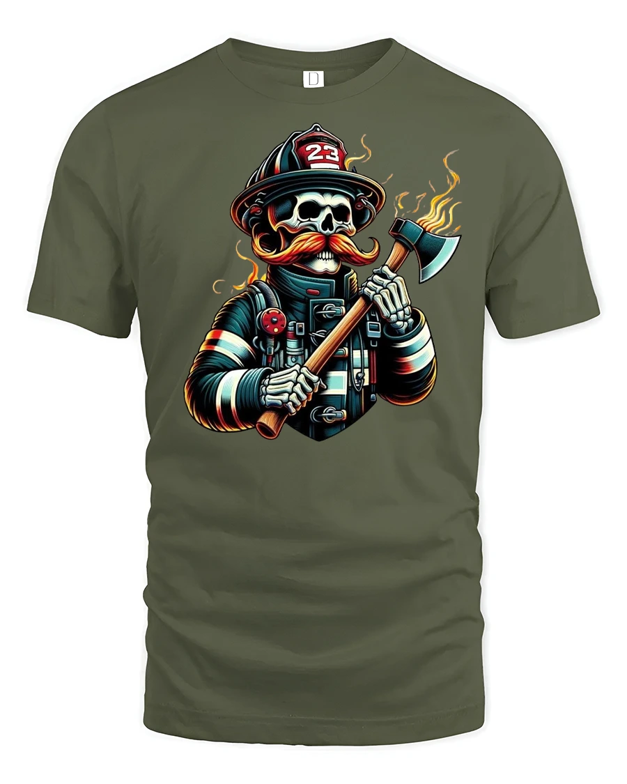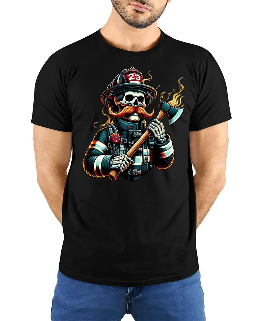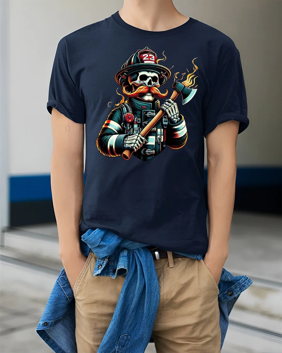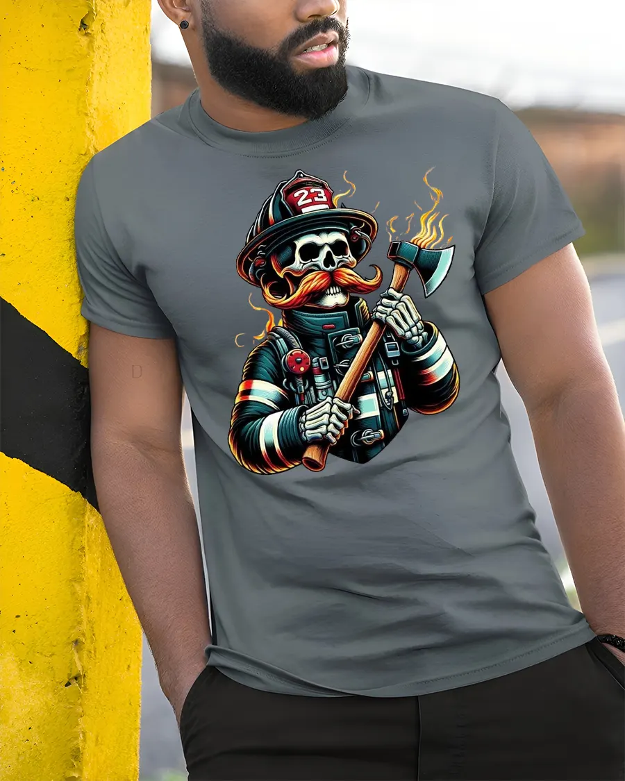 This t-shirt is also a fantastic gift for firefighters, skull art lovers, or those who want a unique piece in their wardrobe. It combines humor, art, and toughness into one striking design. Add this firefighter skull tee to your collection and showcase your fiery spirit with confidence.
