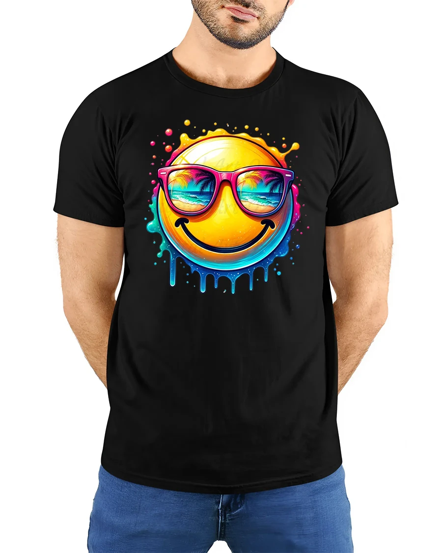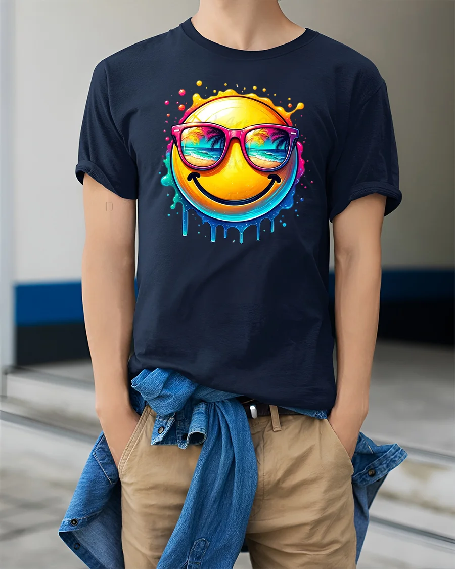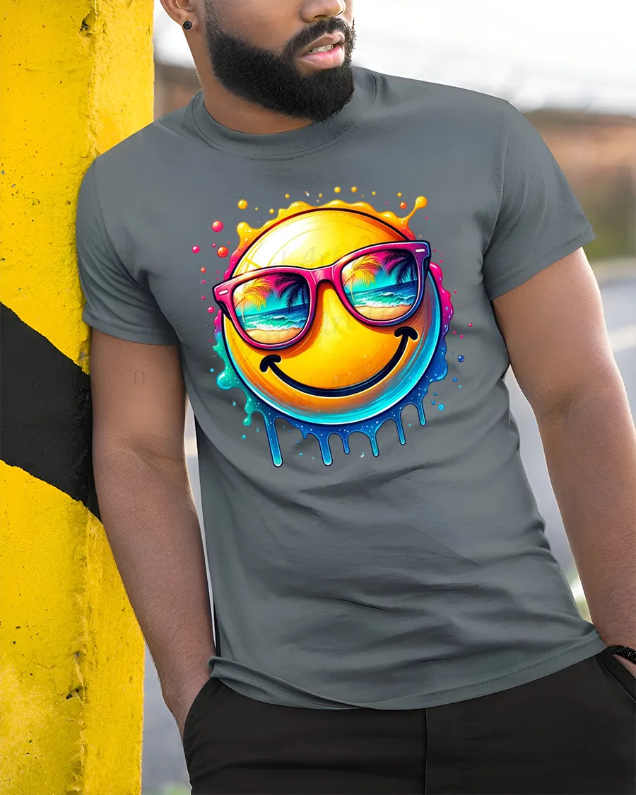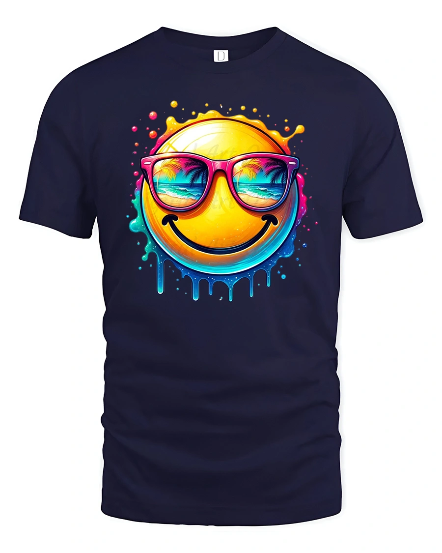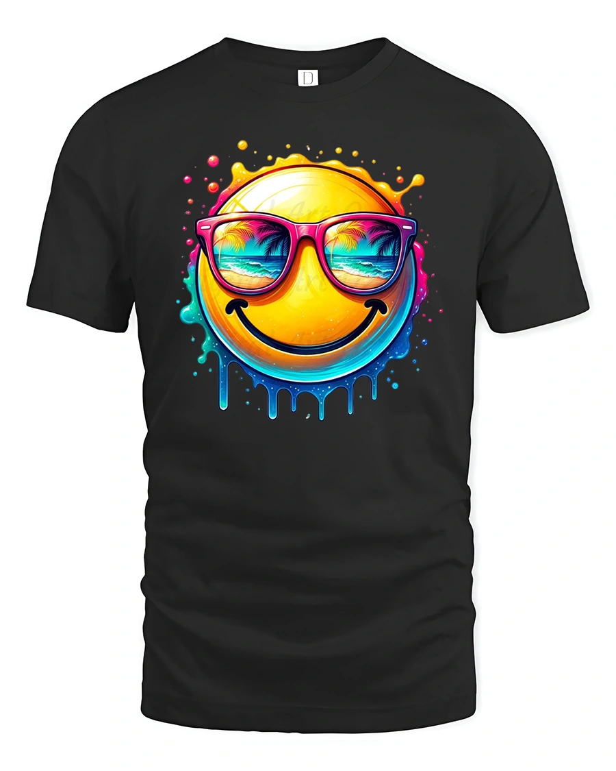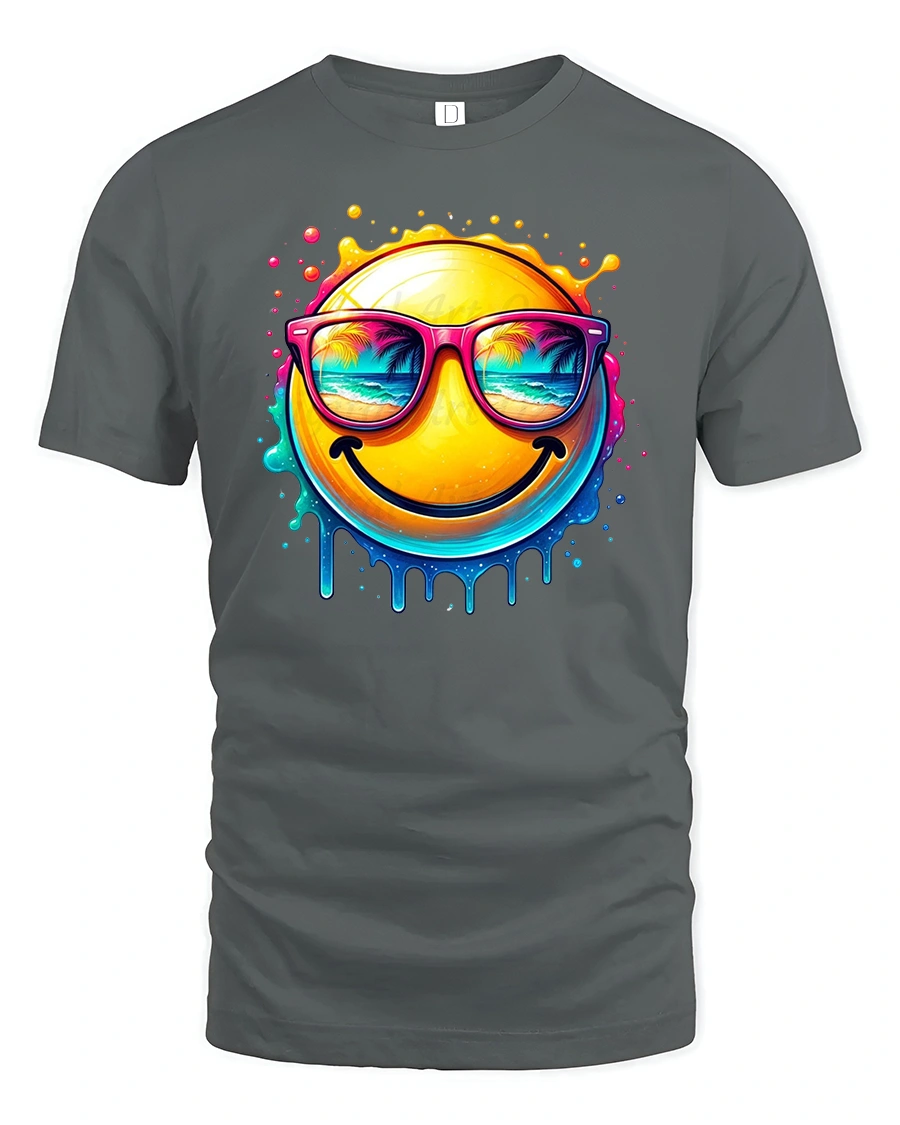 The Smiling Summer Vibes Emoji Tee delivers instant happiness with a bold and colorful design.