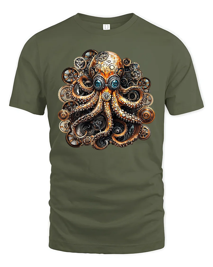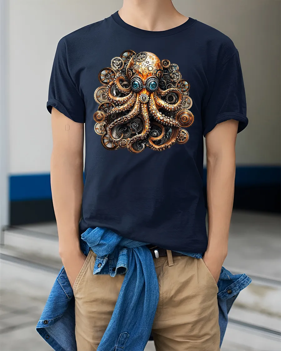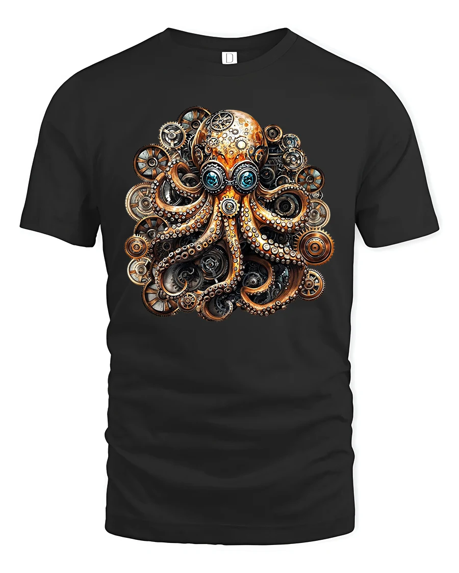 Show off your love for adventure, design, and imagination with this striking steampunk octopus t-shirt.