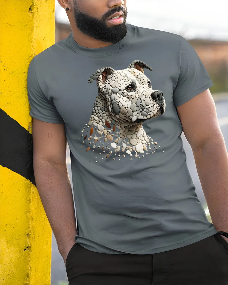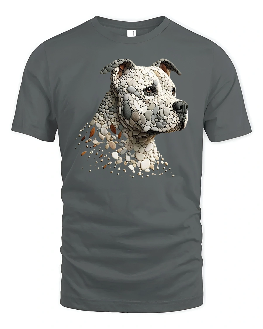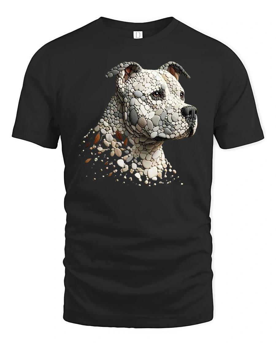 Stone Mosaic Pitbull Dog Head Graphic Art T-Shirt is a powerful and artistic piece for dog lovers and pitbull fans.