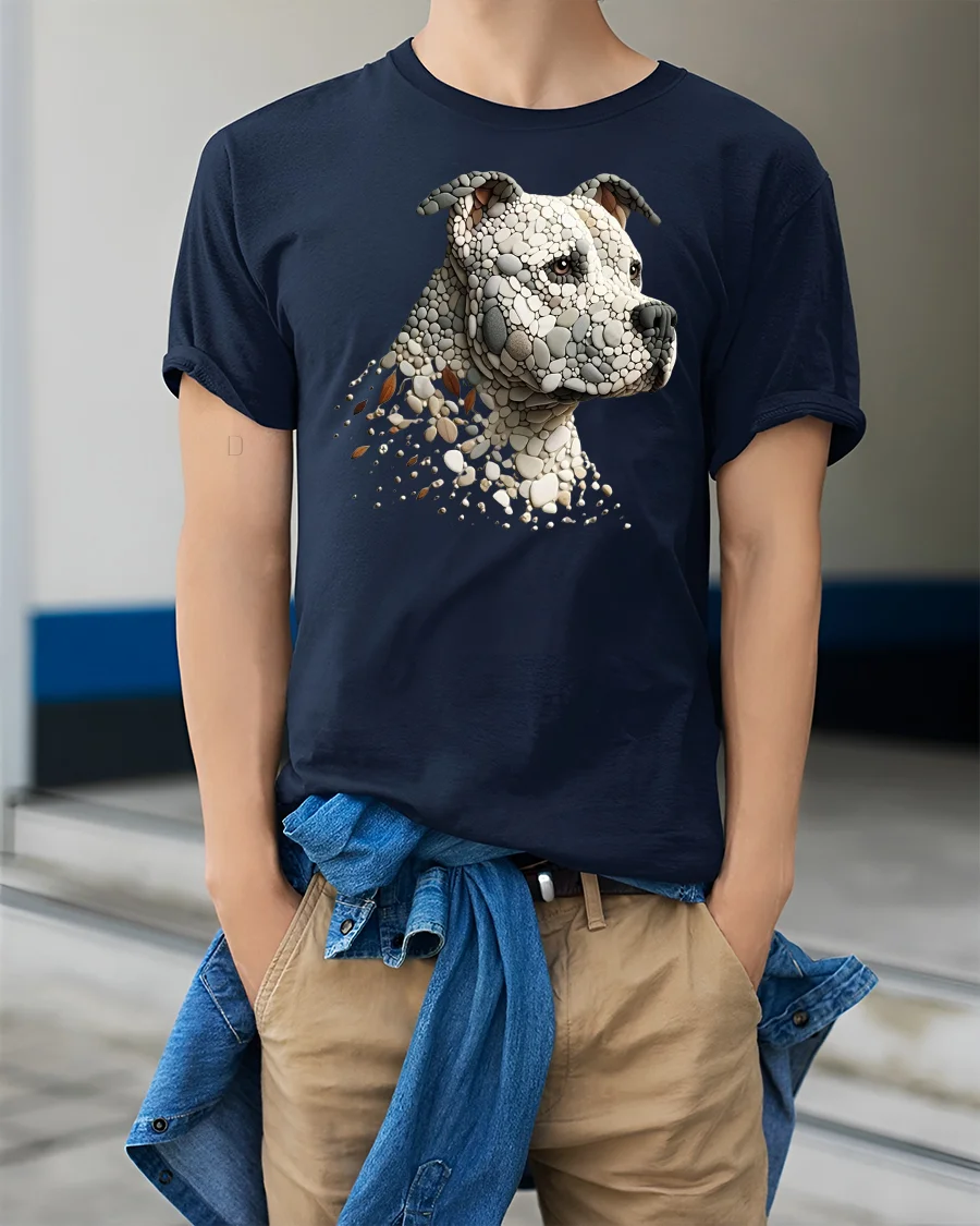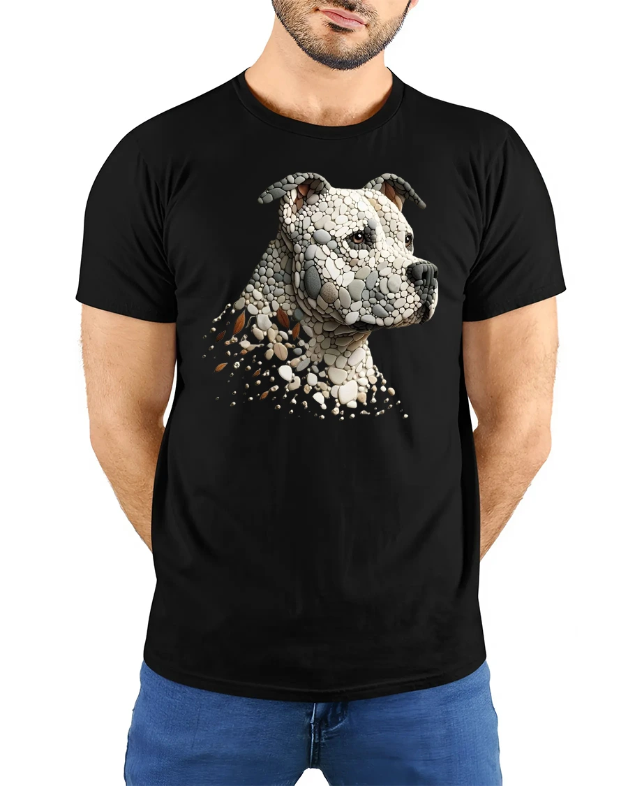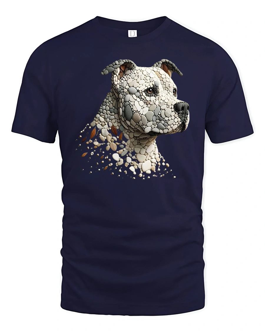 Celebrate the strength and loyalty of man’s best friend with the Stone Mosaic Pitbull Dog Head Graphic Art T-Shirt.