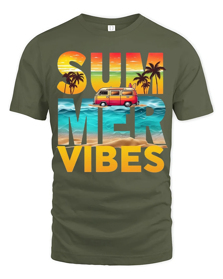 The Summer Vibes Beach Van Graphic T Shirt Tropical Sunset Tee is also a great gift idea for anyone who loves road trips, ocean views, tropical destinations, and sunny memories. Add fresh seasonal style to your collection with a design that celebrates fun, freedom, and endless summer energy.