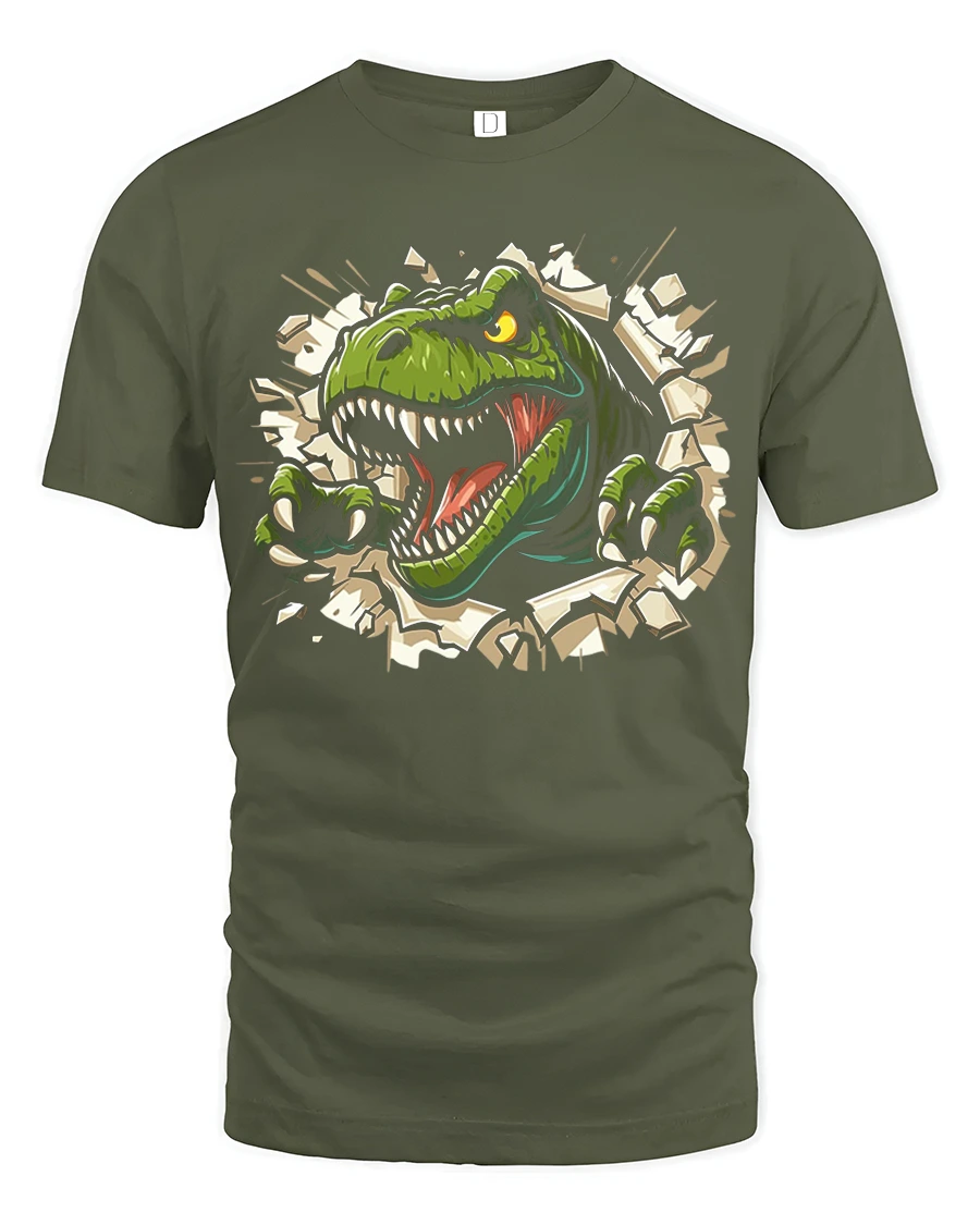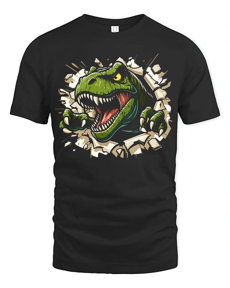 T Rex Breakthrough Tee Ferocious Dinosaur Graphic Tshirt delivers a bold and action-packed design perfect for dinosaur fans of all ages. Featuring a fierce T Rex bursting through a cracked wall, this tee captures movement, power, and excitement in a dynamic graphic that immediately grabs attention. The vibrant artwork and sharp details make it a standout piece for anyone who loves prehistoric creatures and dramatic illustrations.