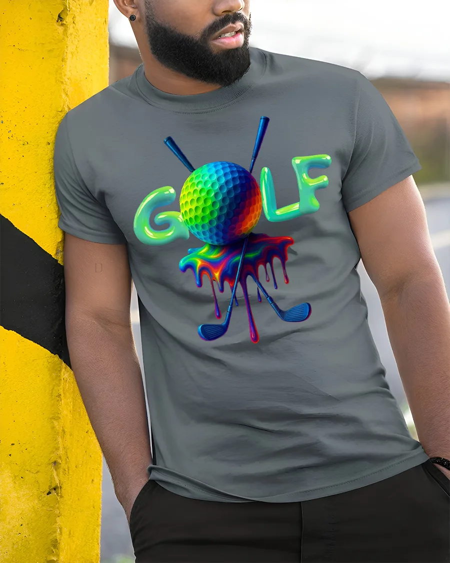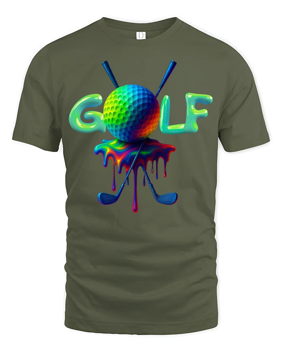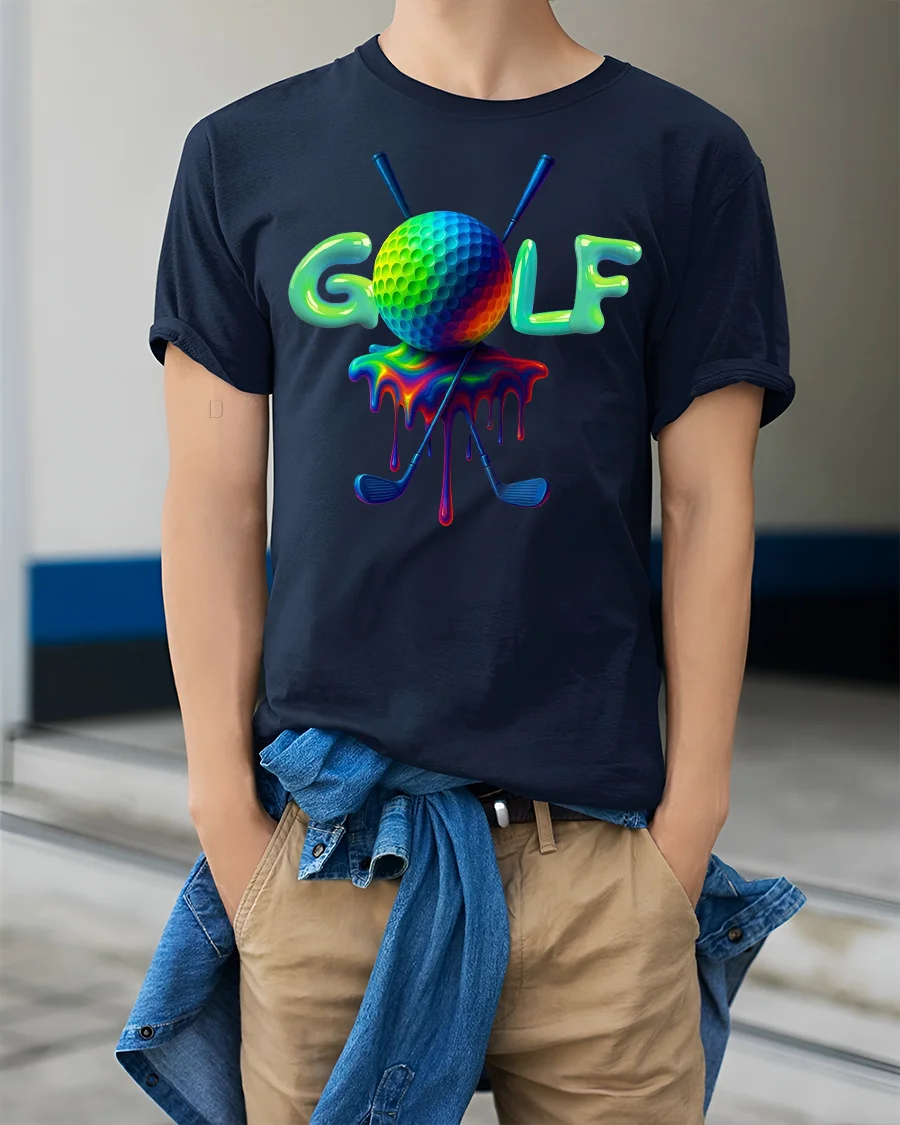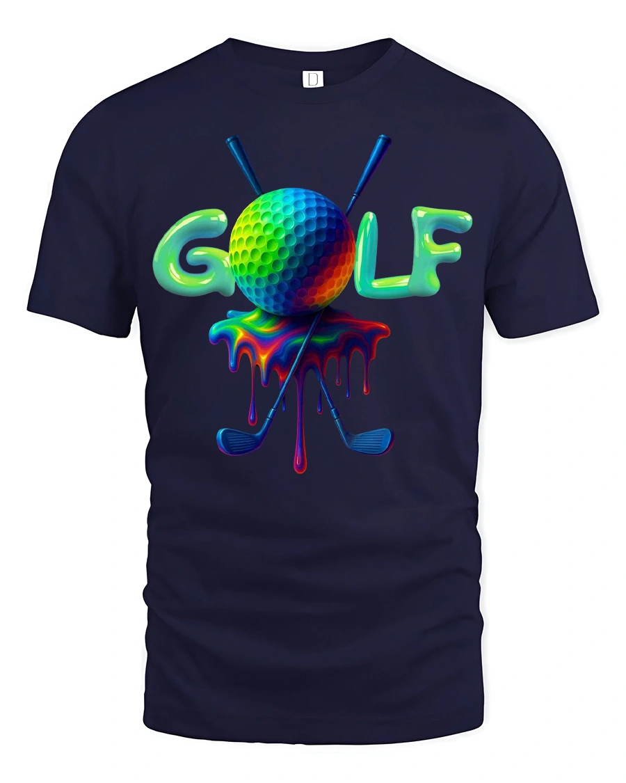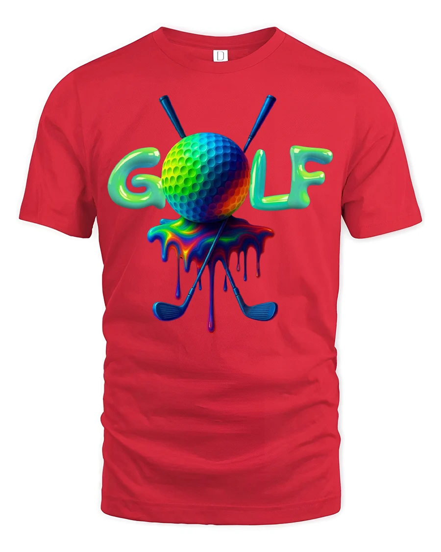 This Vibrant Golf Tee with Colorful Dripping Ball Art Design brings bold personality to the course, the clubhouse, or your everyday casual outfits. Featuring a vividly colored golf ball with a smooth dripping effect and crossed clubs behind it, this tee is perfect for golfers who love adding creativity to their game. The bright color style makes the artwork pop, offering a fun and unique twist on classic golf apparel.