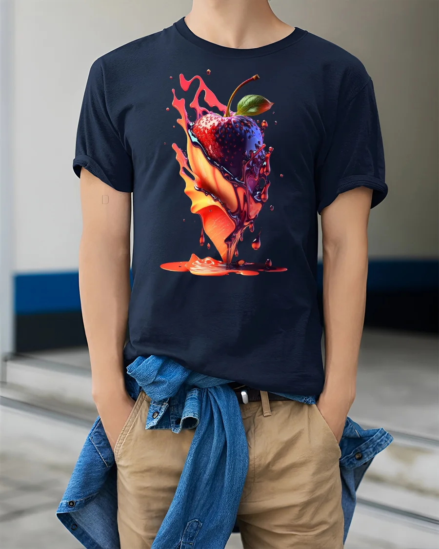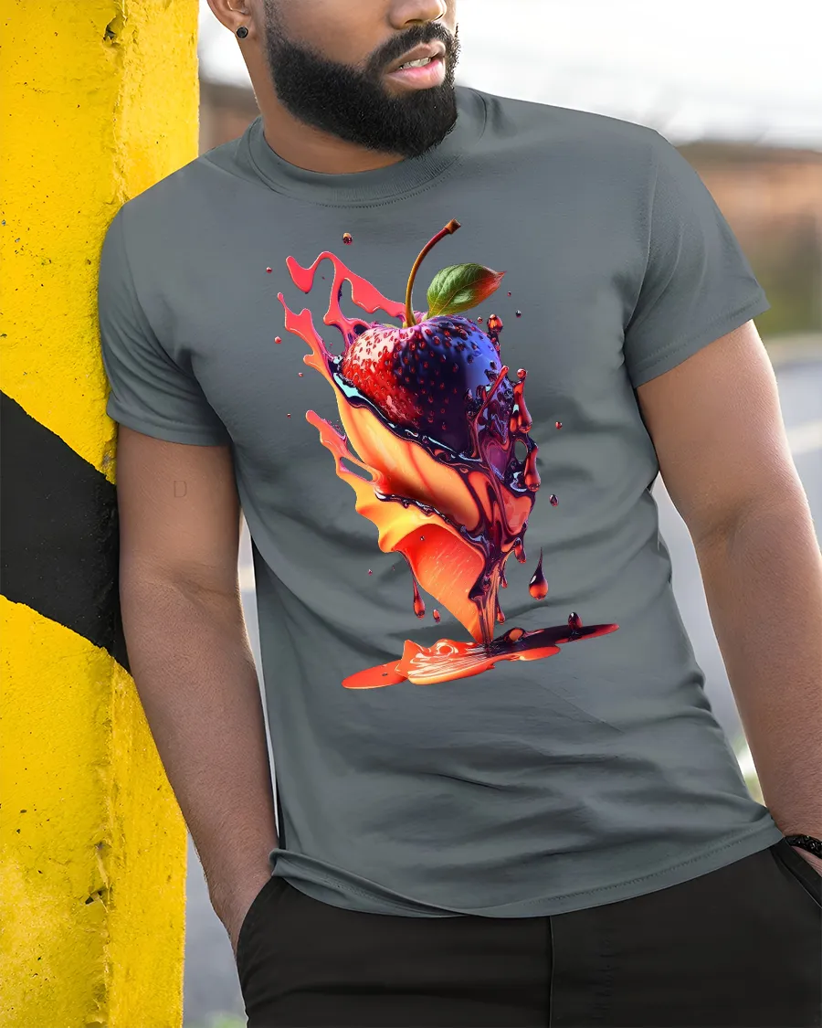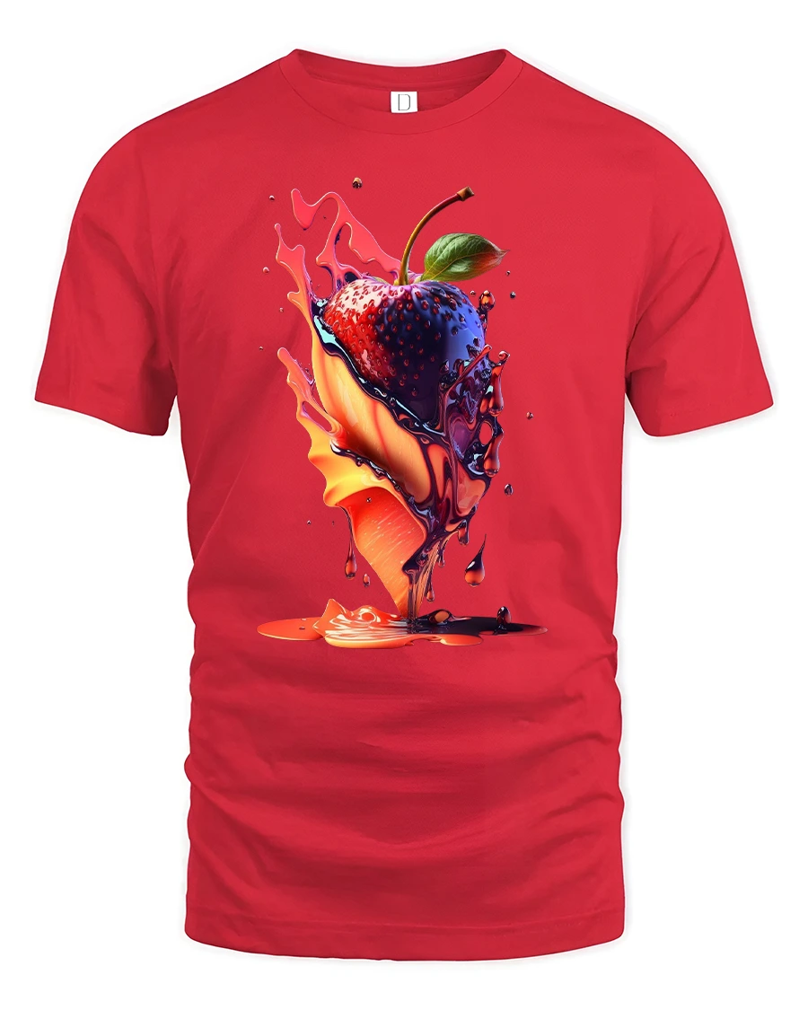 This Vibrant Melting Strawberry Art Tee showcases a stunning splash of color and creativity, featuring a melting strawberry captured in a fluid, swirling burst of liquid art. The bold contrast and eye-catching details make this design perfect for anyone who loves expressive artwork, fruity themes, and unique fashion that stands out. Its modern abstract style adds a fresh and artistic twist to your everyday wardrobe.