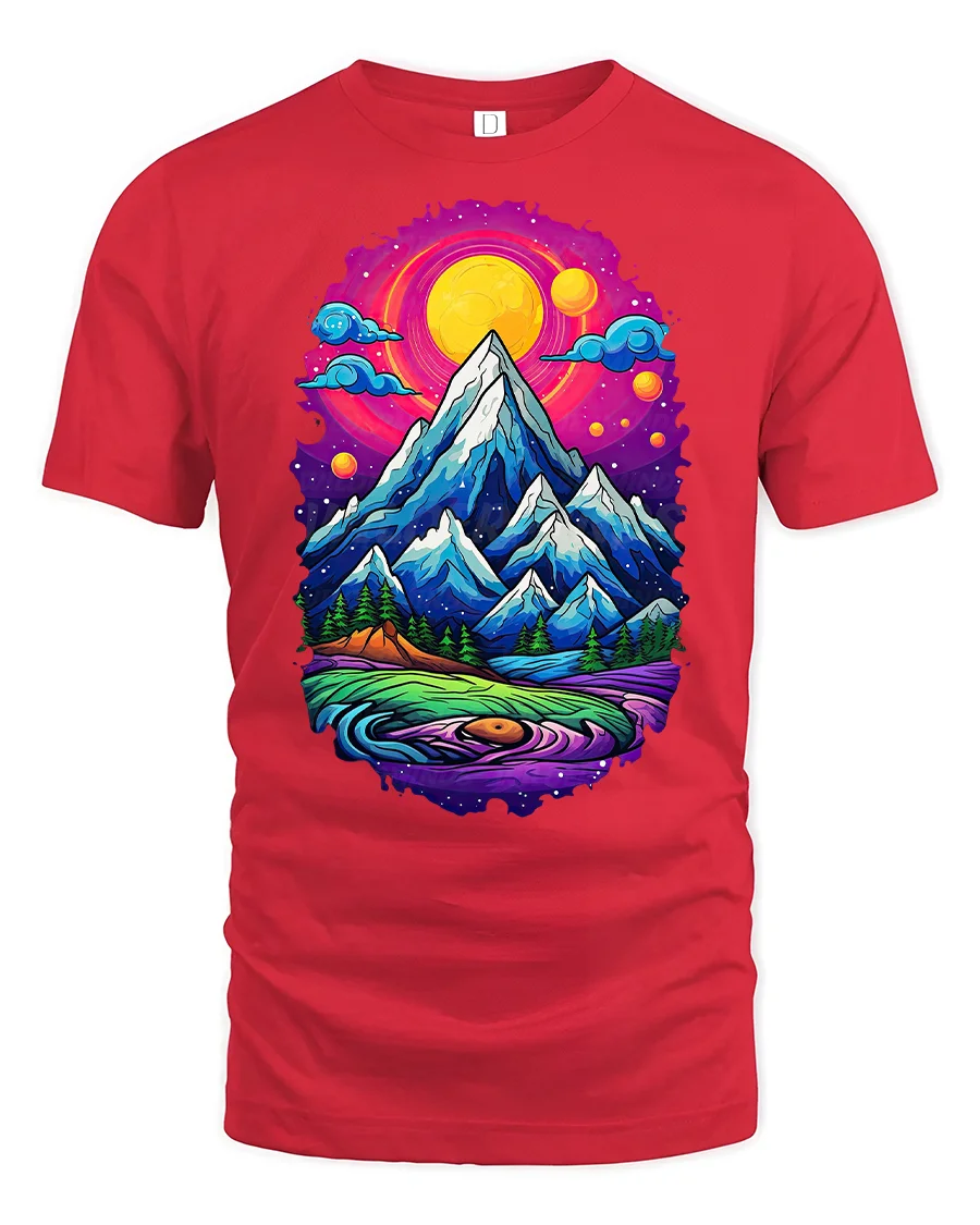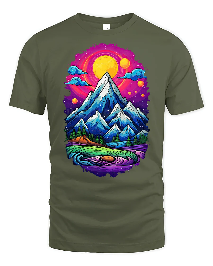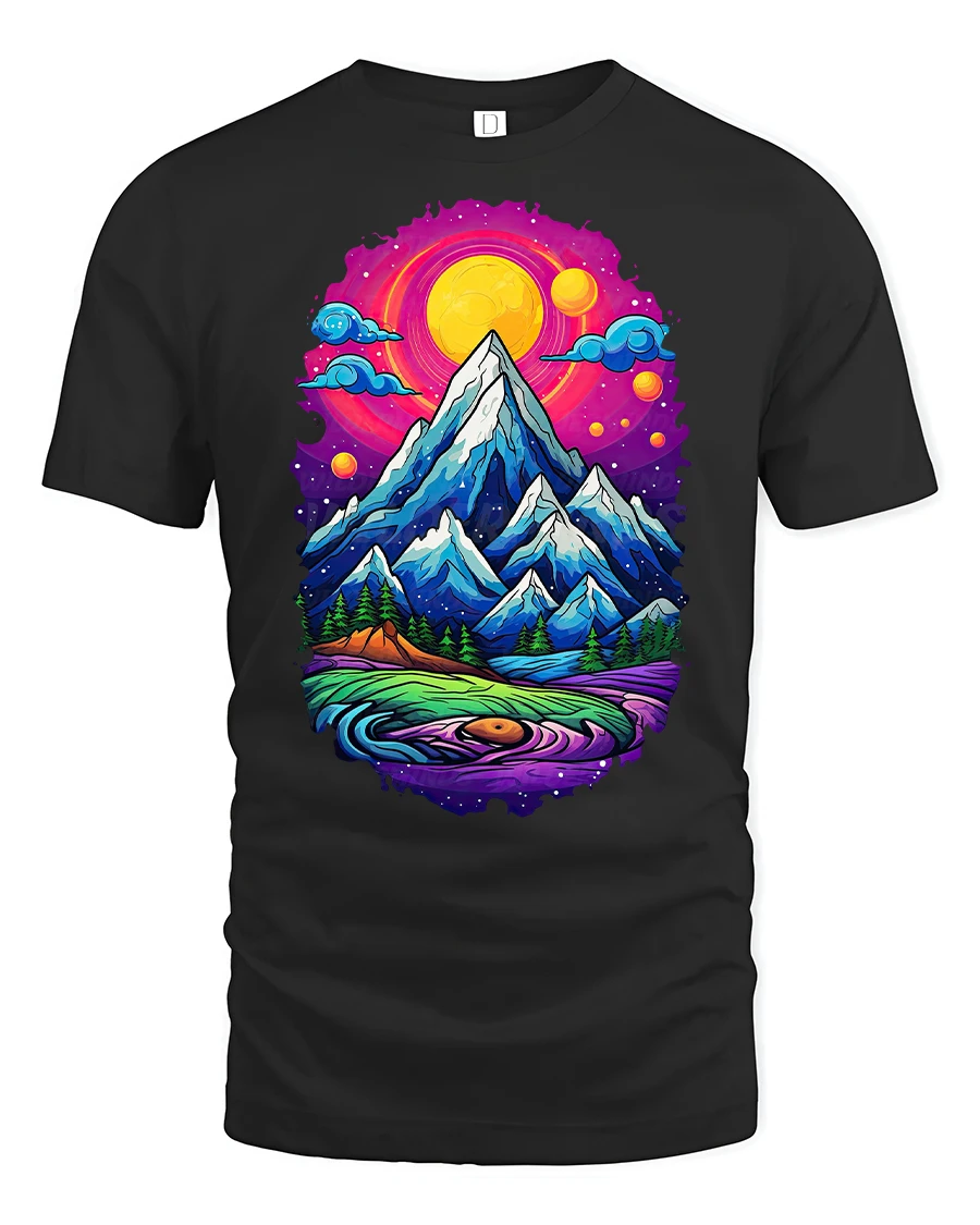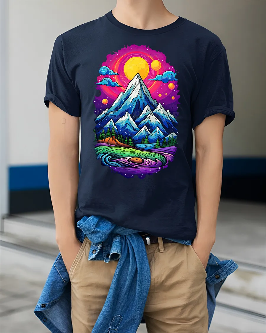 The Vibrant Mountain Sunset Landscape Graphic Tee also makes a unique gift for hikers, campers, or art lovers who appreciate stunning designs inspired by nature’s wonders.