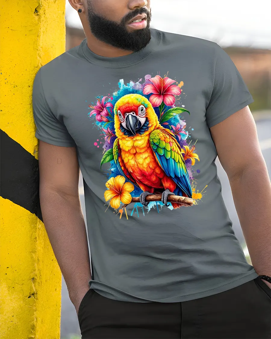 Bring a burst of tropical beauty to your wardrobe with this colorful parrot tshirt that blends comfort, artistry and personality. Whether you’re exploring the outdoors or simply adding color to your day, this tee delivers bold island energy in every wear.