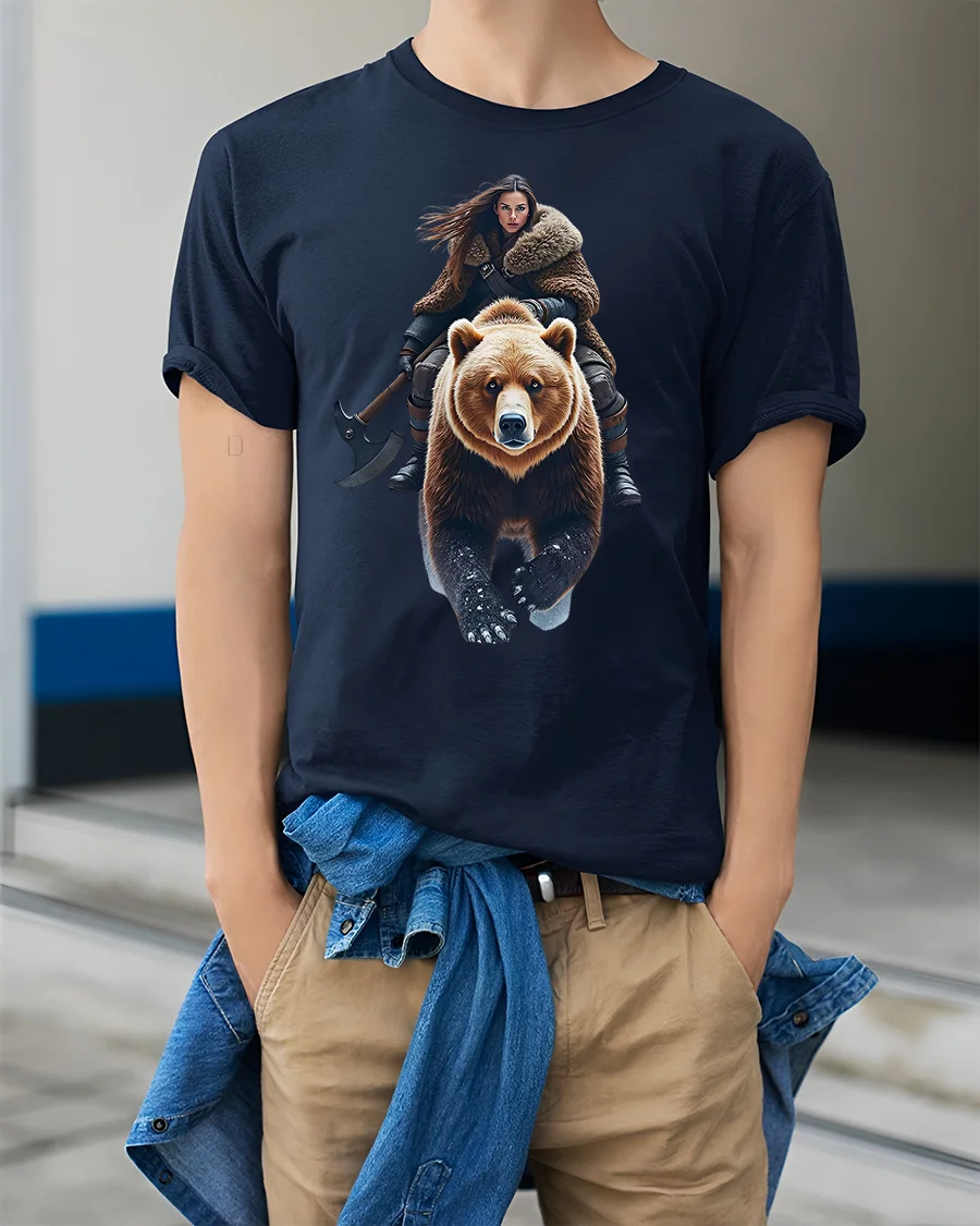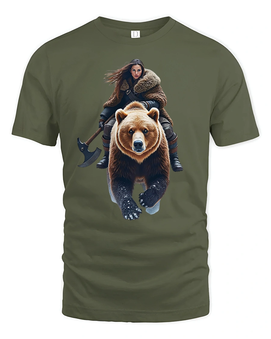 Viking Warrior Woman Riding Bear Epic Power T-Shirt brings together the fierce spirit of Norse mythology and fantasy adventure.