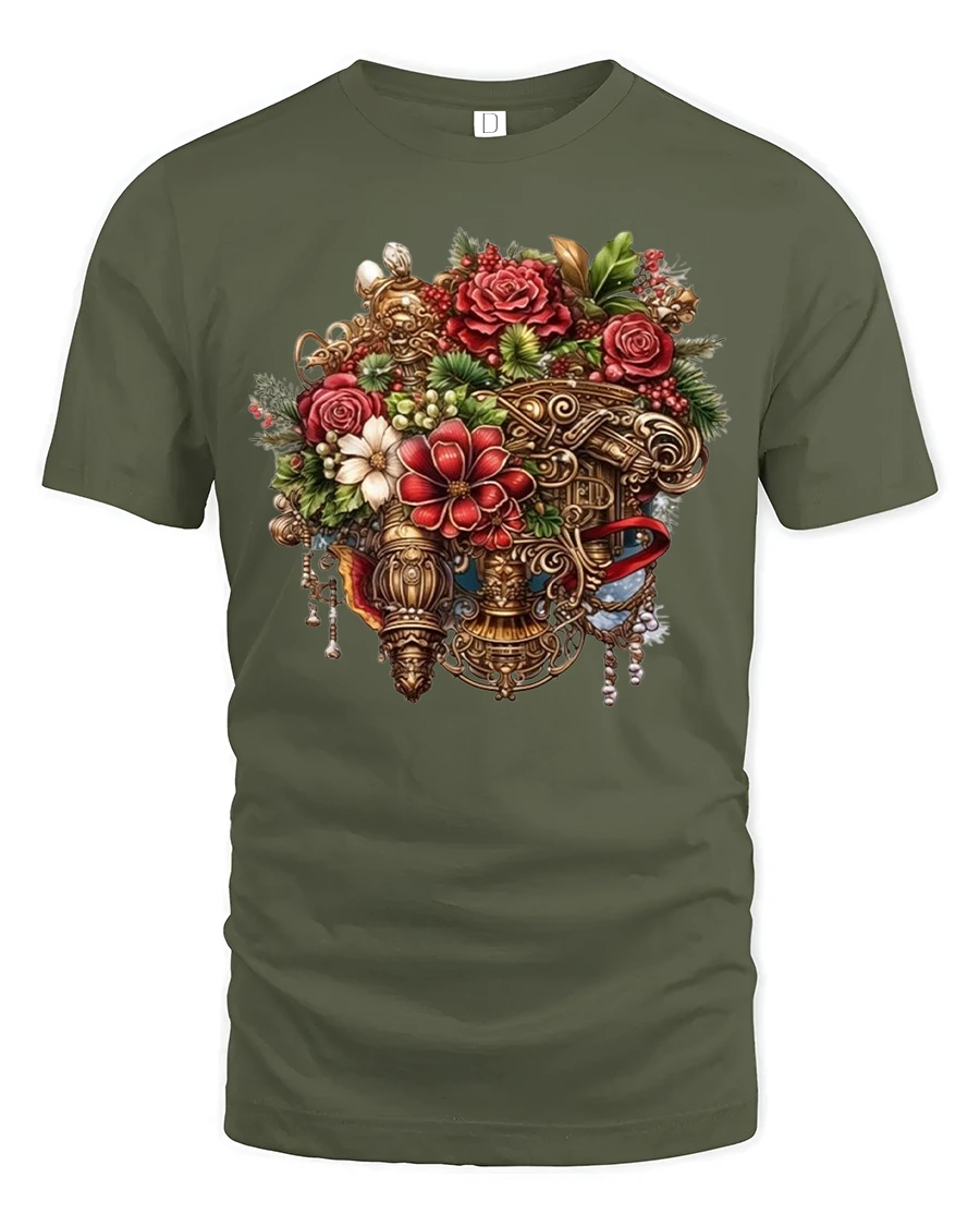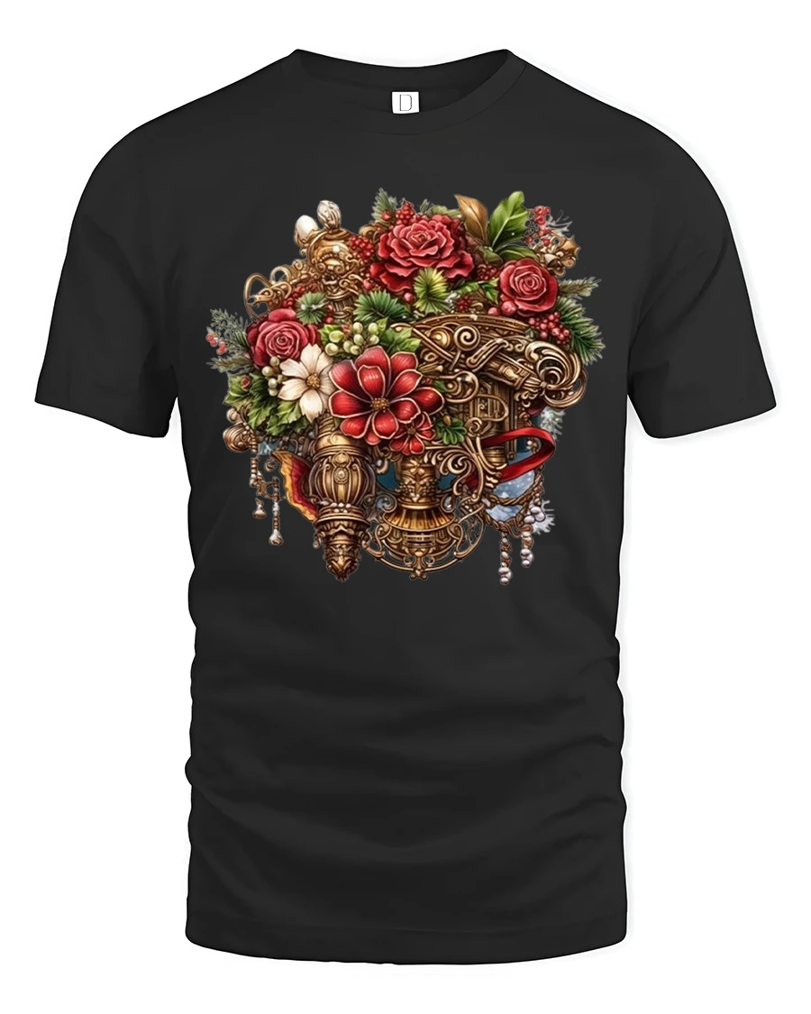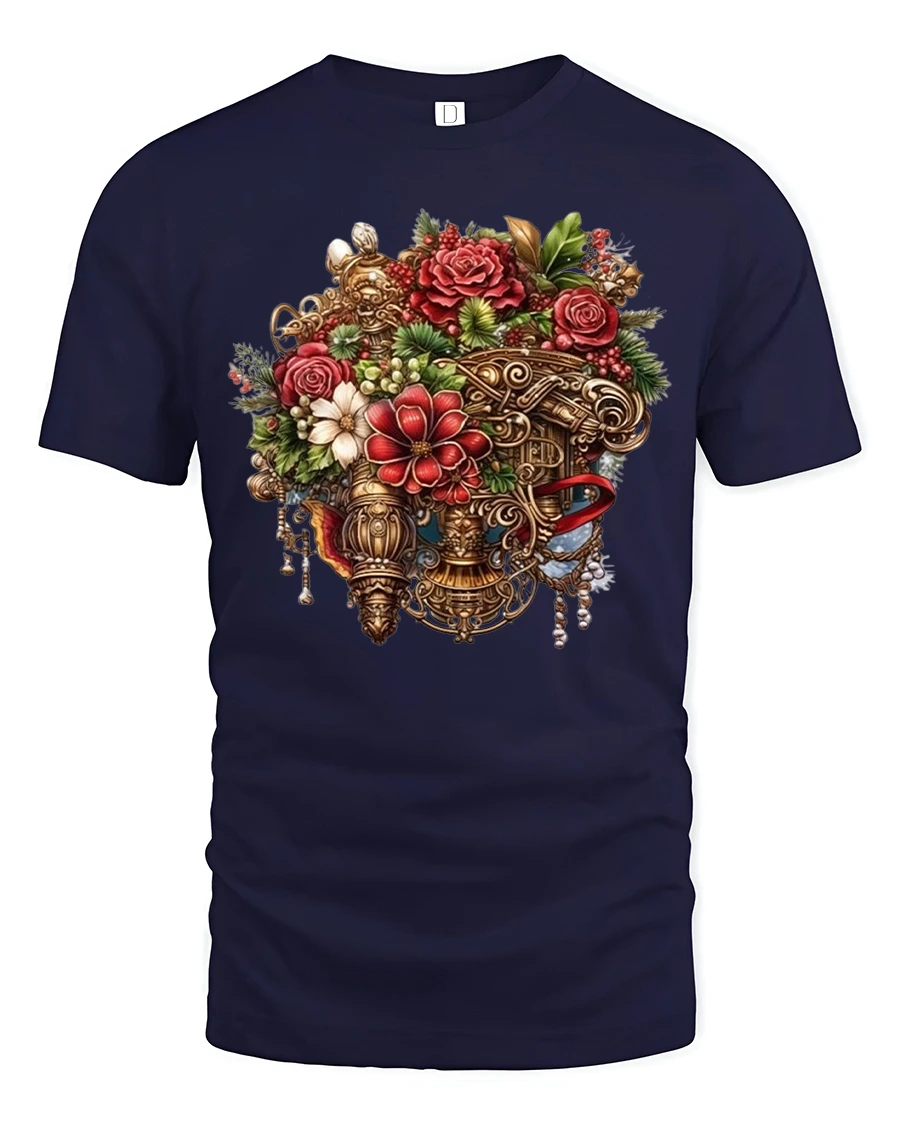 Vintage Floral Royal Vase Tee with Elegant Bloom Design brings a luxurious and artistic touch to your wardrobe. This beautifully printed t-shirt features an intricate arrangement of roses, blossoms, greenery, and ornate golden details displayed in a regal vase design. Perfect for anyone who loves vintage art, elegant florals, or unique statement clothing, this tee blends classic beauty with modern wearable comfort.