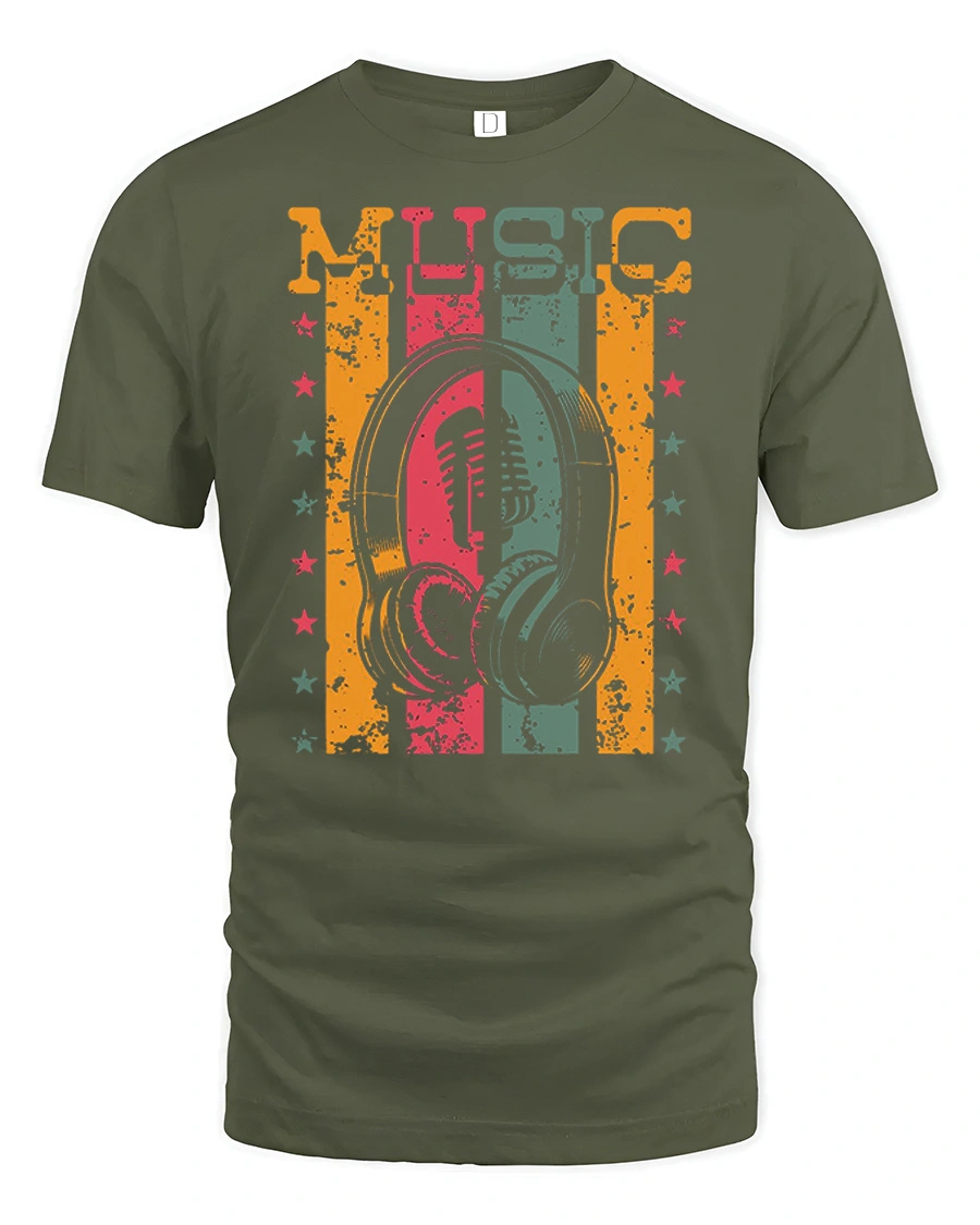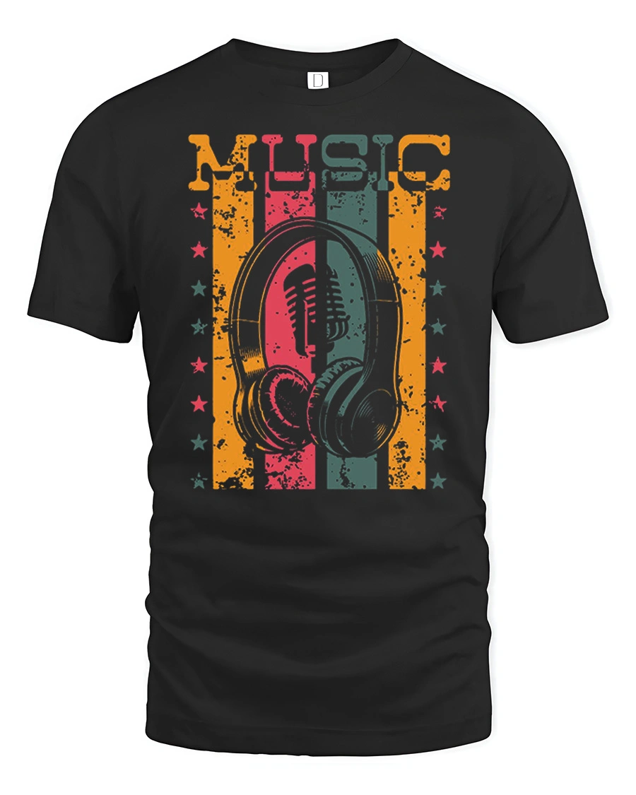 Vintage Music Headphones Graphic T Shirt Retro Music Tee is a stylish design inspired by classic music culture and retro art style. The graphic features a vintage microphone and headphones with retro color stripes, creating a nostalgic music theme that stands out in any outfit. This design is perfect for music lovers who enjoy classic style, sound culture, and artistic graphic fashion.