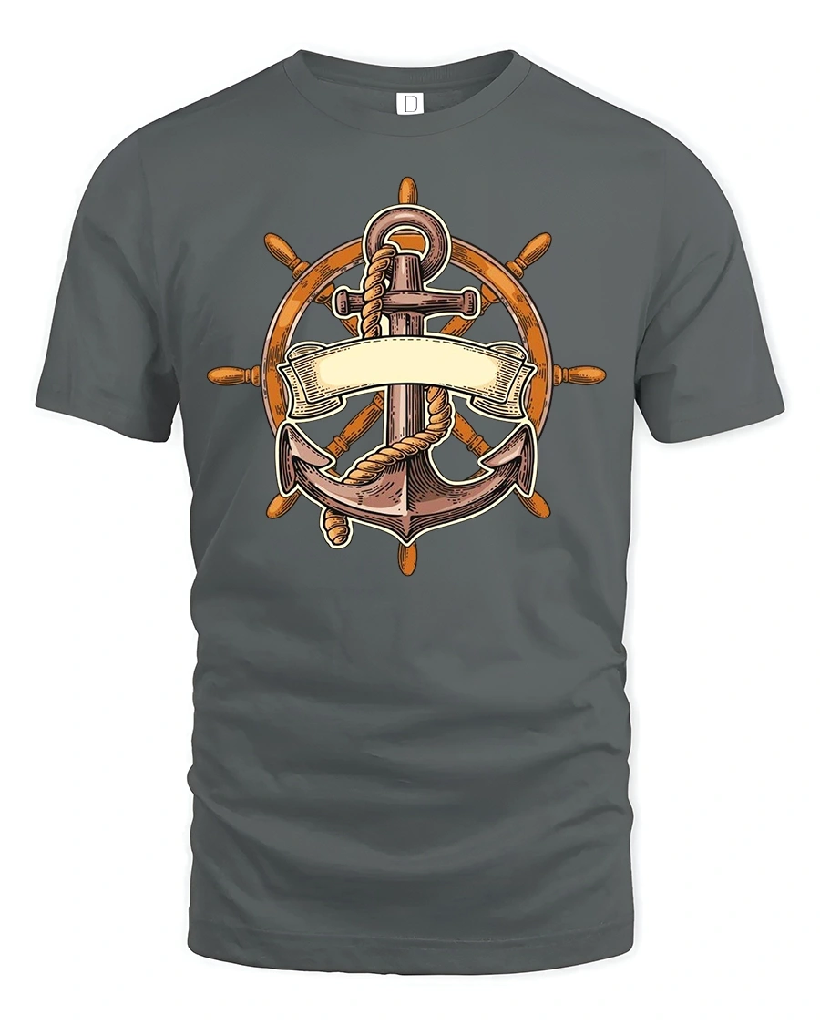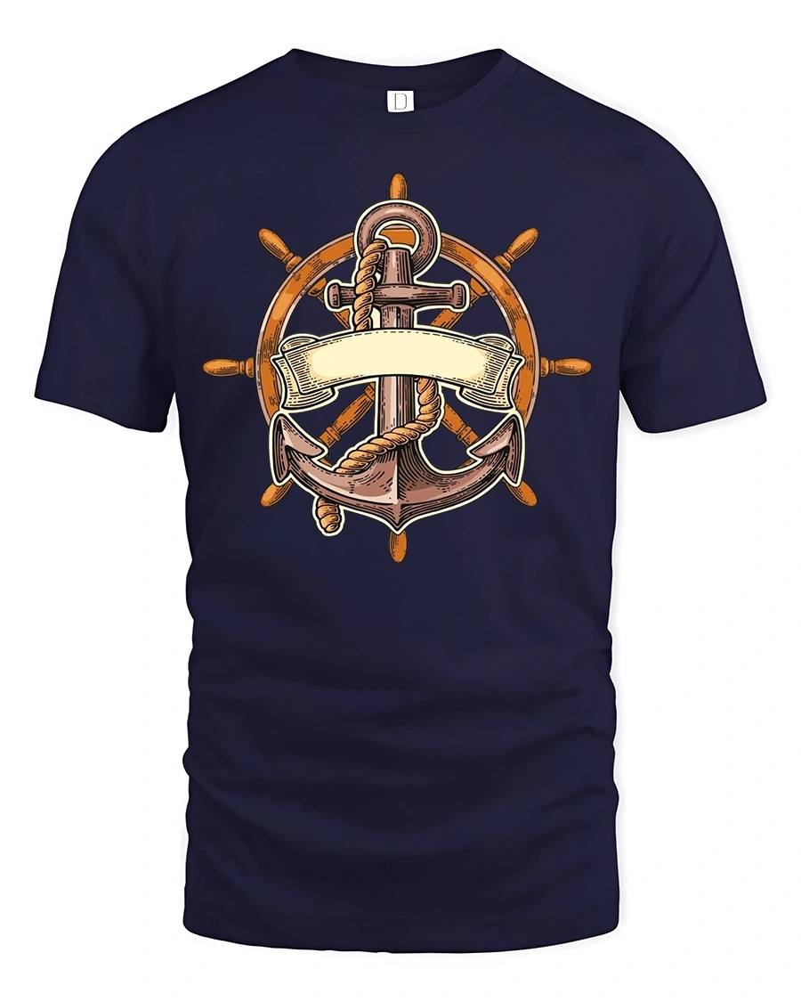 Vintage Nautical Anchor And Ship Wheel Classic Graphic Tshirt brings timeless maritime style into everyday fashion.