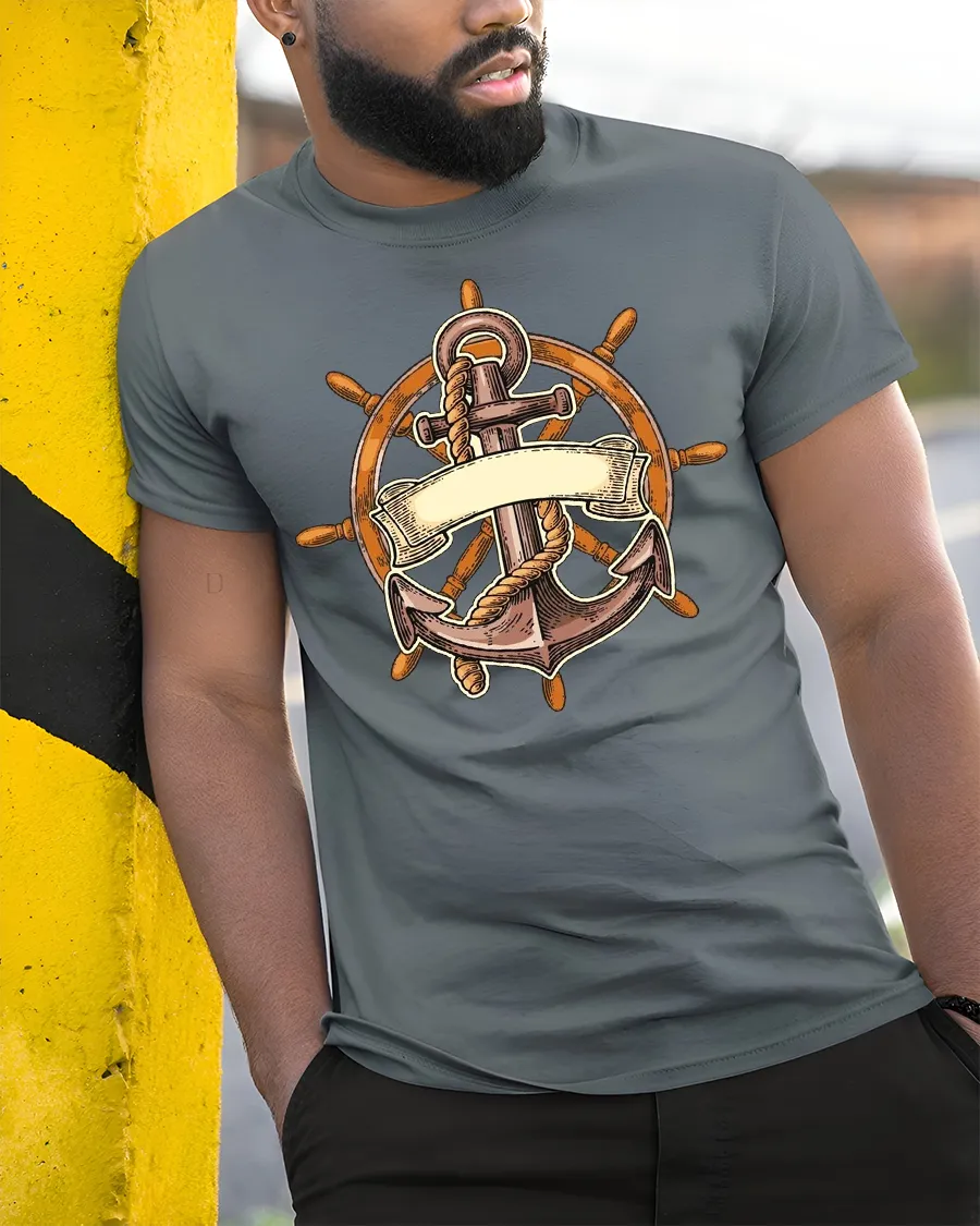 Vintage Nautical Anchor And Ship Wheel Classic Graphic Tshirt is crafted from soft comfortable fabric designed for daily wear.