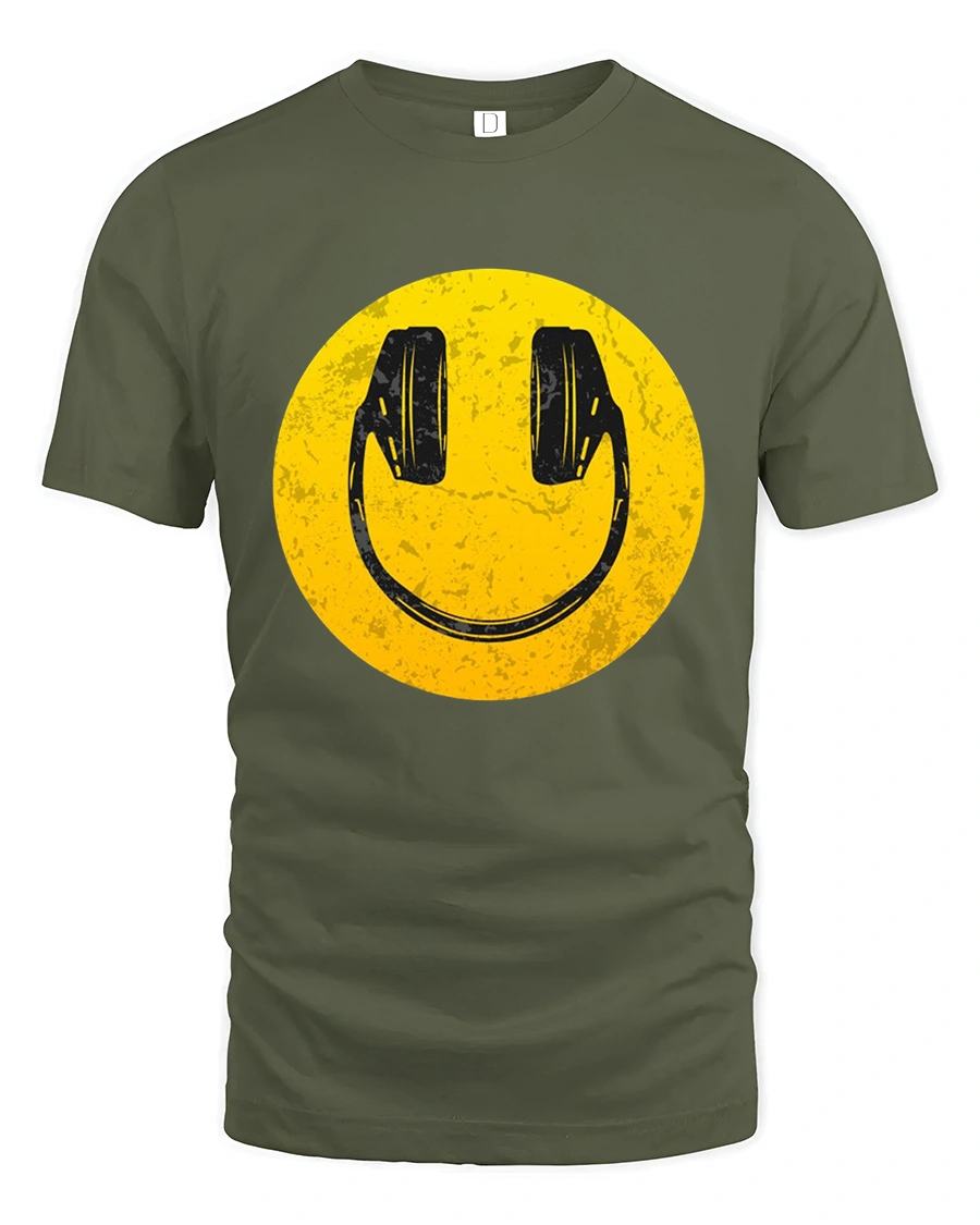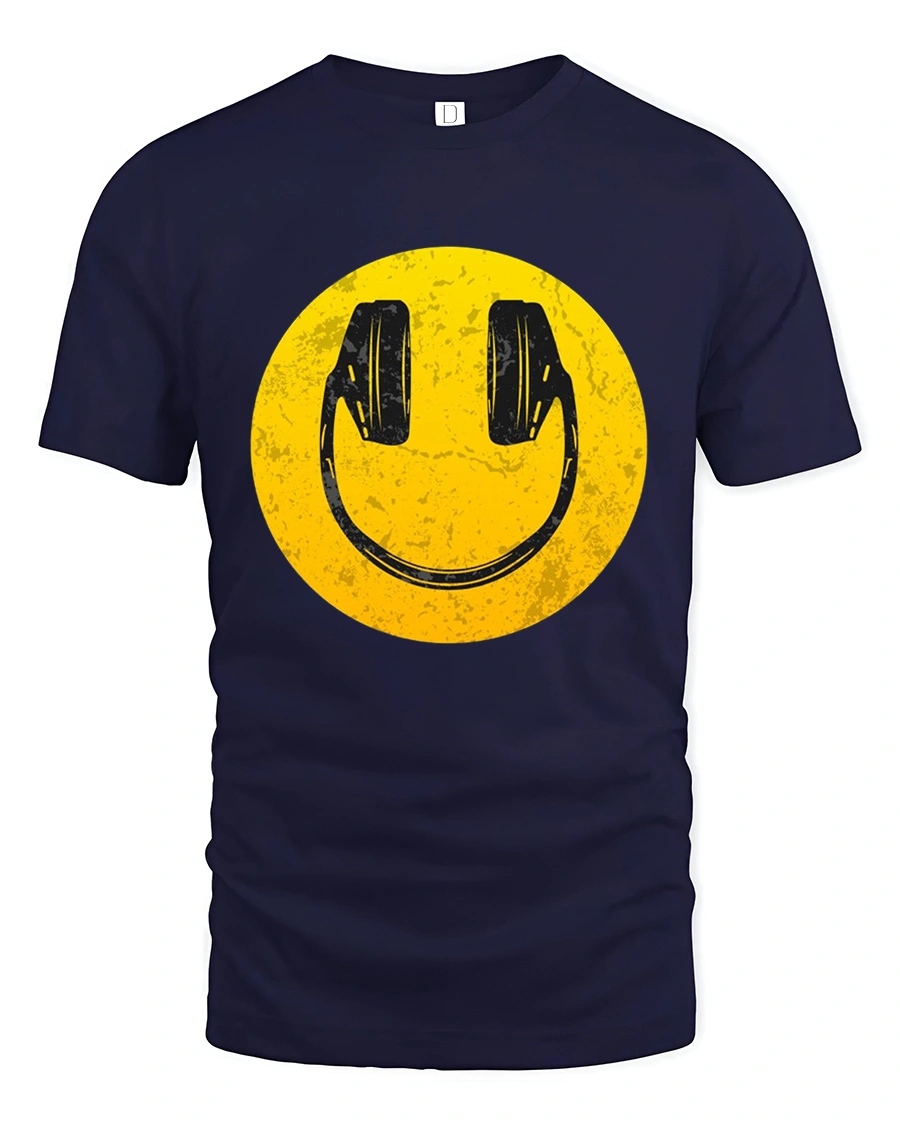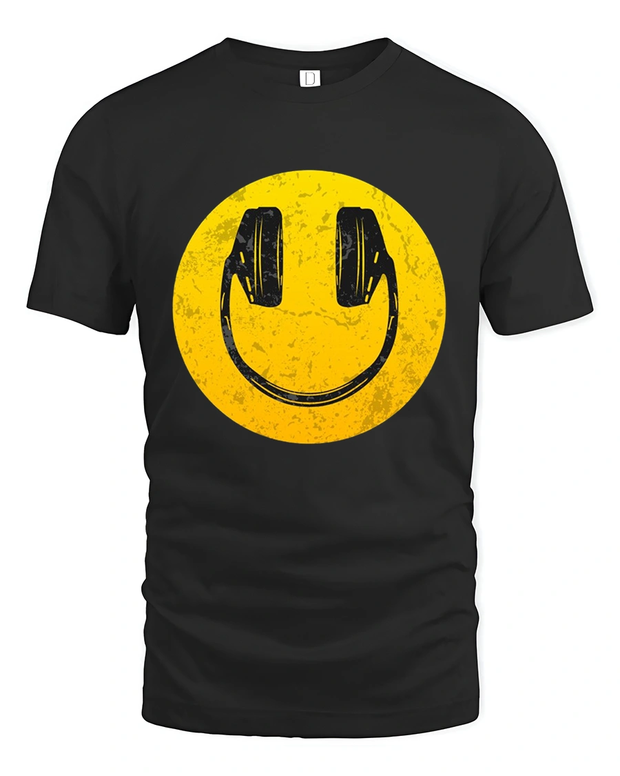 The iconic smiley face combined with bold headphones creates a simple yet expressive design that instantly connects with music lovers.