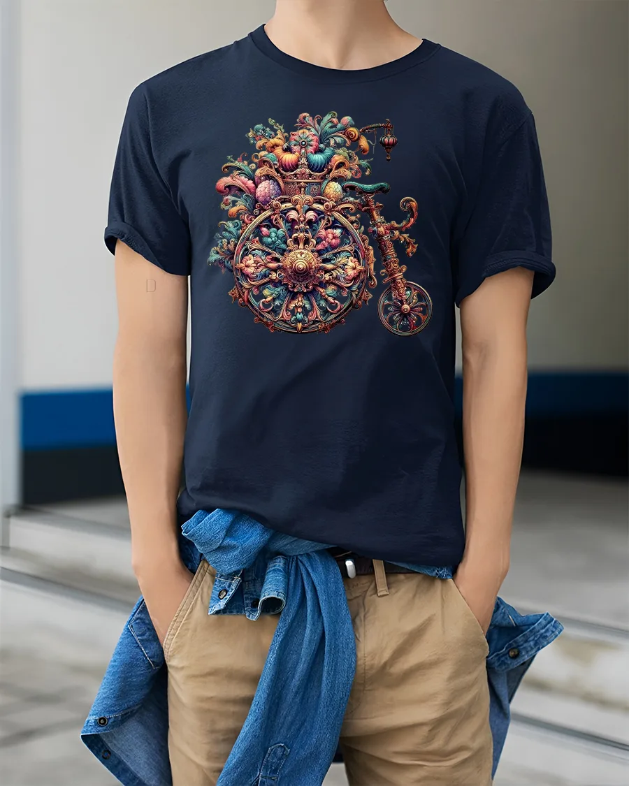 Vintage Steampunk Bicycle Art Colorful Graphic Tee blends imagination, history, and creativity in one stunning piece.
