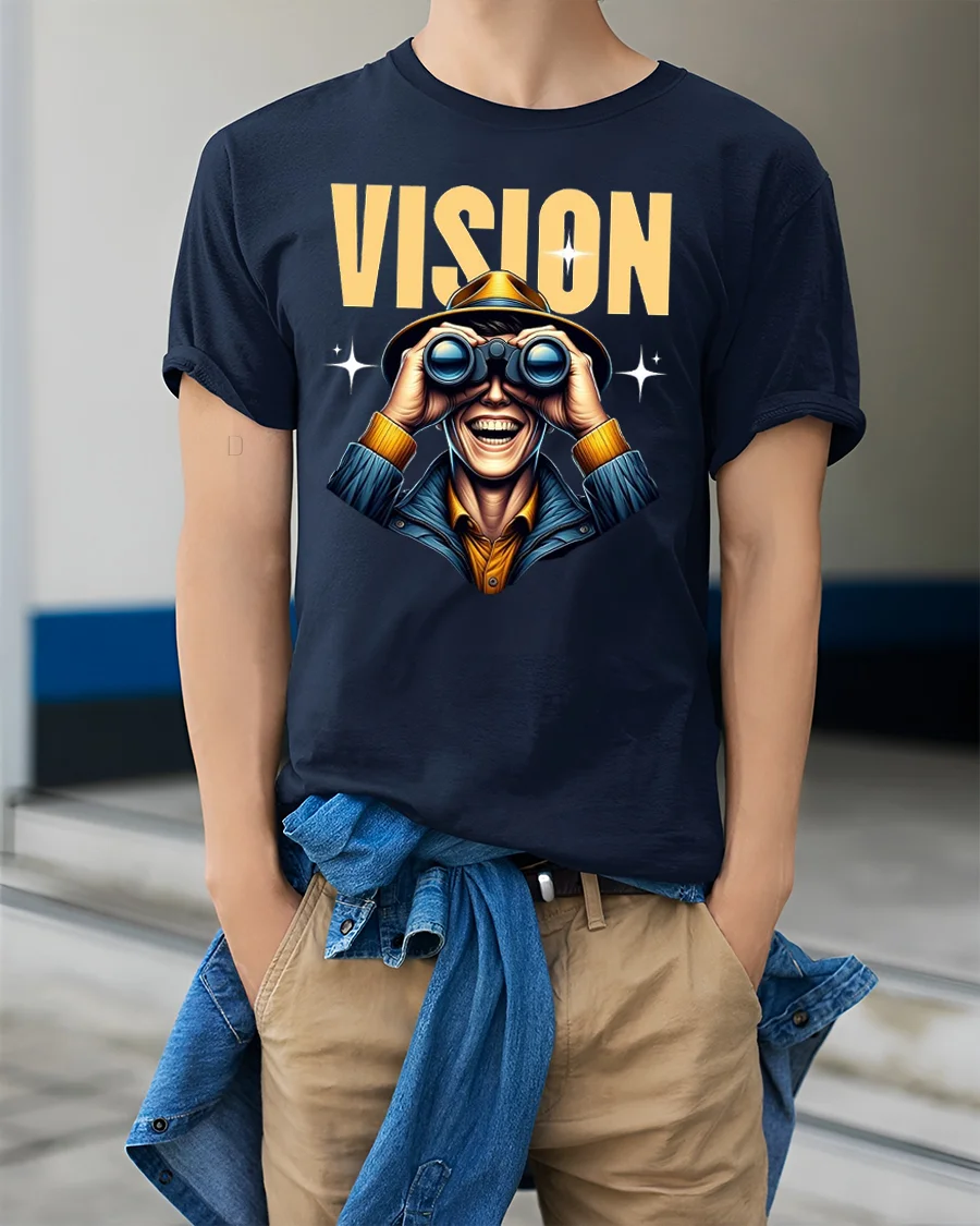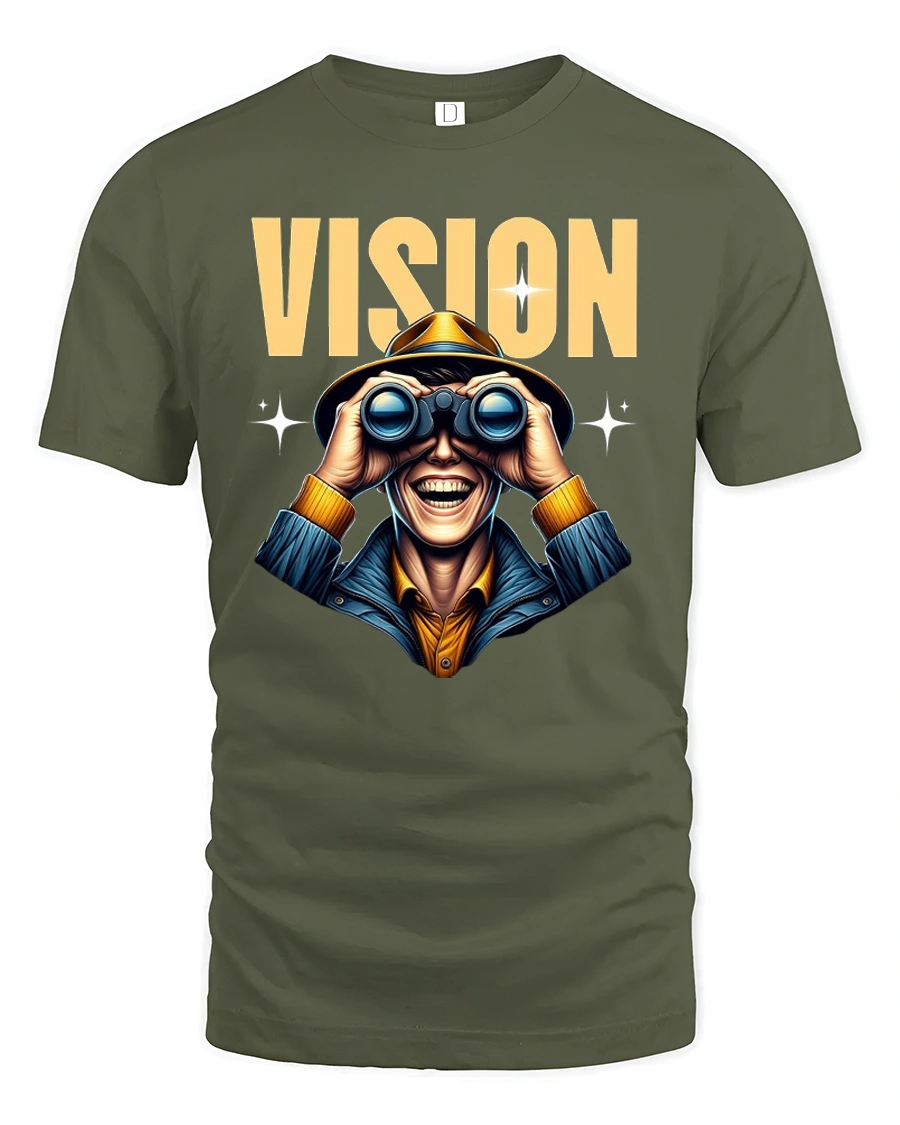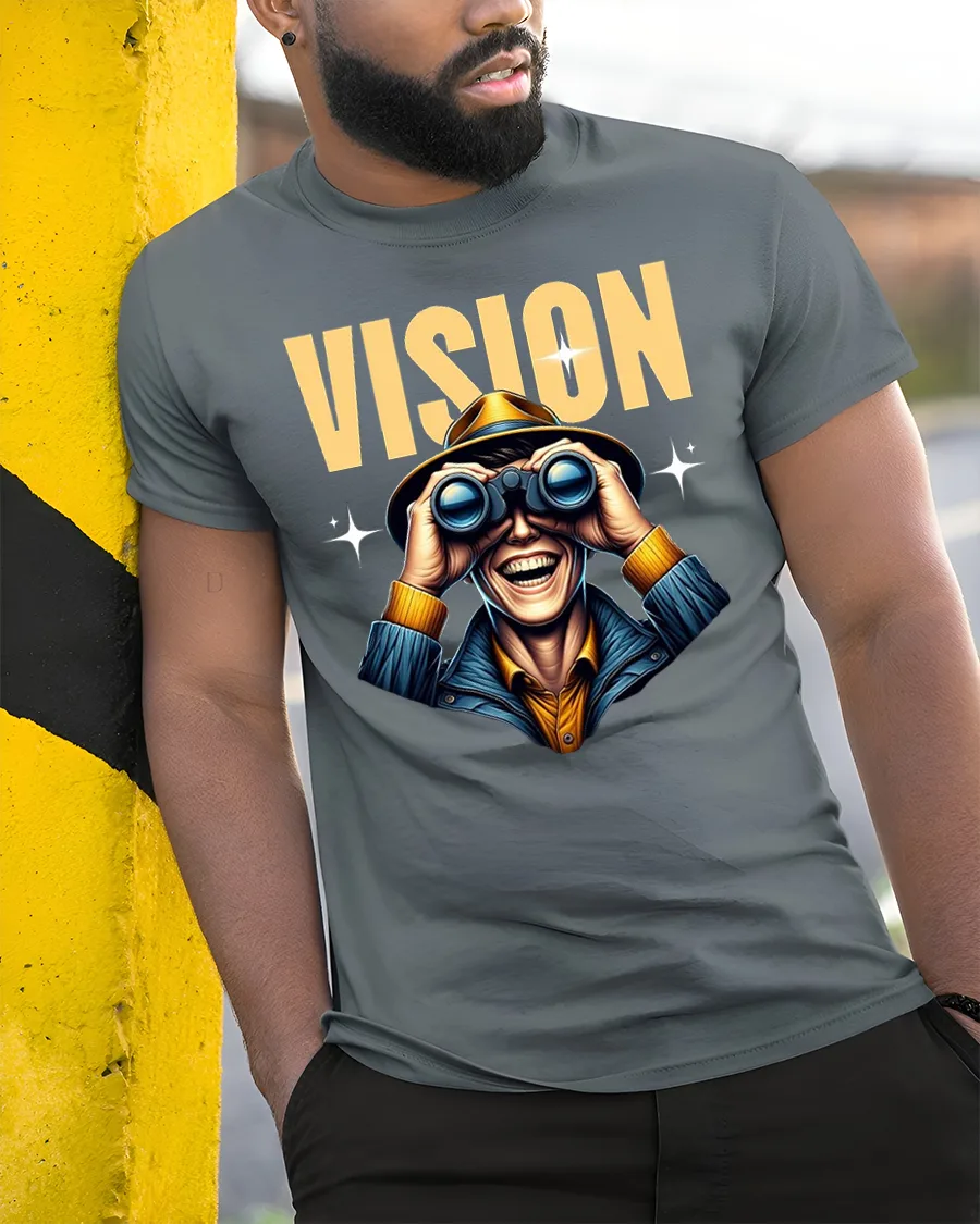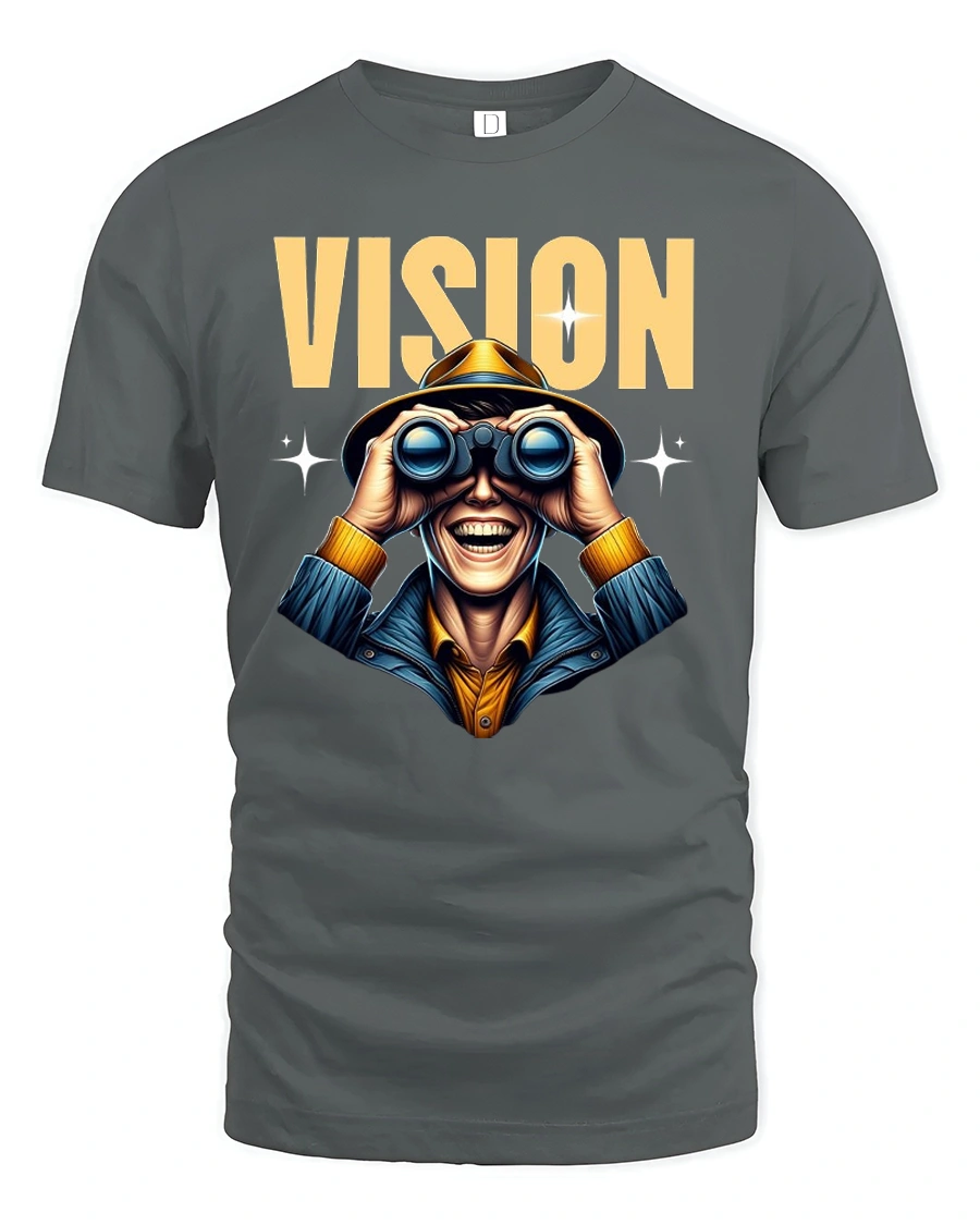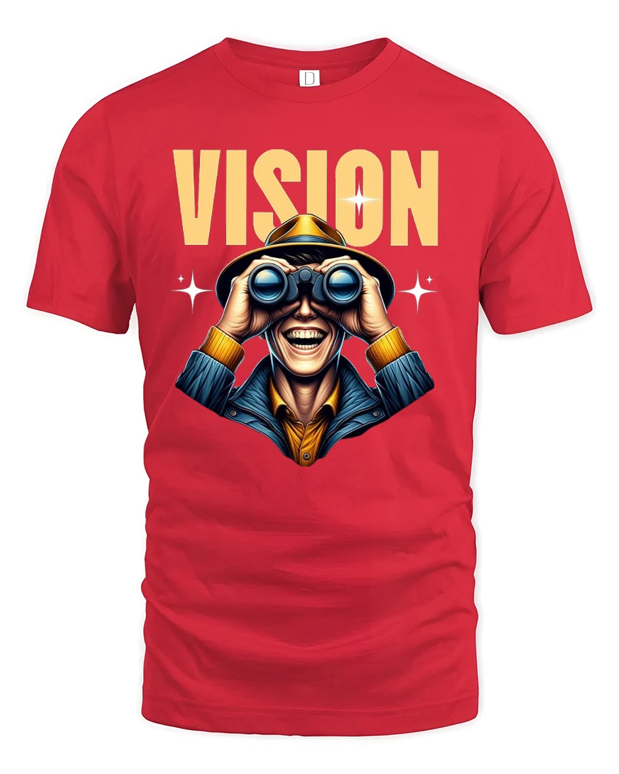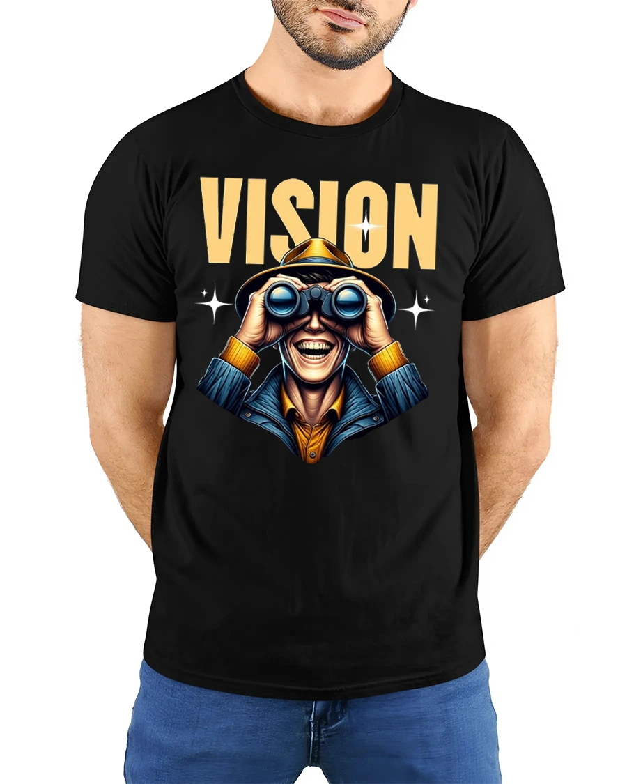 Vision Binoculars Funny Character Graphic T-Shirt is a bold and entertaining design for those who love humor and unique streetwear. Featuring a wide-grinning cartoon character holding binoculars under the big text “VISION,” this tee delivers a playful twist on exploration and curiosity. The colorful details and exaggerated features make it a standout piece that instantly grabs attention.