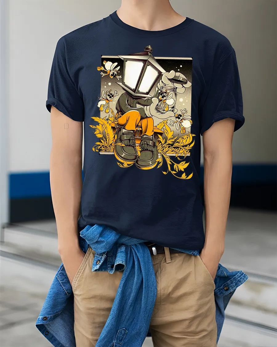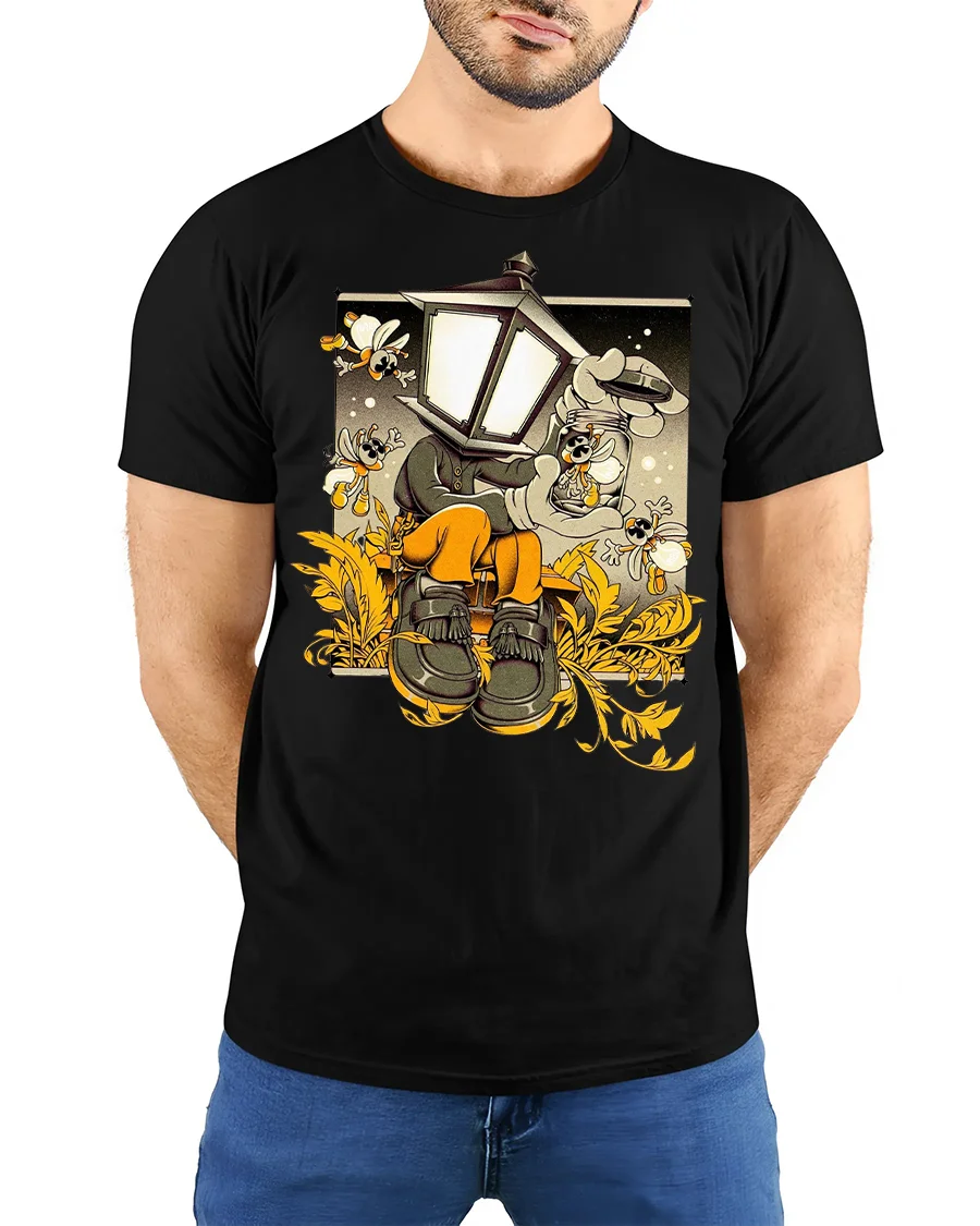 Be the first to review “Whimsical Street Lamp Man And Fireflies Vintage Cartoon Art Tshirt”