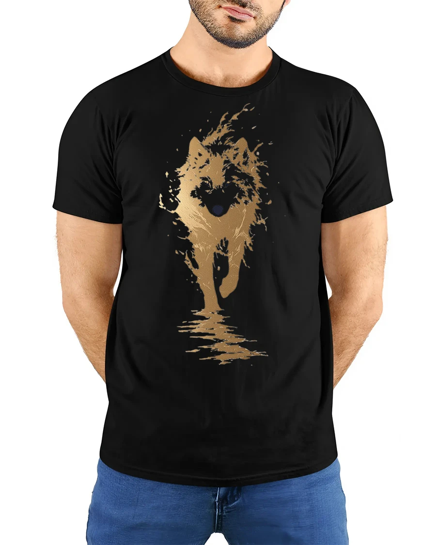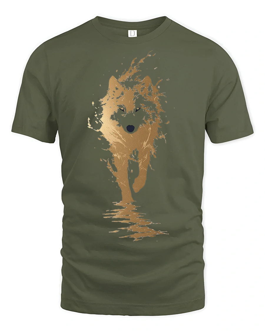 Wild Splash Running Wolf T Shirt Bold Nature Spirit Graphic Tee captures the raw power and beauty of a lone wolf charging through the wild.